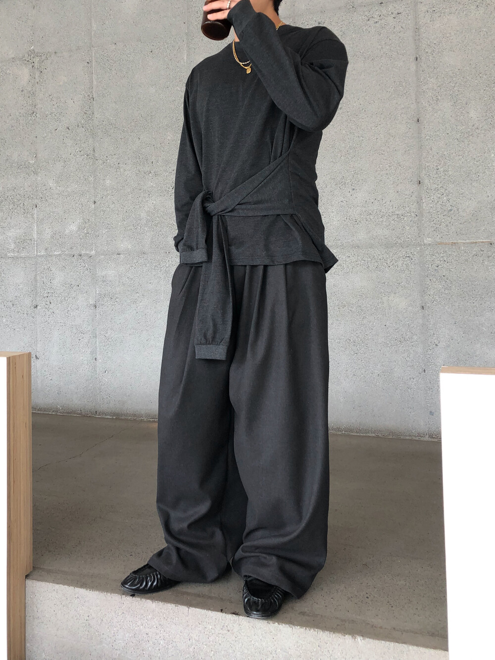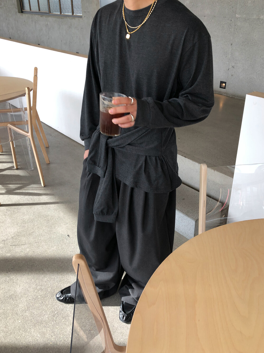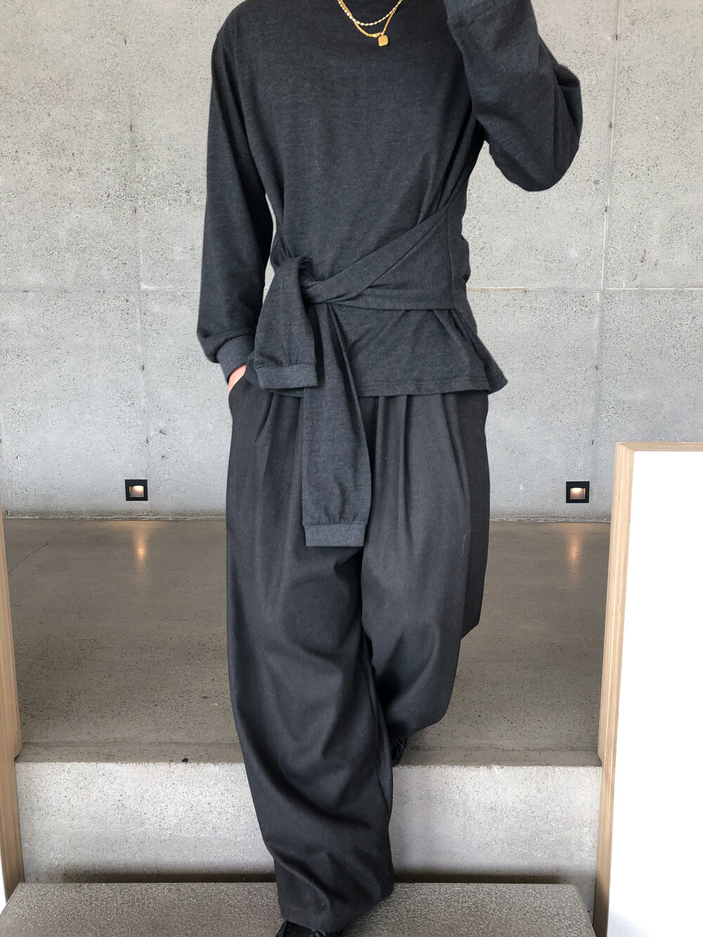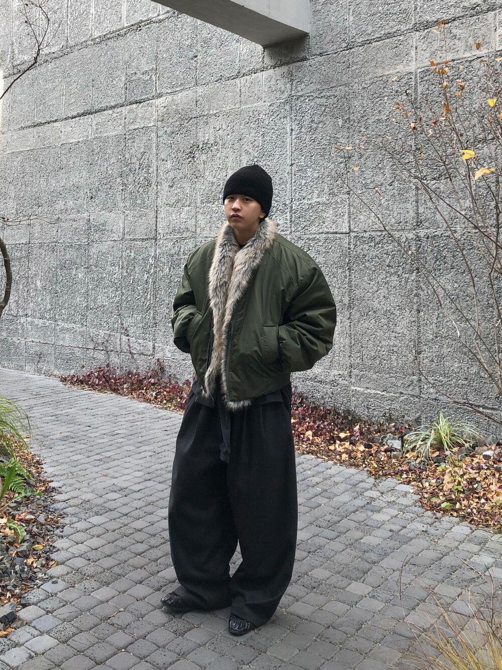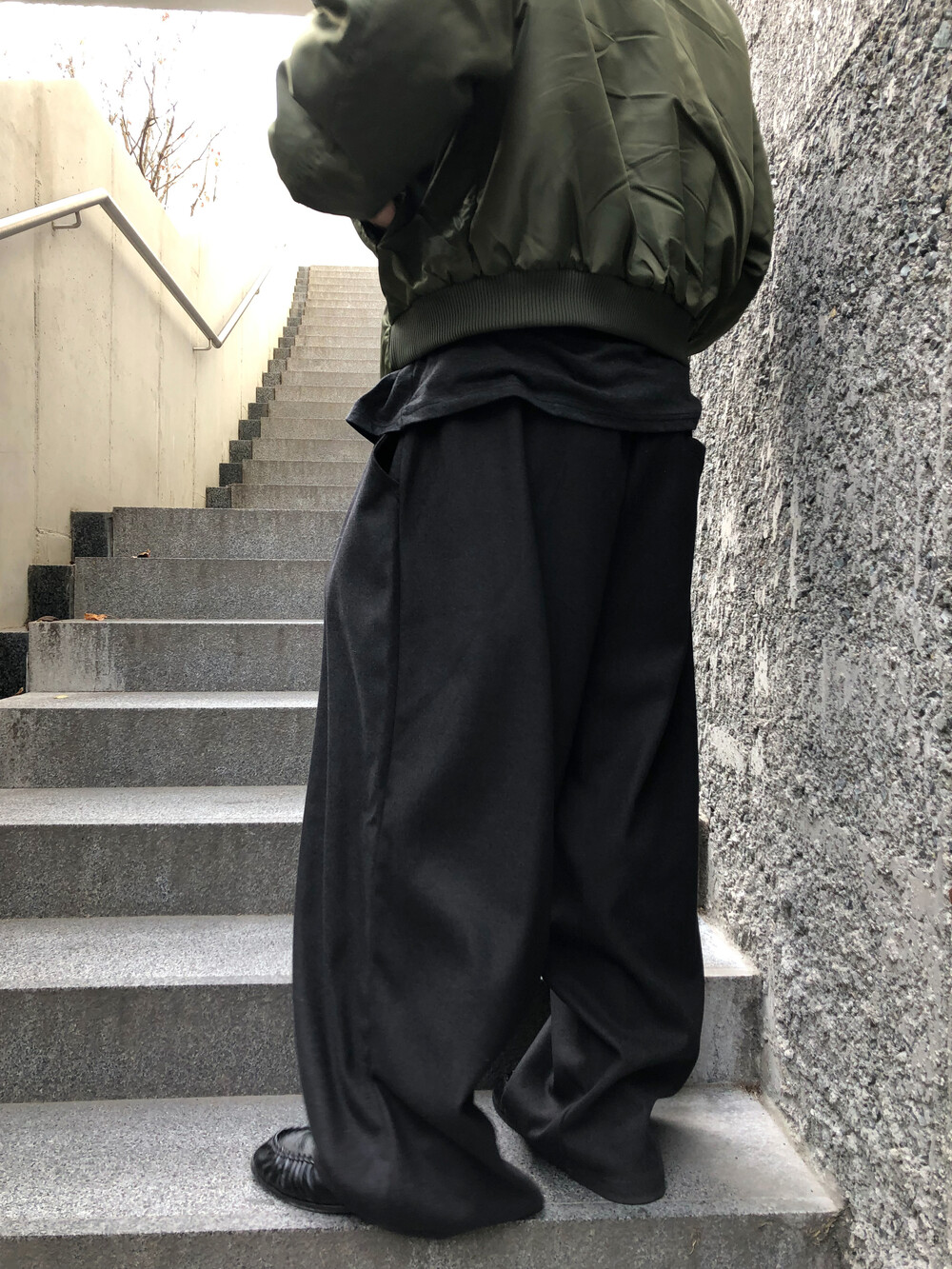 전면 투턱 디테일로 자연스러운 볼륨감과 여유로운 실루엣을 연출해주는 기모 밴딩 와이드 슬랙스입니다.