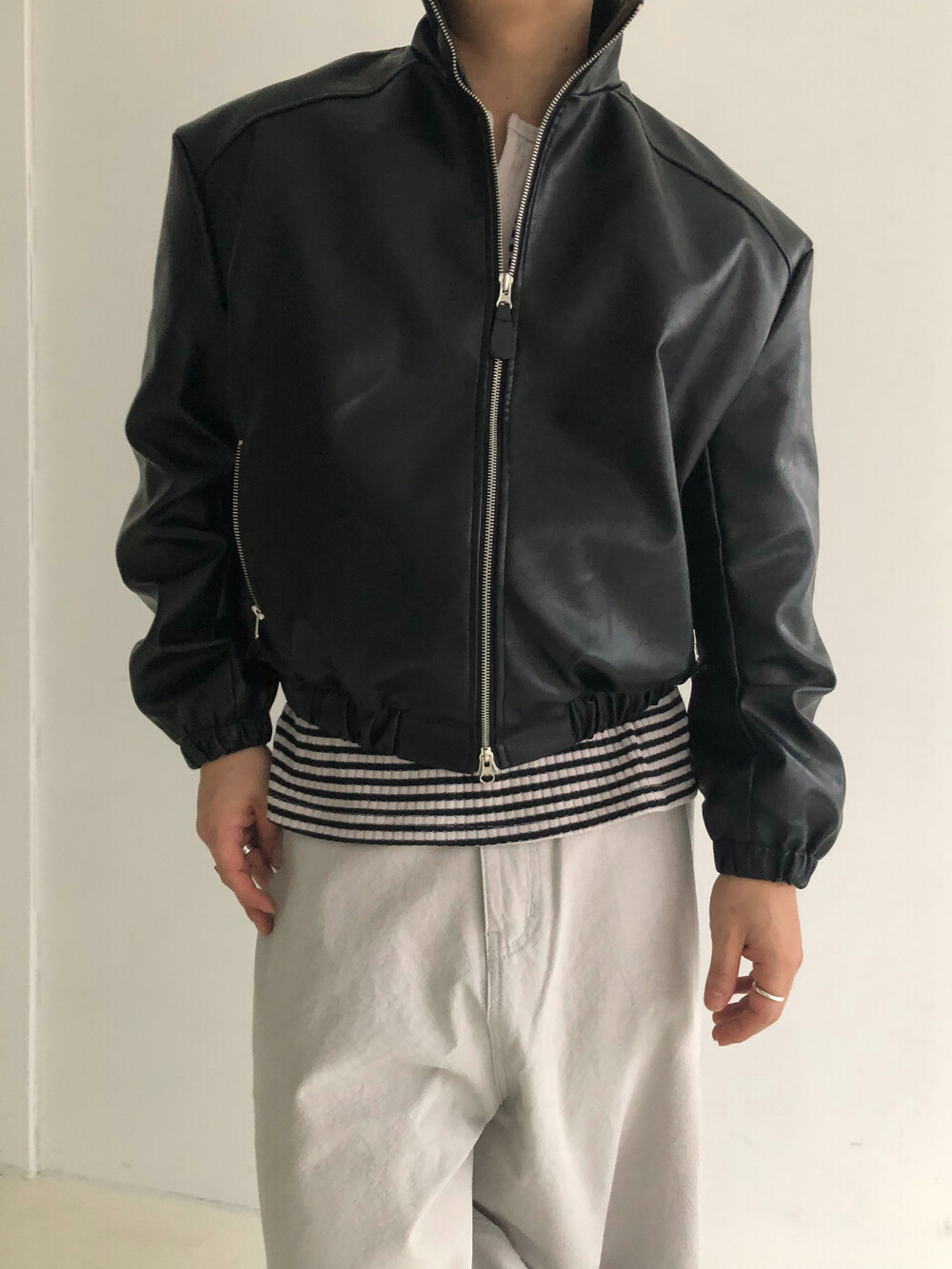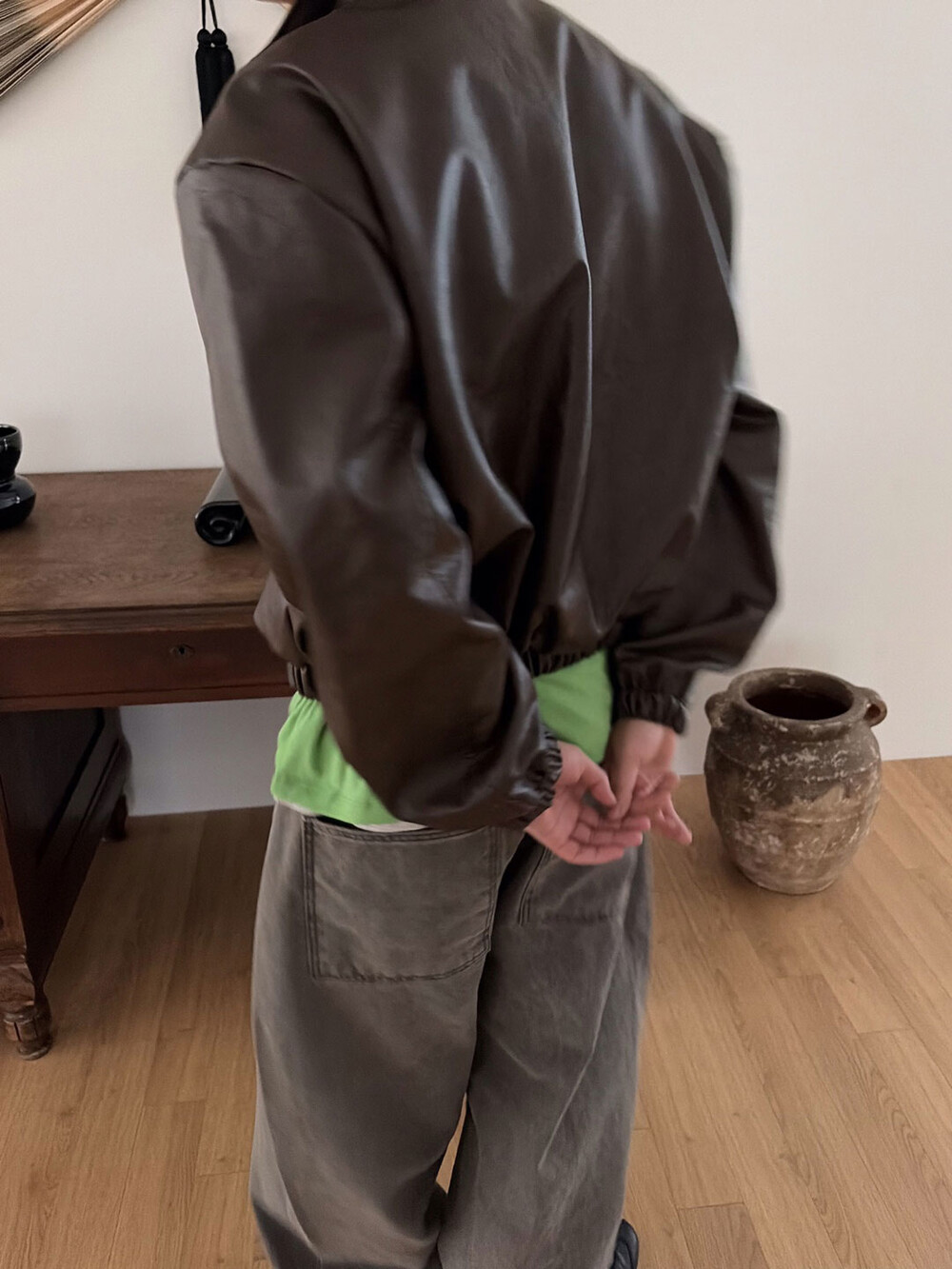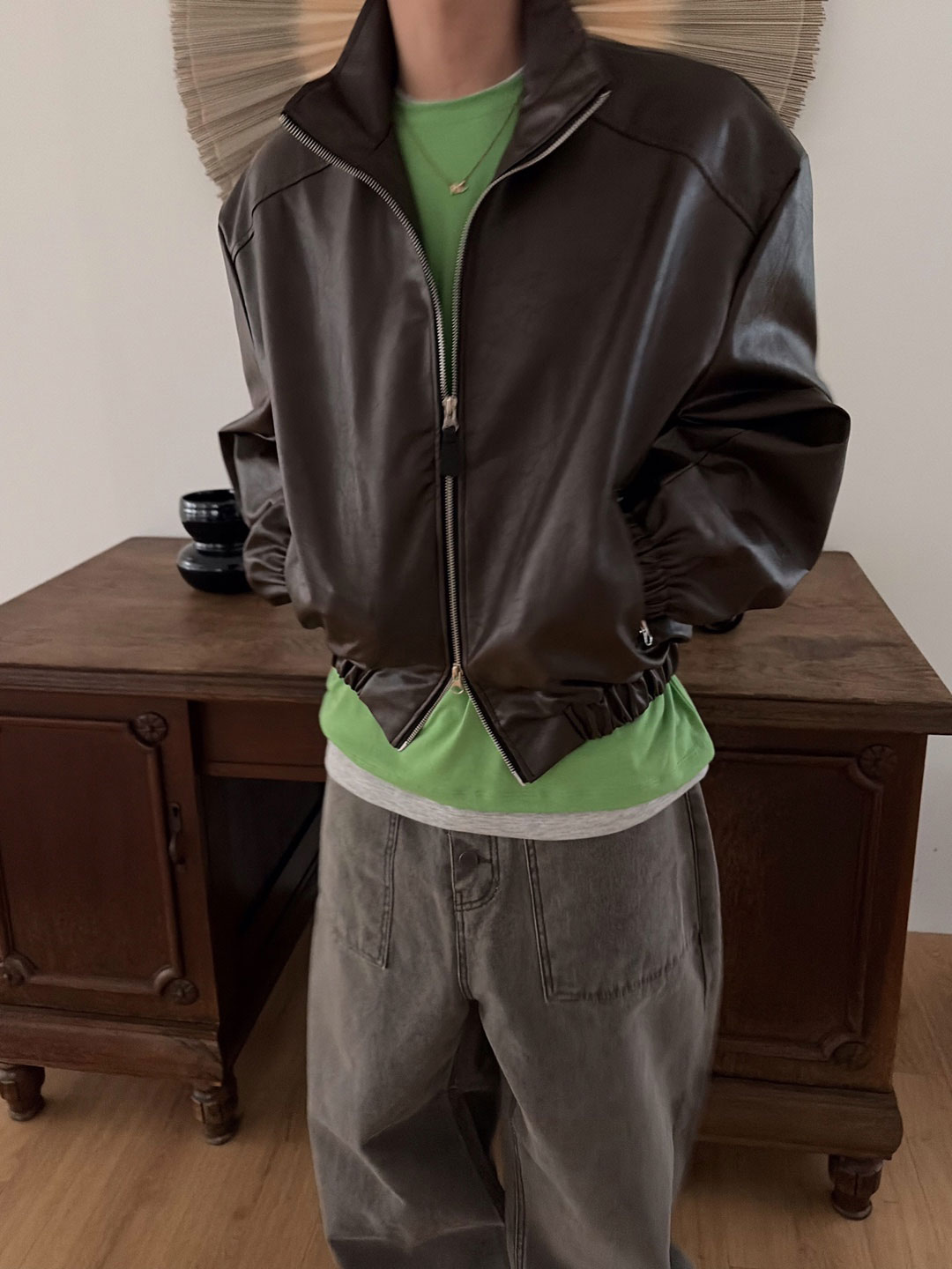 Earth crack leather crop jacket