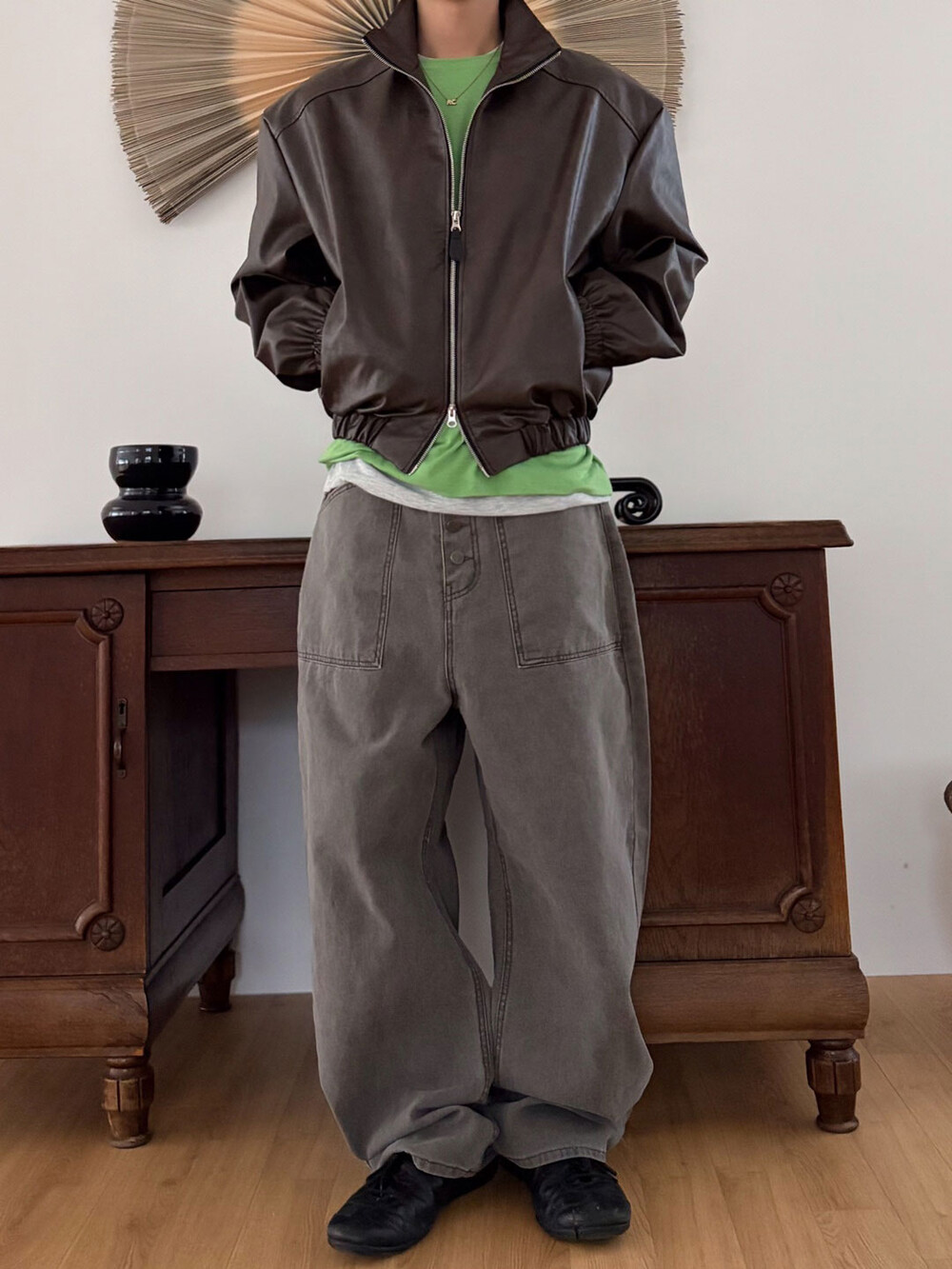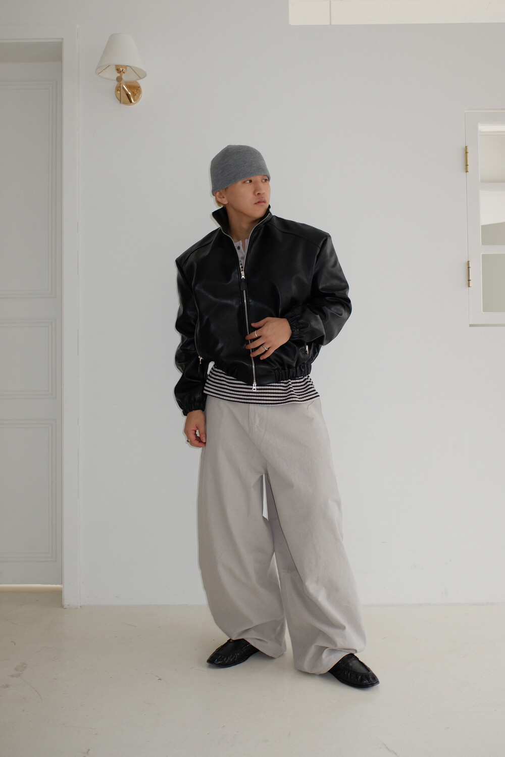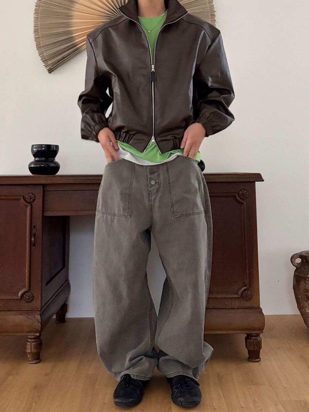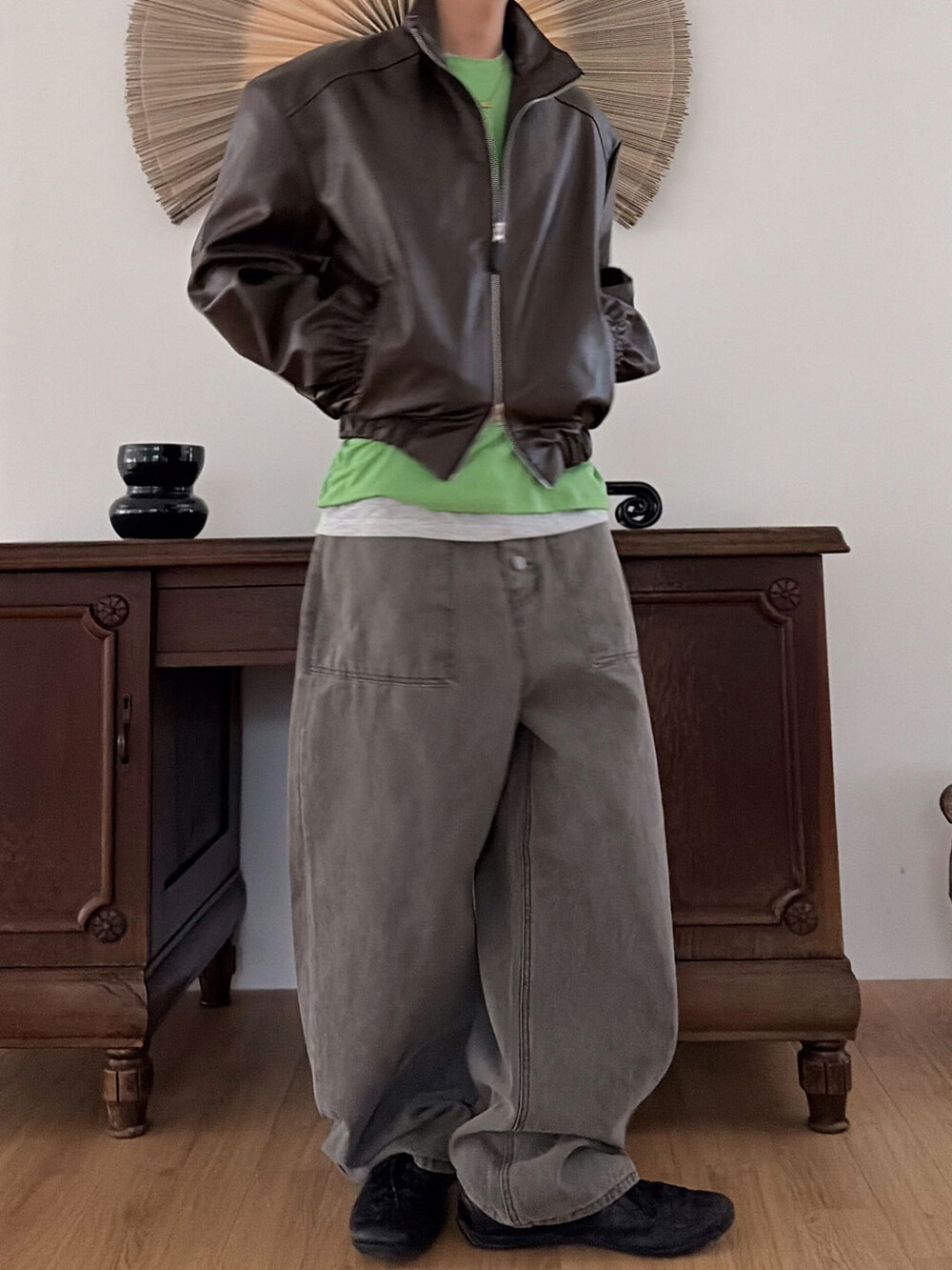 Earth crack leather crop jacket