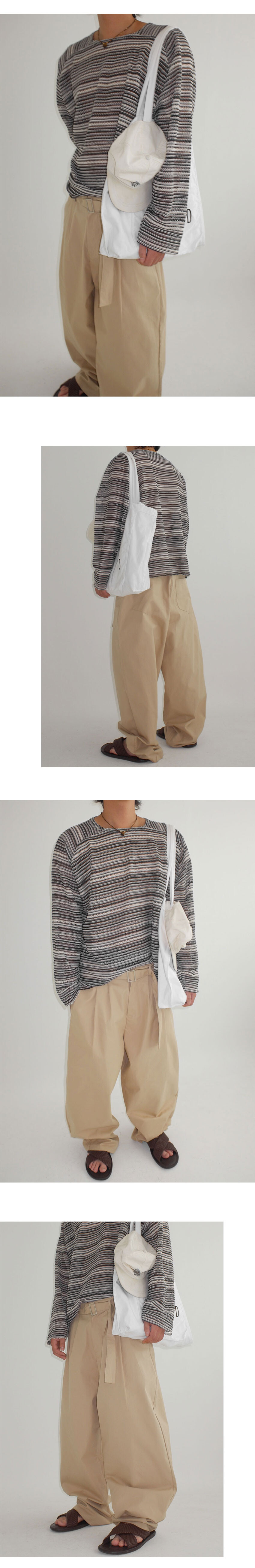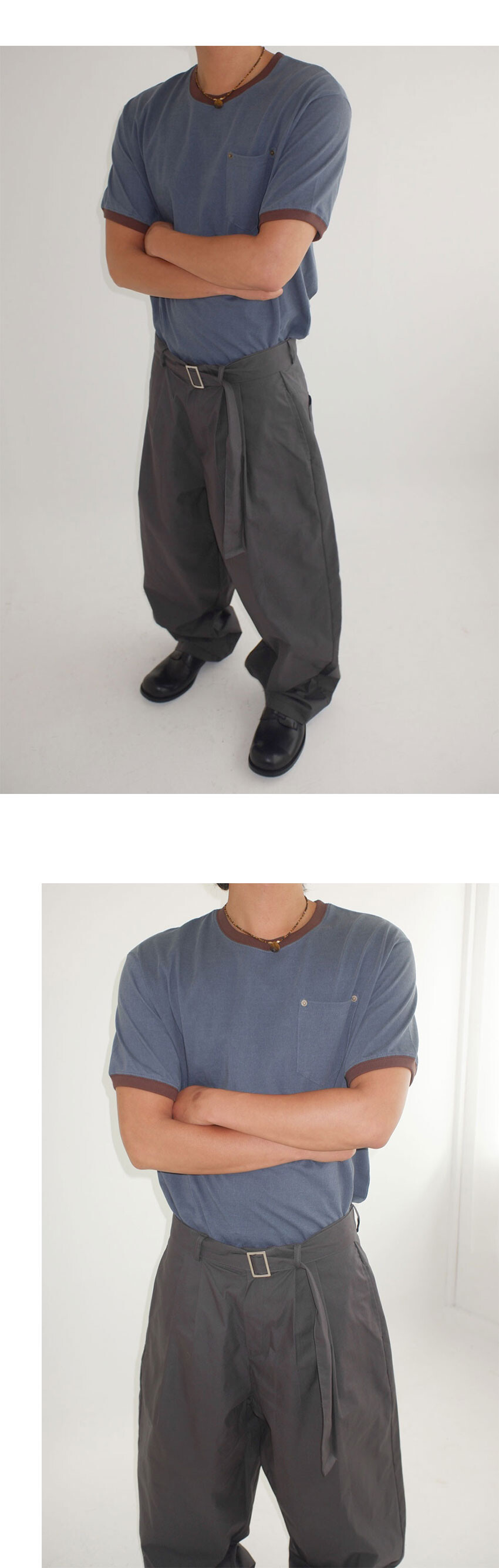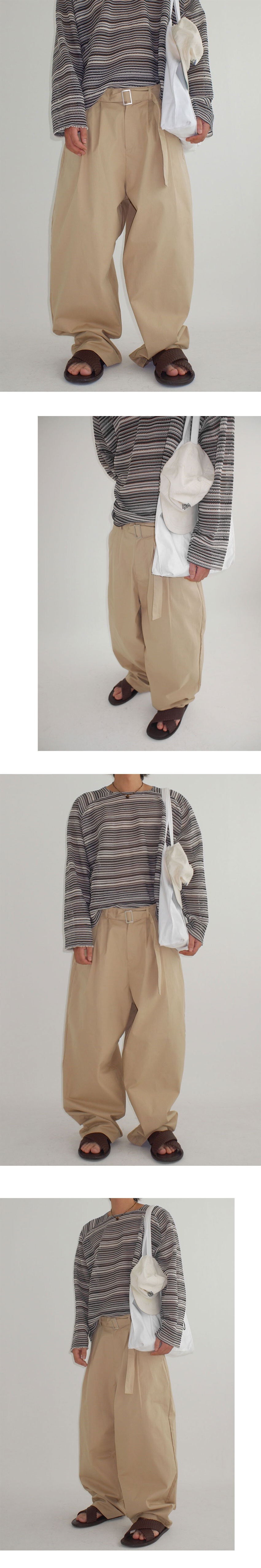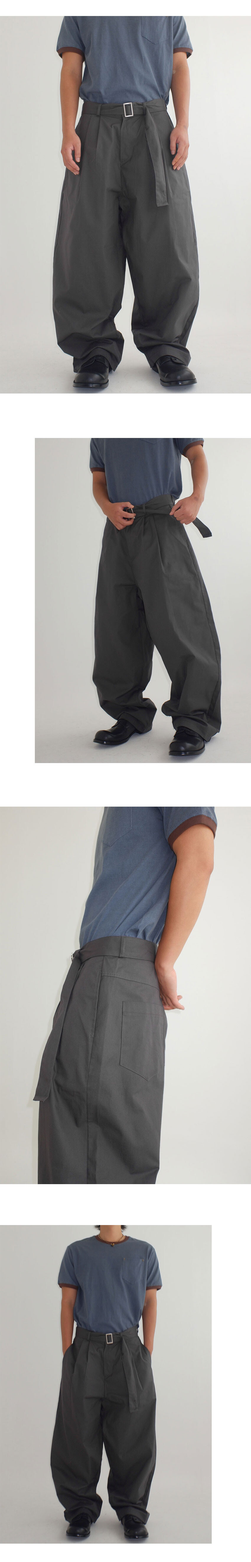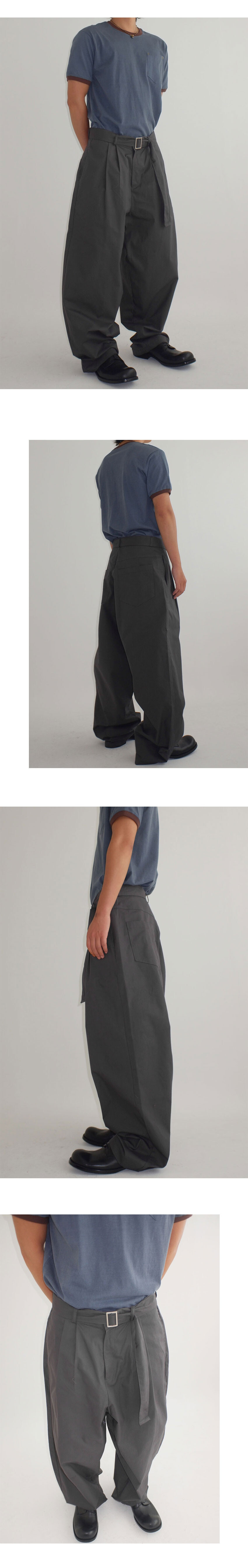 belted two tuck cotton wide pants