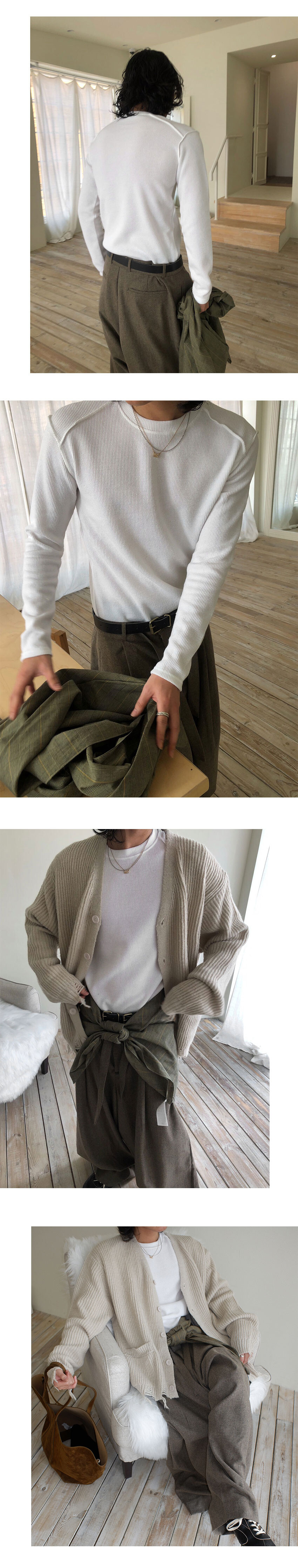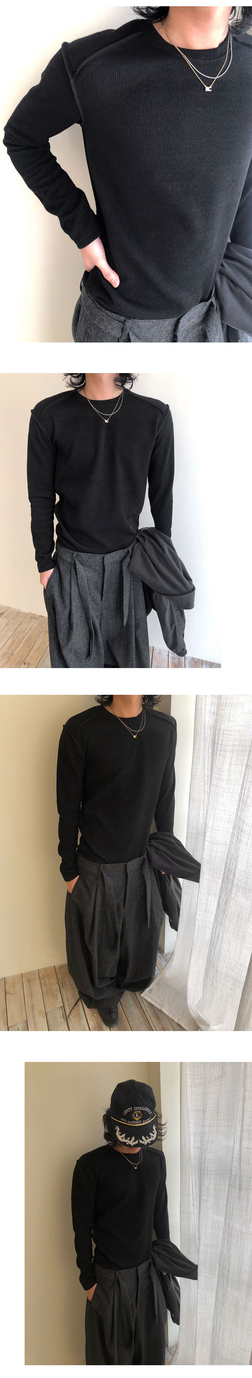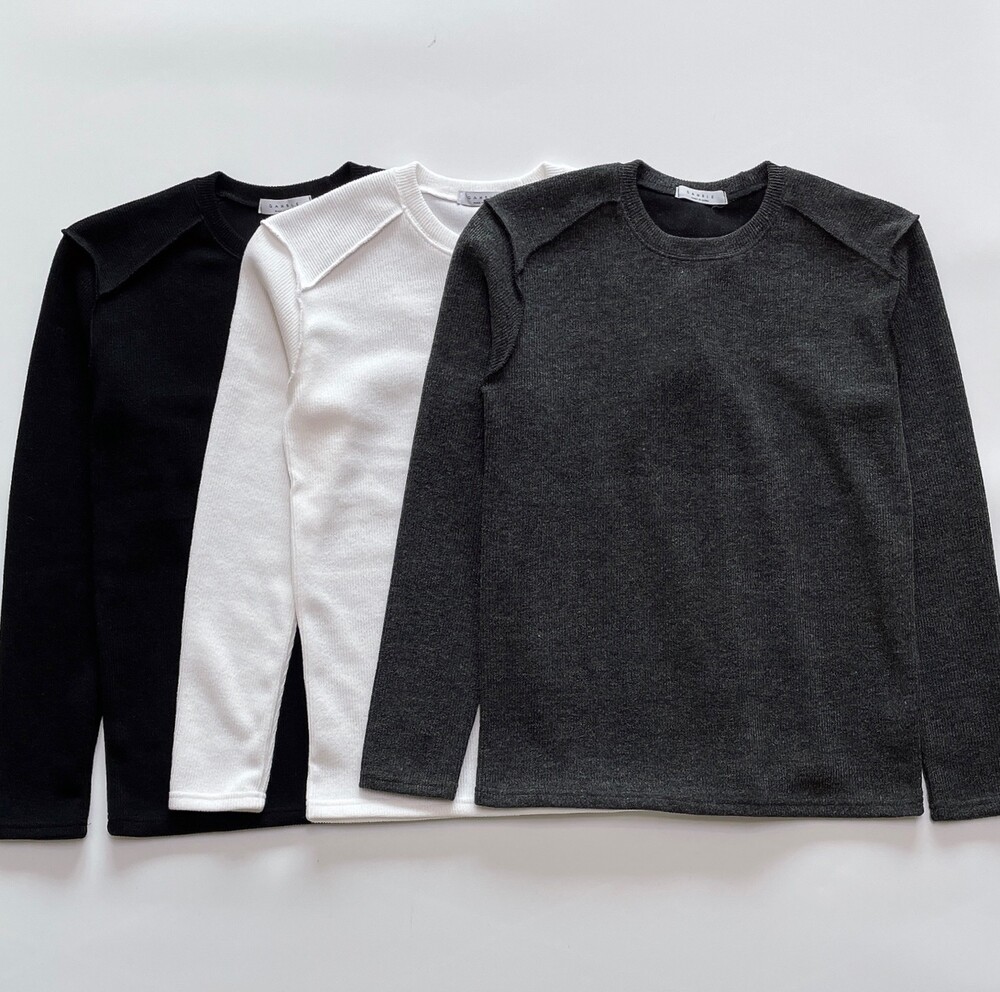 신축성 좋은 골지 짜임의 니트 긴팔티