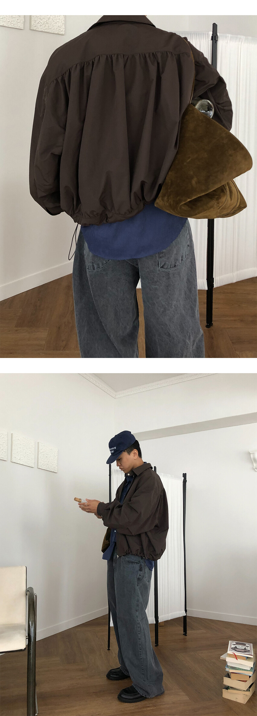 나일론 특유의 질감과 벌룬핏이 만나 독창적인 무드 완성