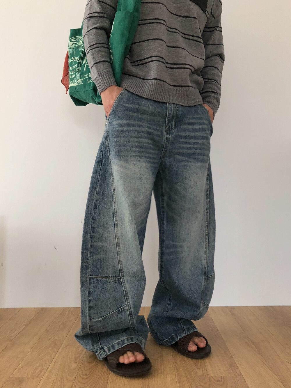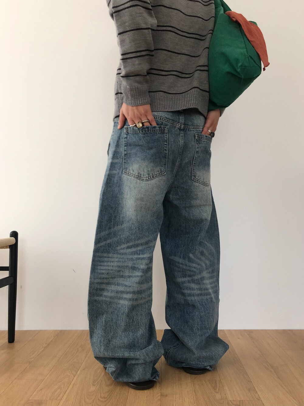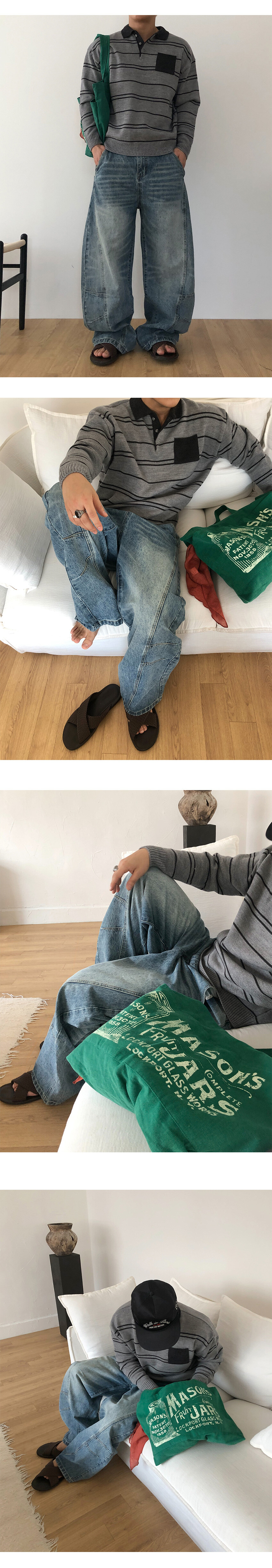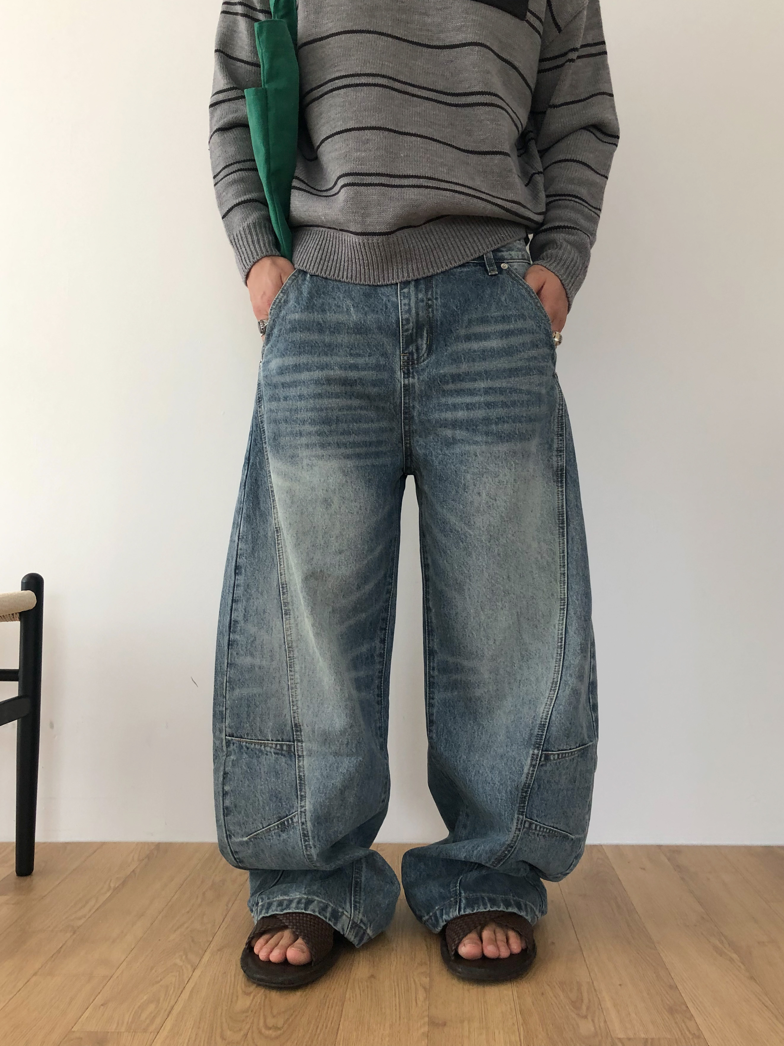 Arch curve denim pants