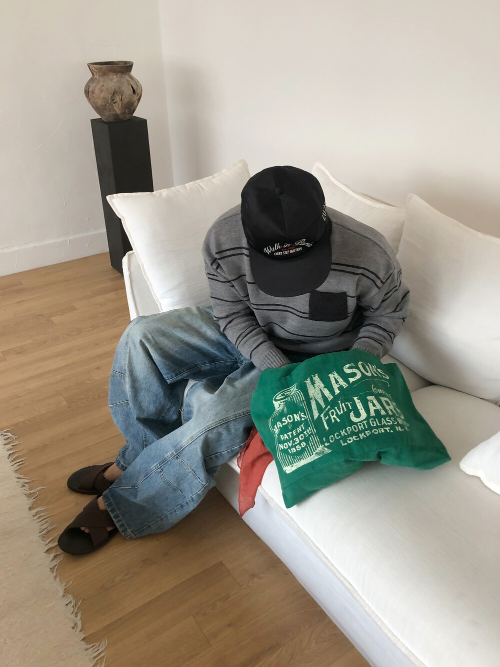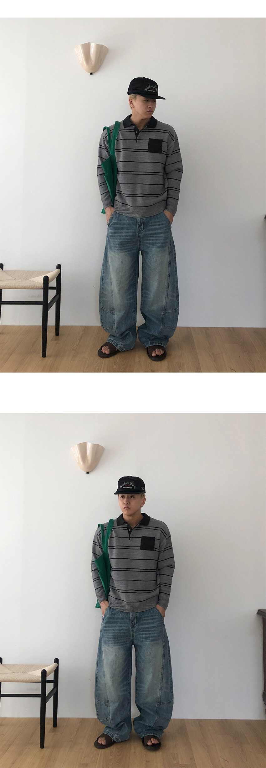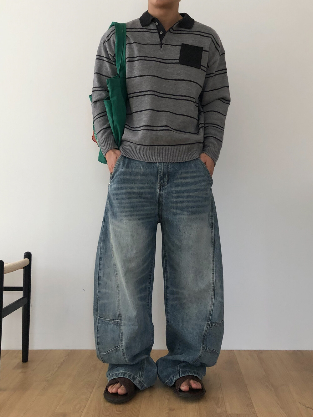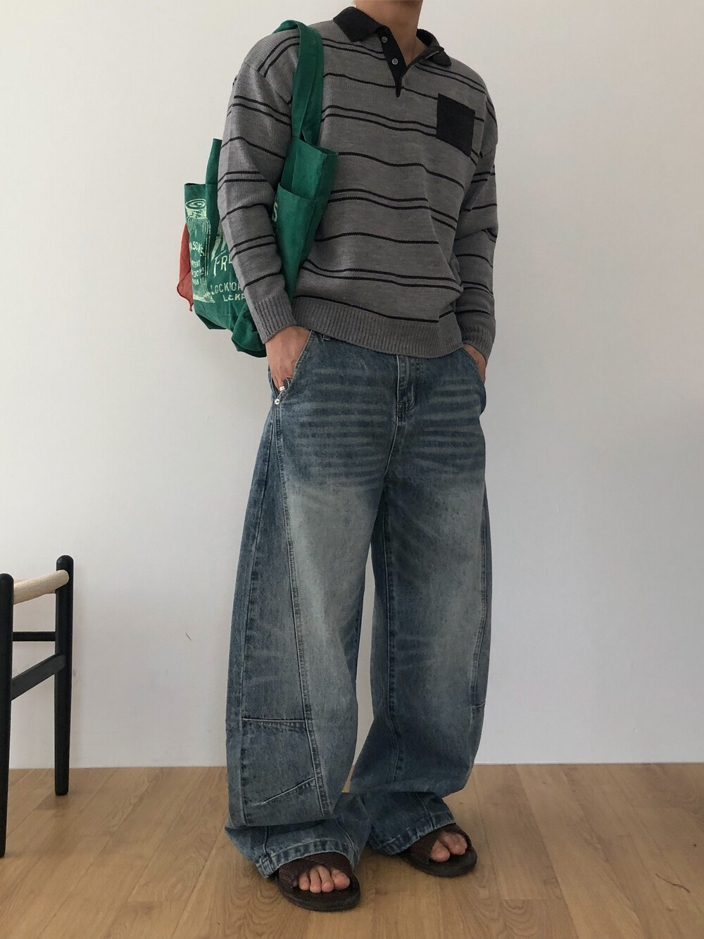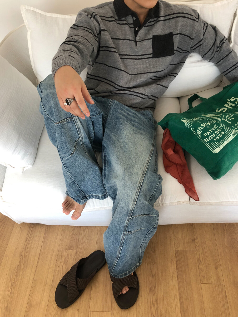 Arch curve denim pants