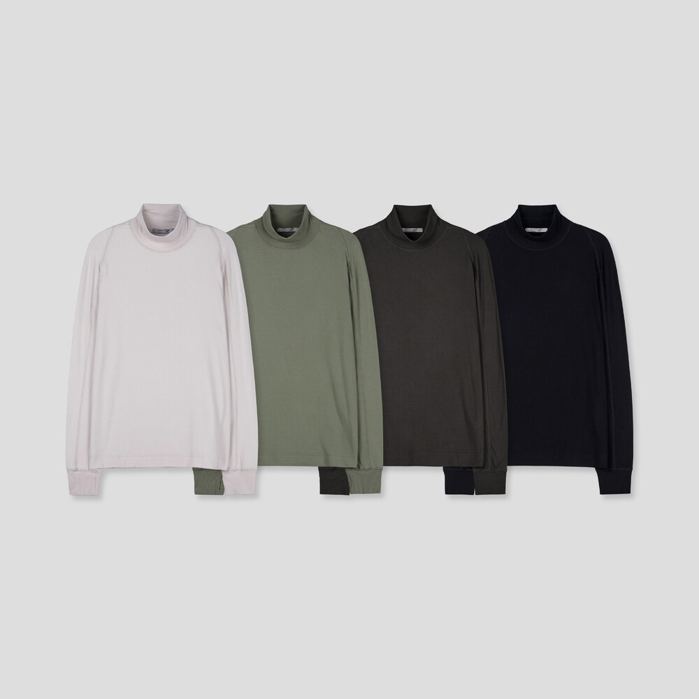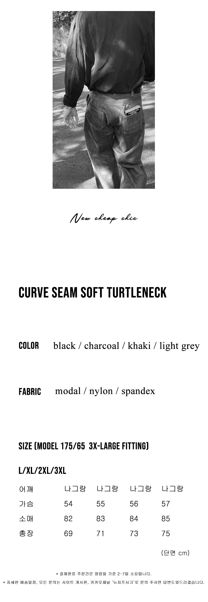 부드러운 터치감과 유연한 실루엣이 돋보이는 Curve Seam Soft Turtleneck입니다.