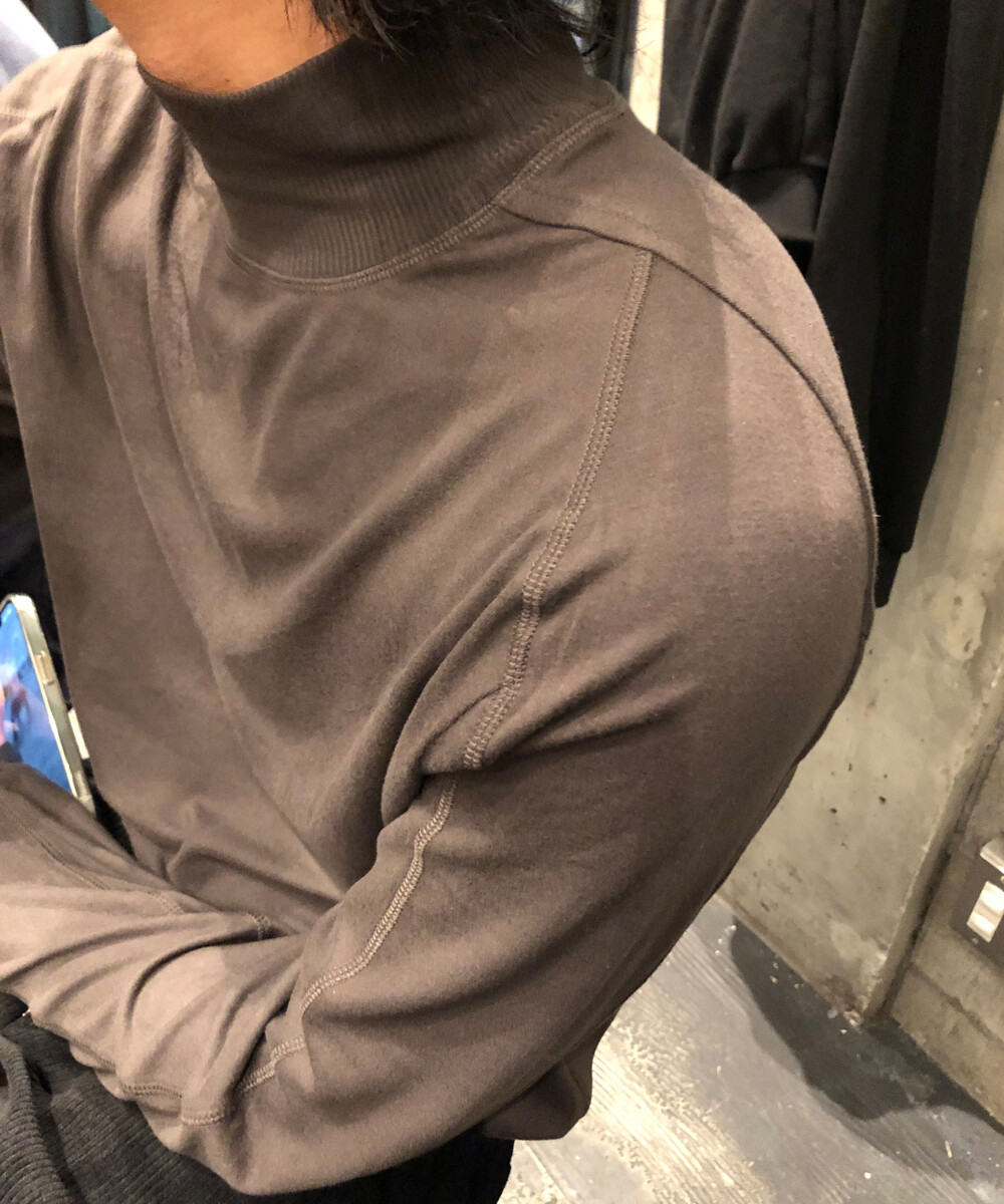 어깨부터 팔라인까지 이어지는 곡선 절개(Curve Seam) 스티치 디테일은 기본 터틀넥과는 다른 유니크한 포인트를 더하며,