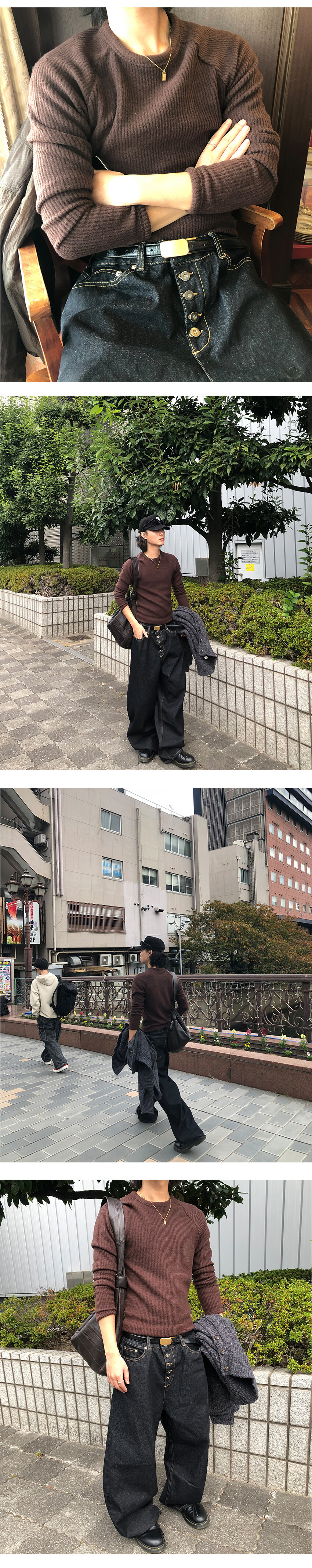촘촘한 골지 조직으로 바디 라인을 자연스럽게 따라주며, 슬림하게 떨어져 깔끔한 실루엣을 완성합니다.