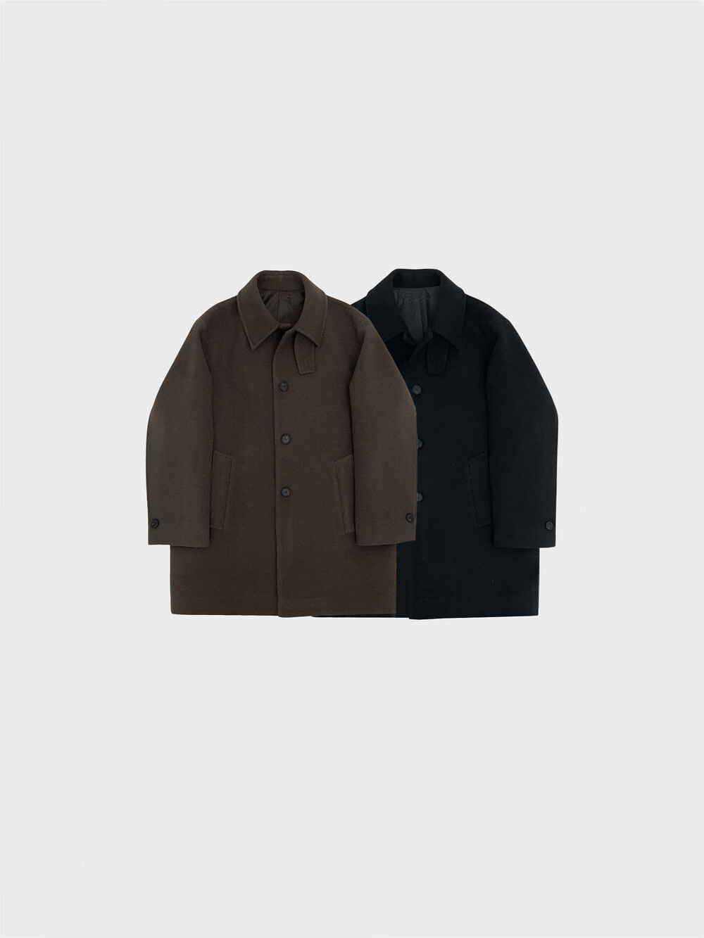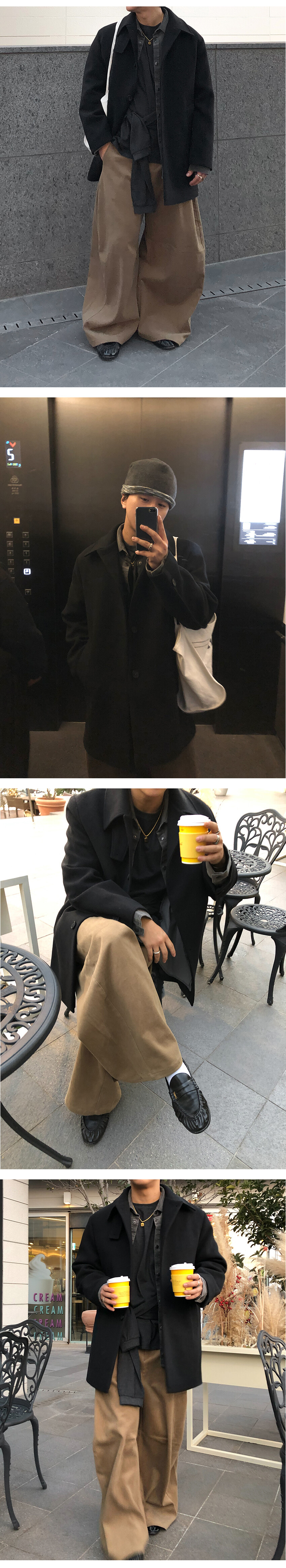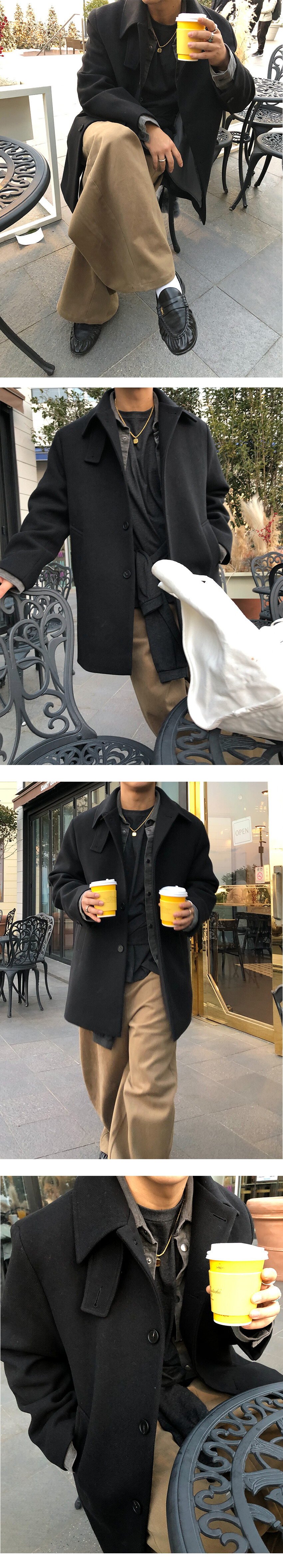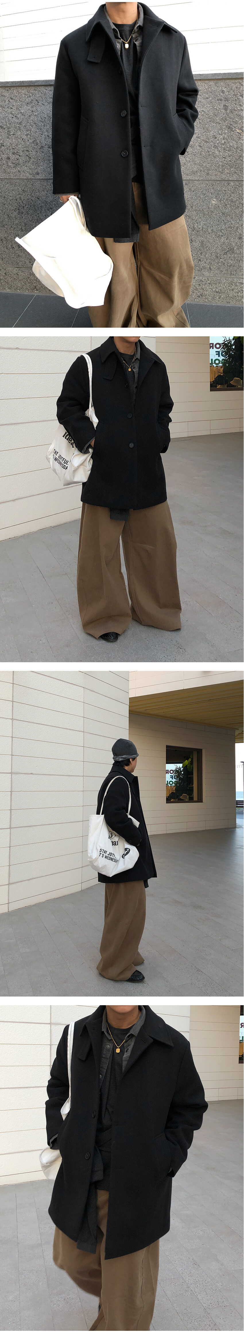 하프한 기장감으로 제작된 코트로, 전체적인 균형이 깔끔하게 떨어지는 실루엣이 특징입니다.