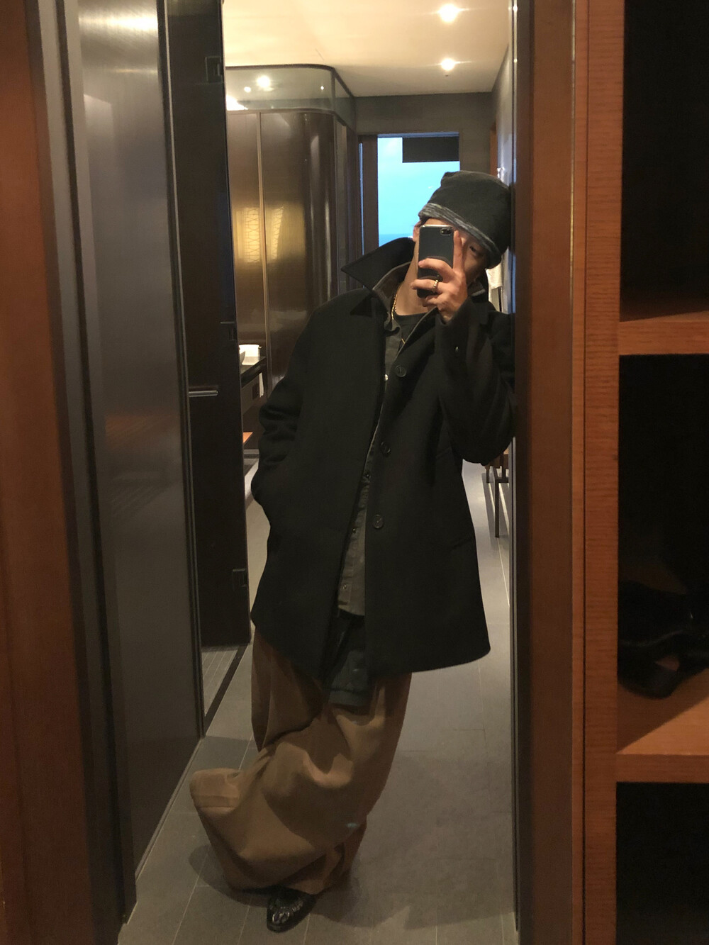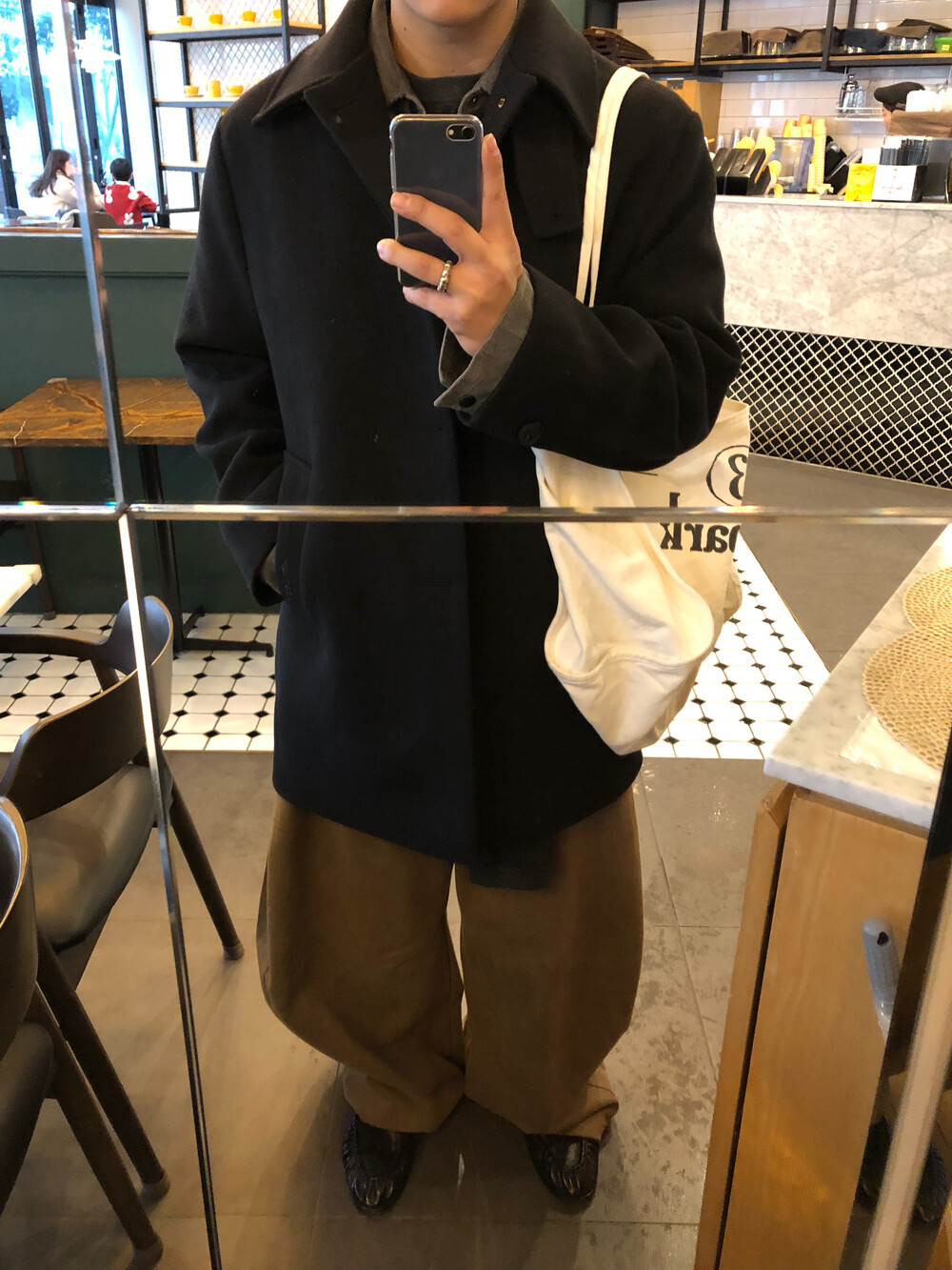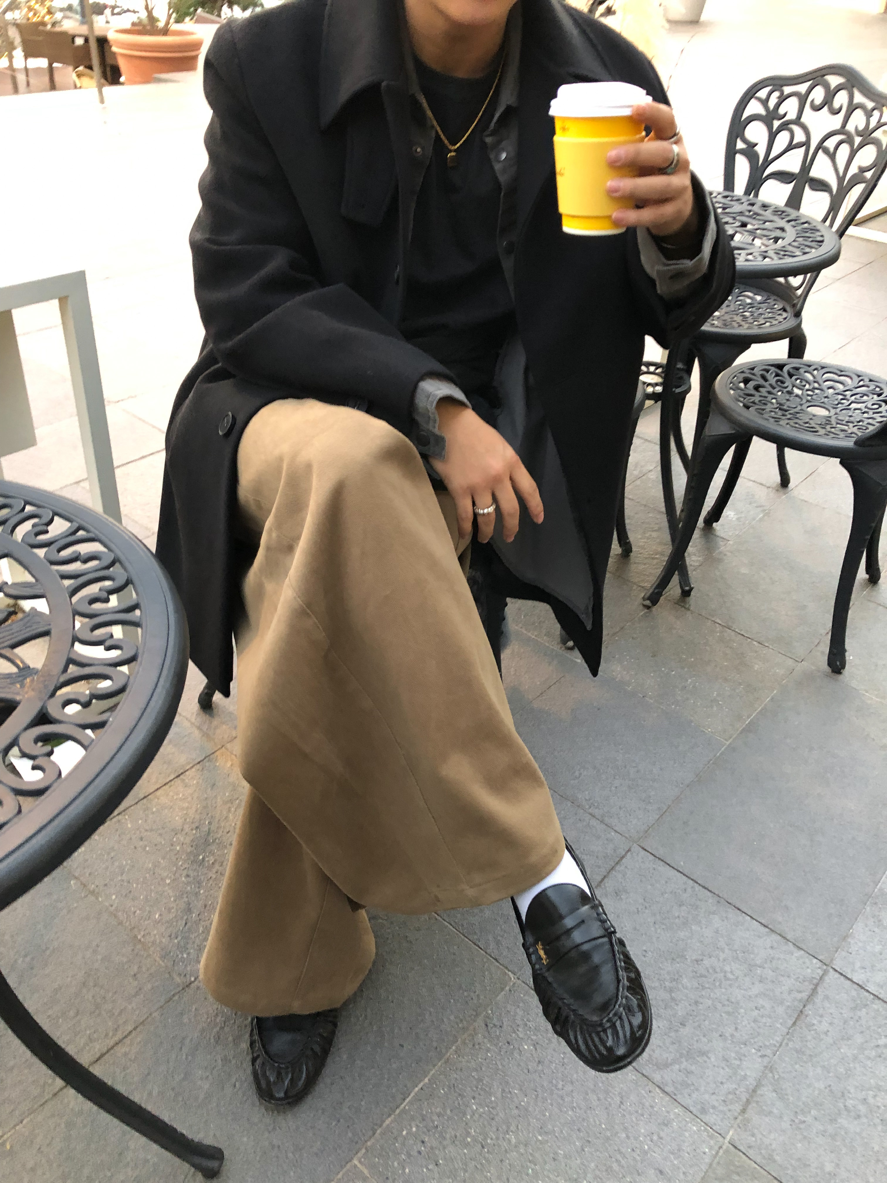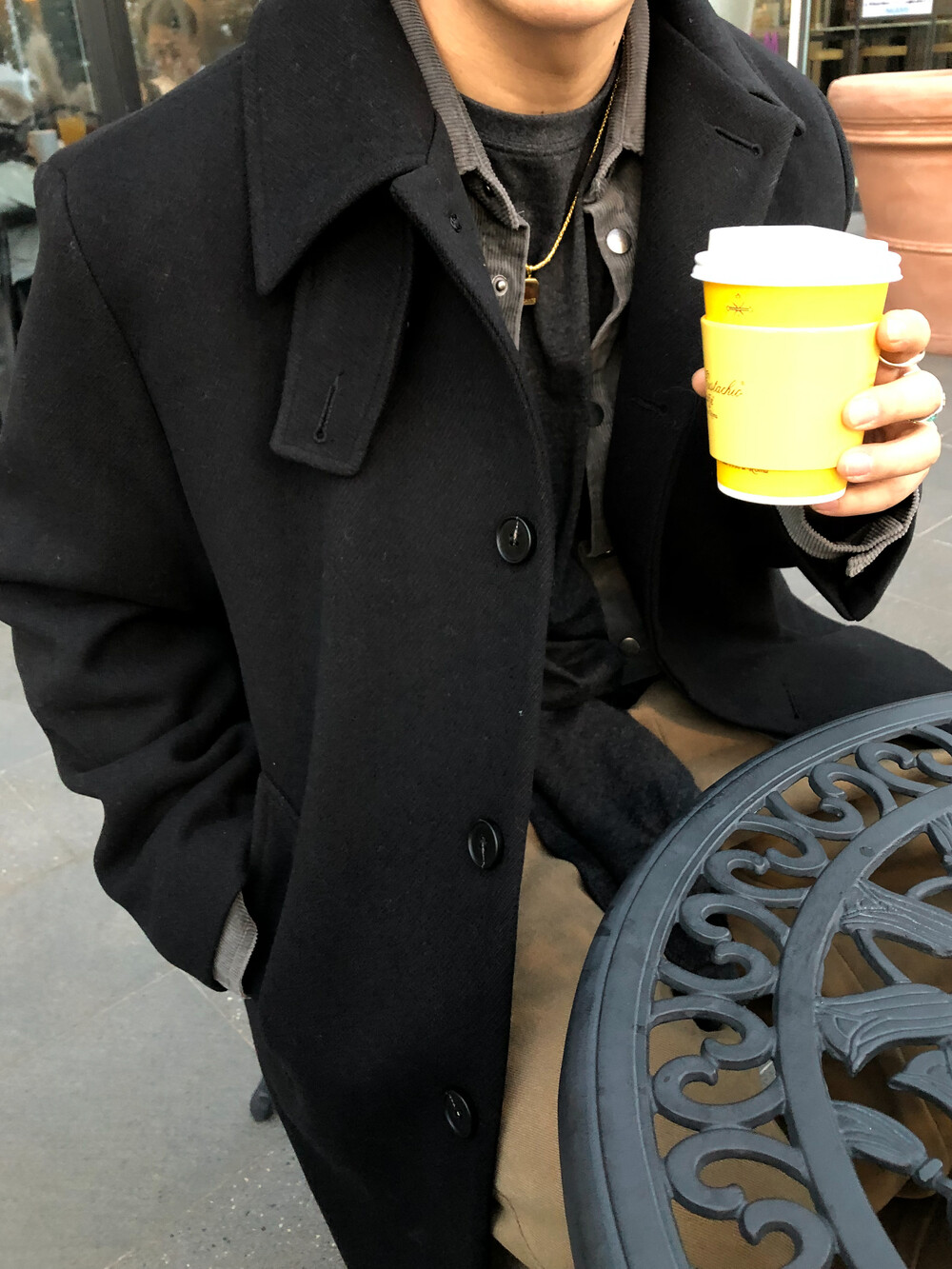 하프한 기장감으로 제작된 코트로, 전체적인 균형이 깔끔하게 떨어지는 실루엣이 특징입니다.