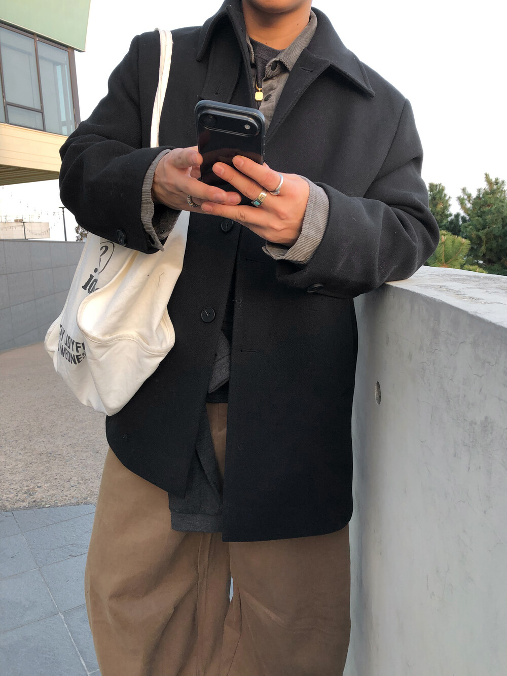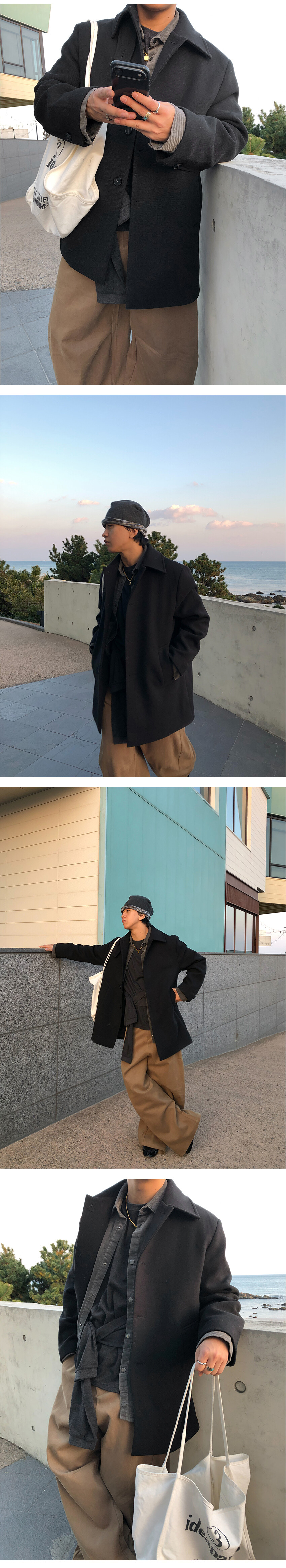 탄탄한 두께감의 모직 원단으로 제작되어 겨울 시즌 아우터로 활용하기에 적합합니다.