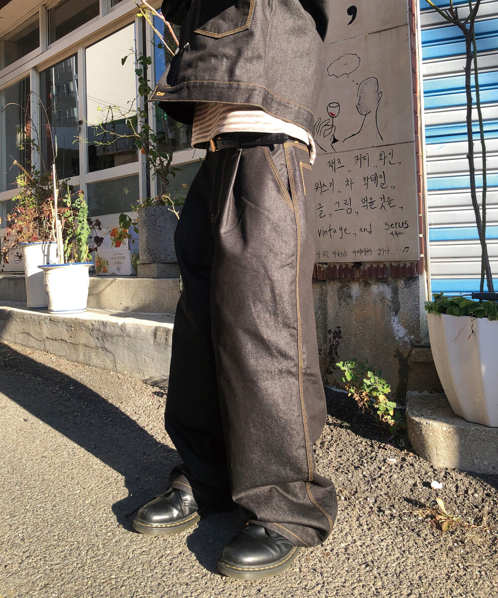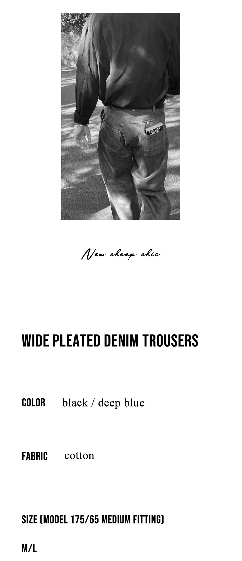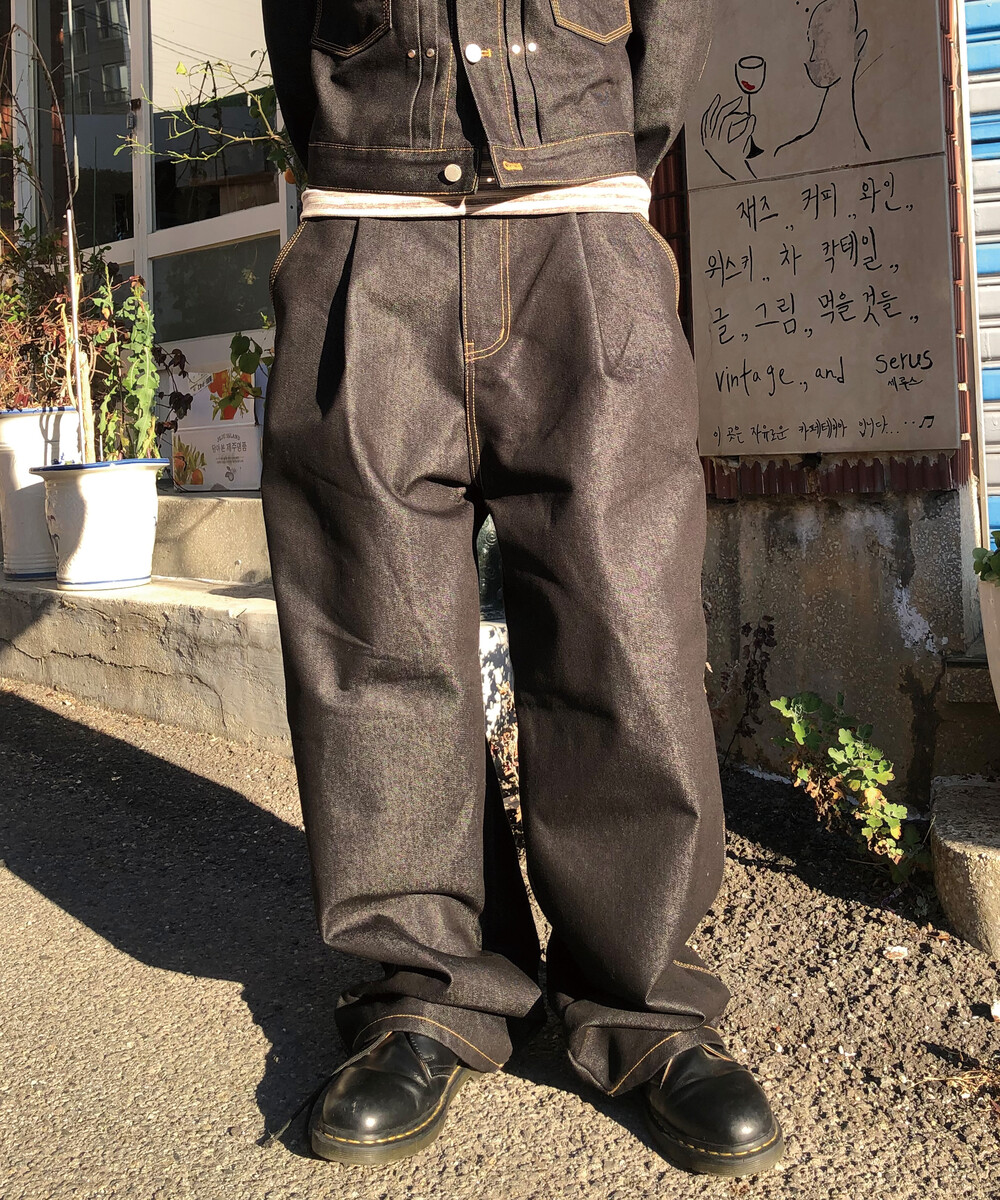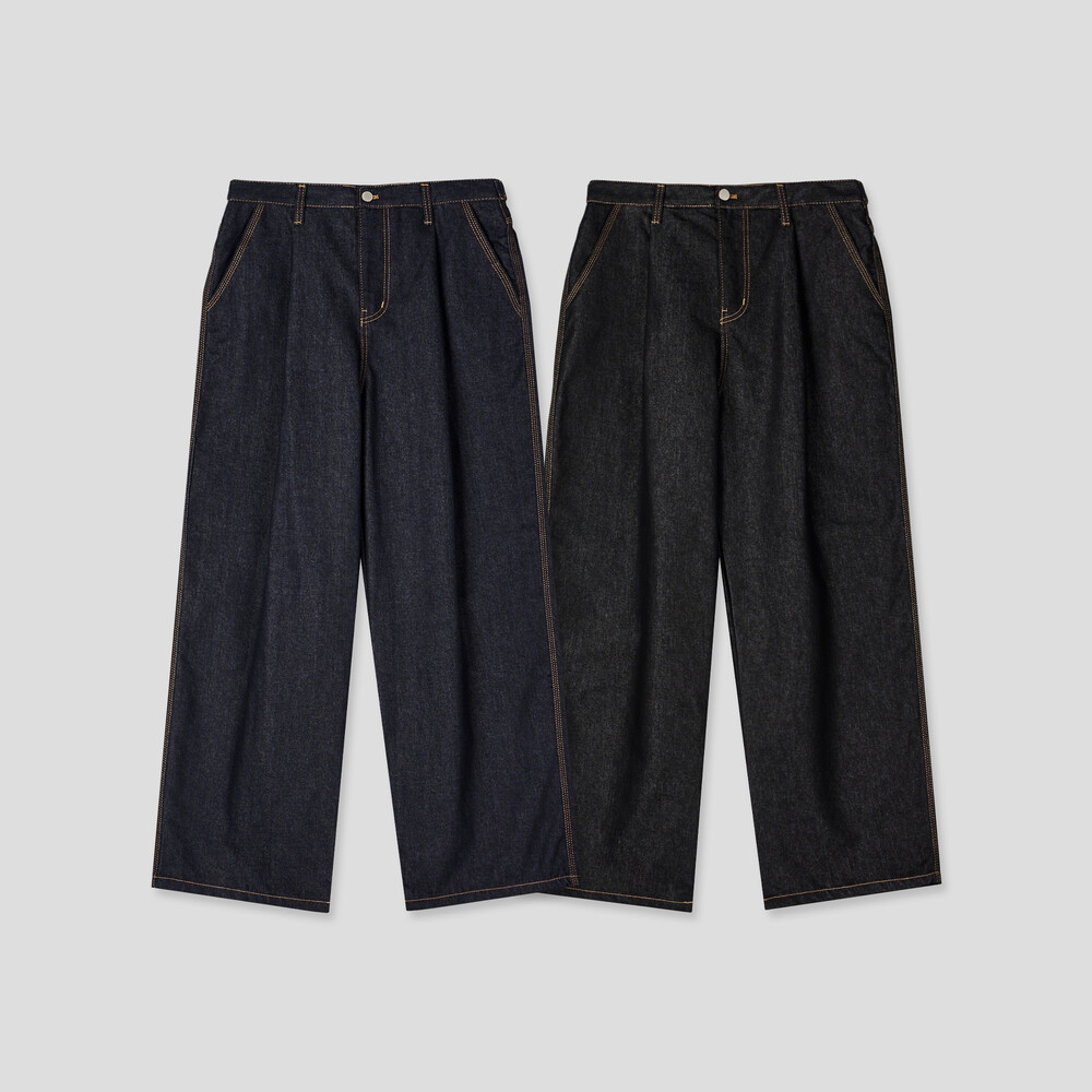 여유로운 실루엣과 절제된 구조미가 돋보이는 와이드 플리츠 데님 트라우저입니다.