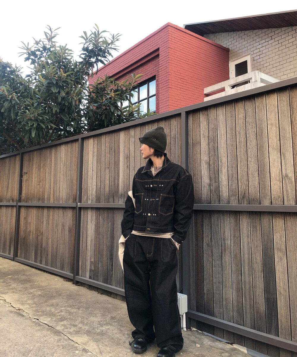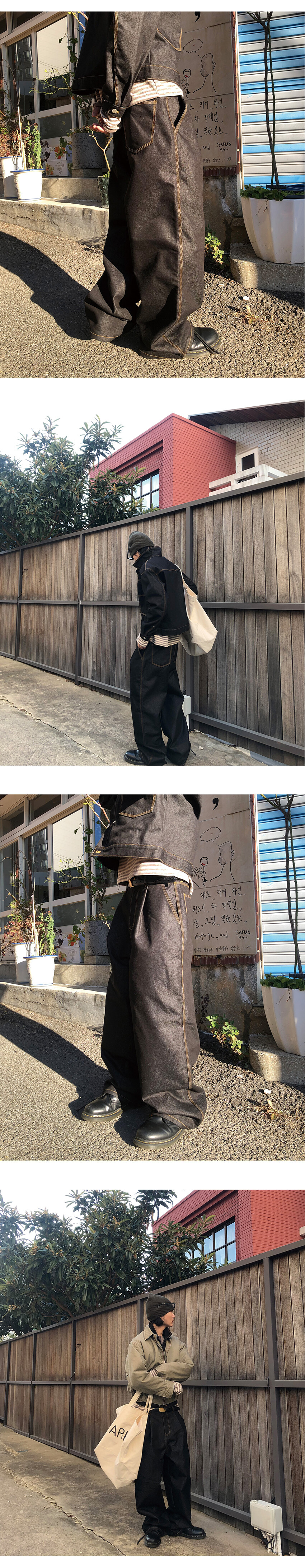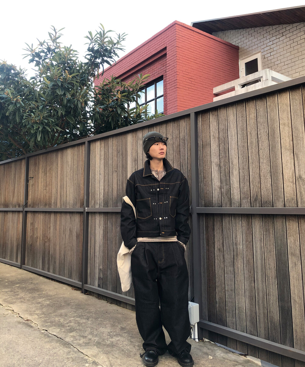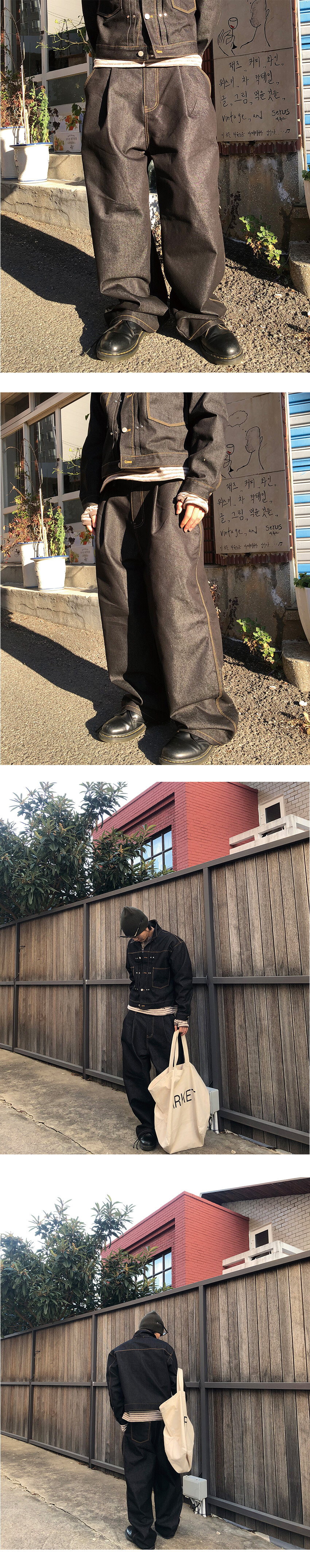프론트 버튼 클로징과 스티치 라인이 디테일로 전체적으로 미니멀하지만 존재감 있는 데님 팬츠로 완성했습니다.