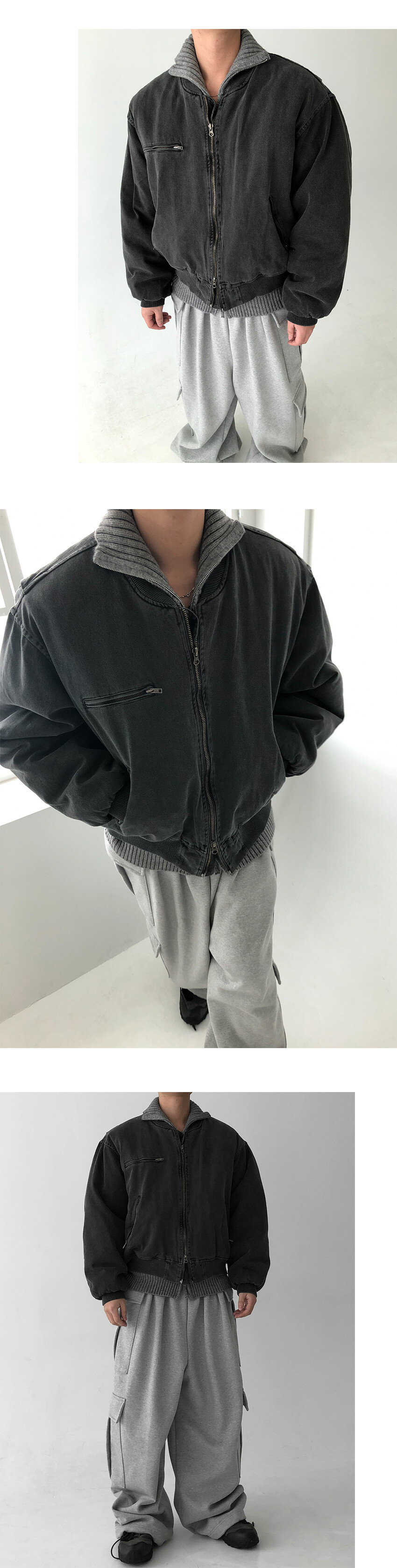 피그먼트 워싱 면소재의 봄버 자켓