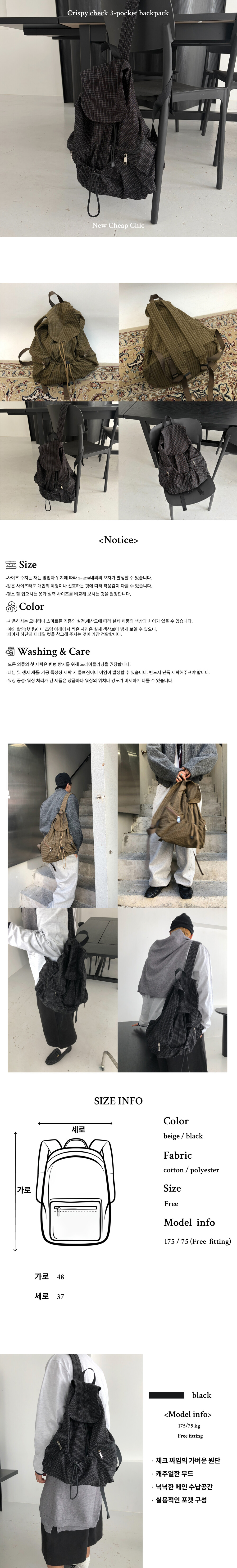 체크 짜임의 가벼운 원단으로 제작된 백팩입니다.