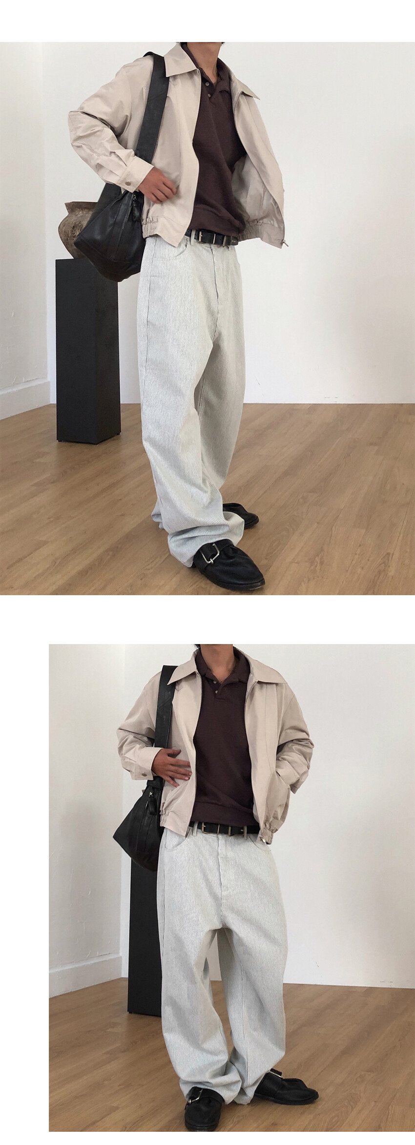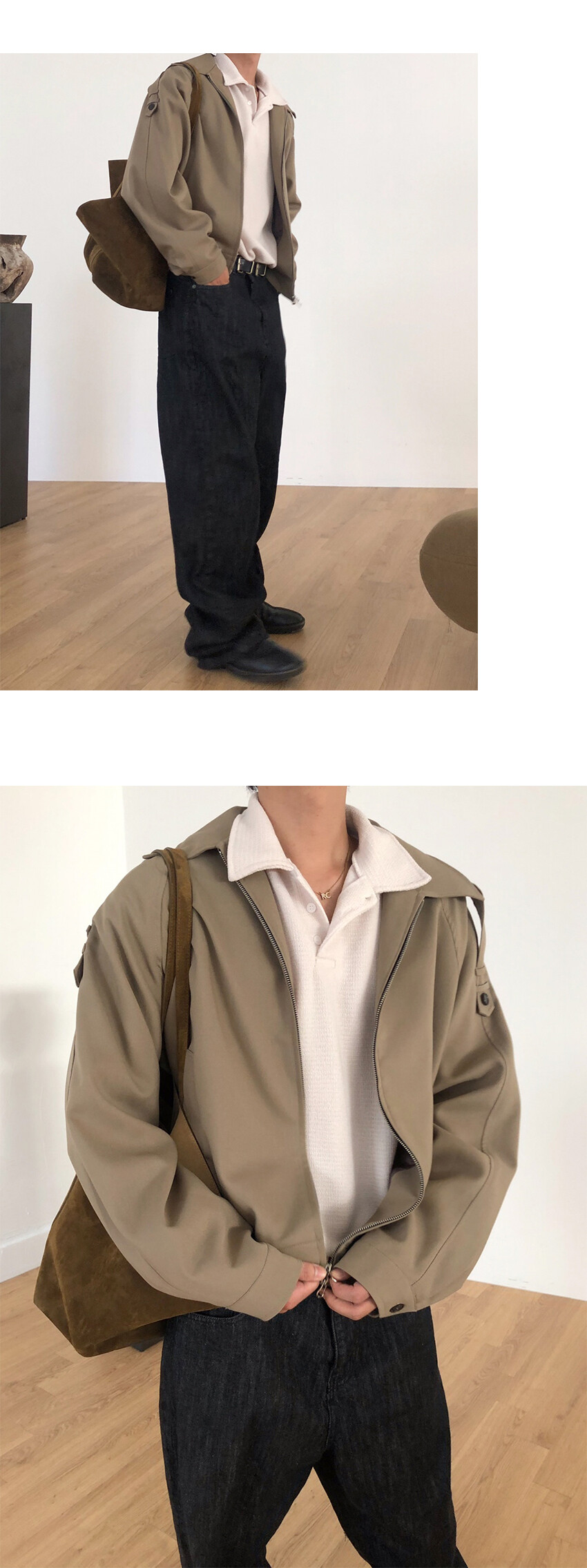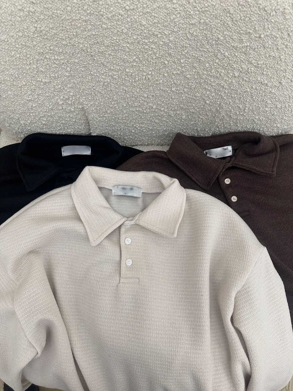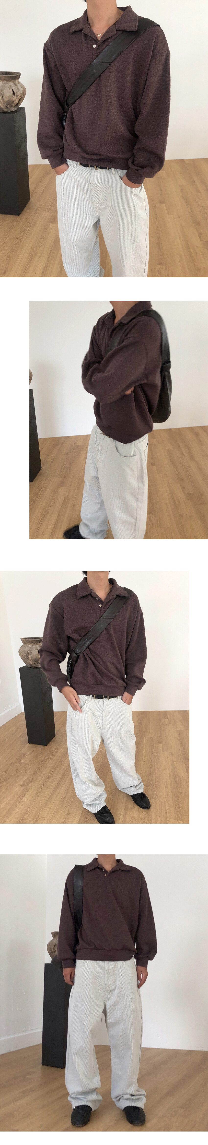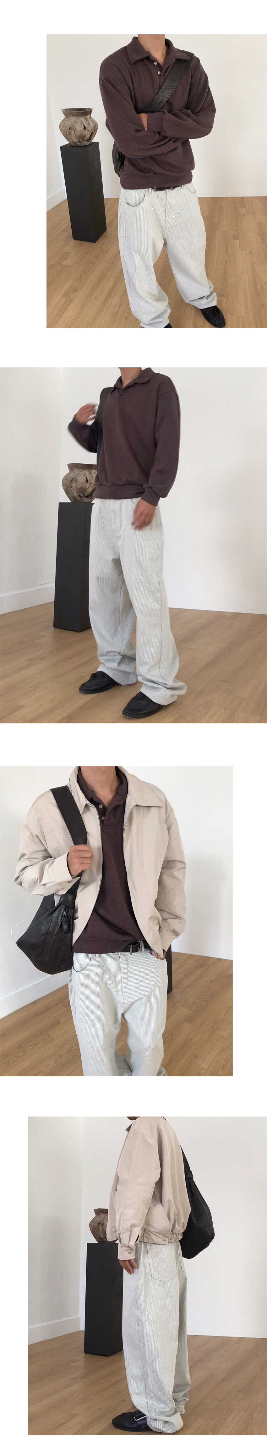 크롭한 실루엣의 카라 니트