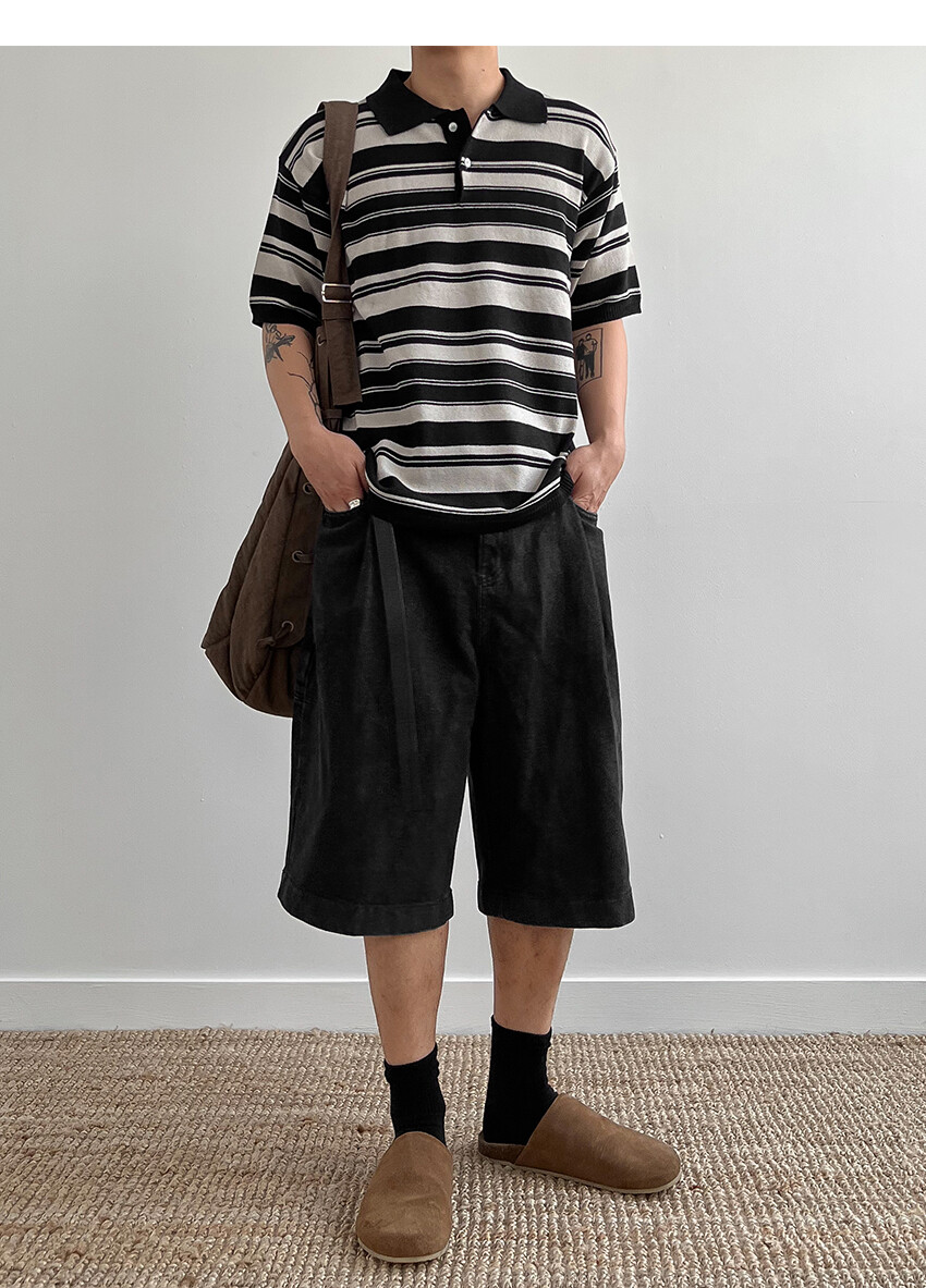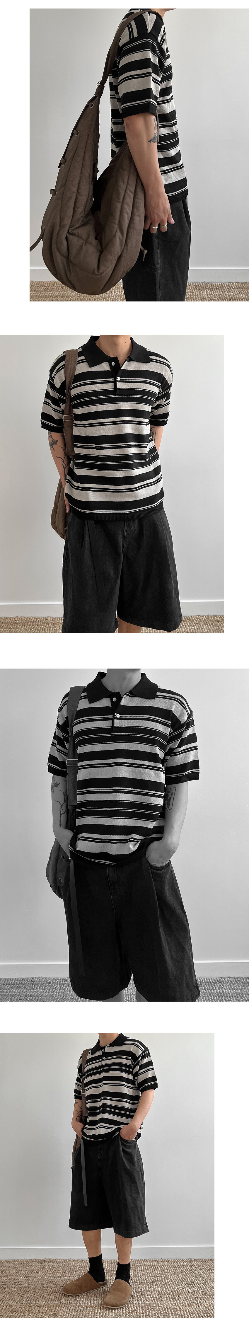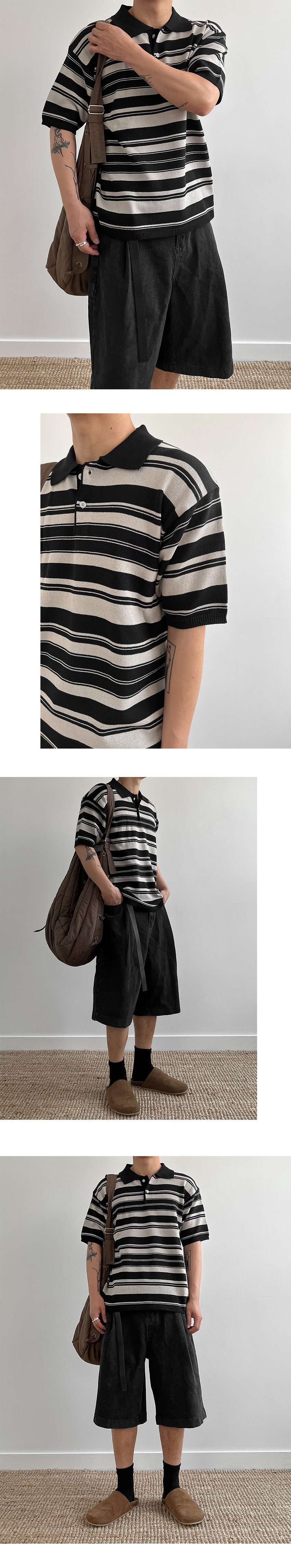 stripe half polo knit