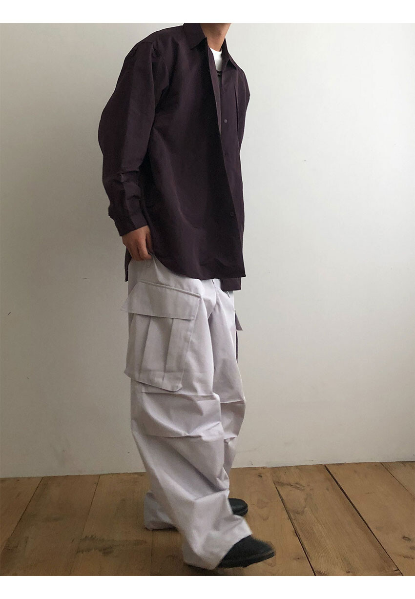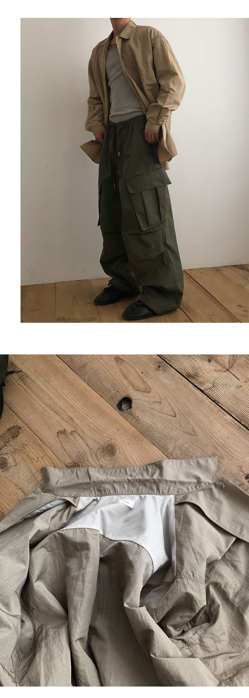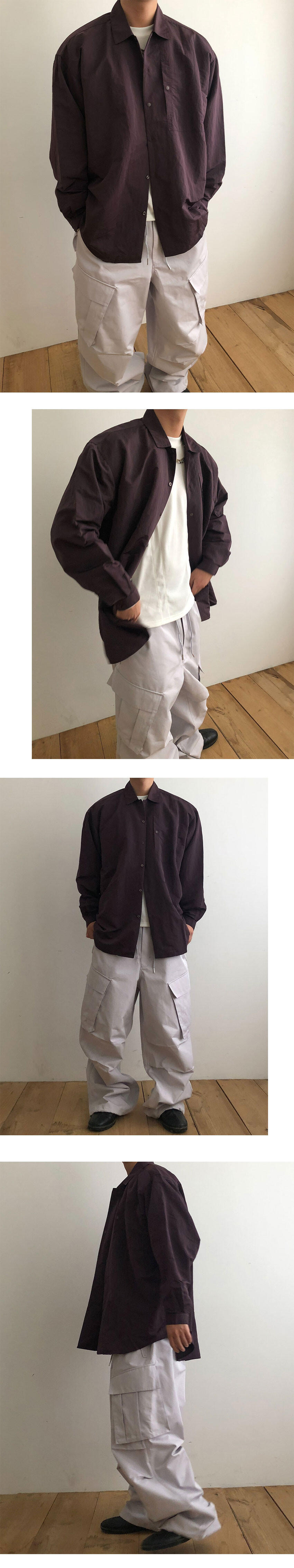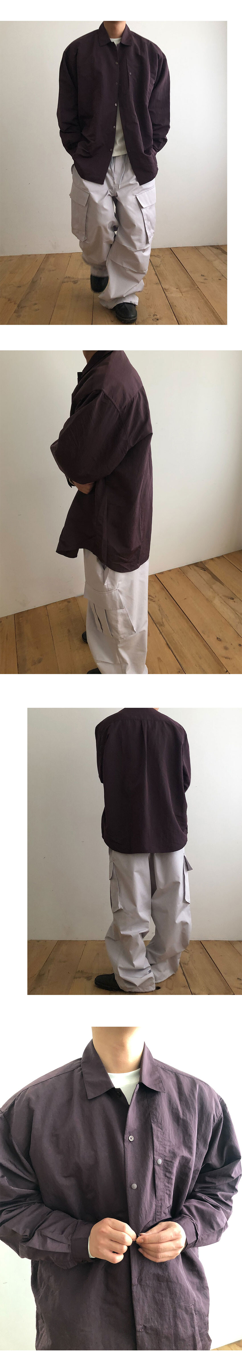 포일느낌의 광택감을 가진 나이론 원단의 오버 셔츠 자켓