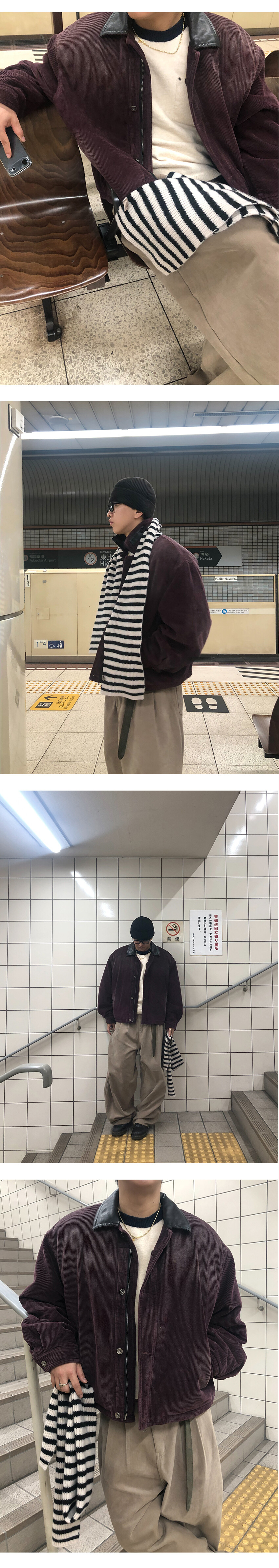 카라 부분을 레더원단을 사용함으로써 올드해보일 수 있는 자켓을 조금 더 미니멀하고 캐주얼하게 풀어 낸 제품입니다.