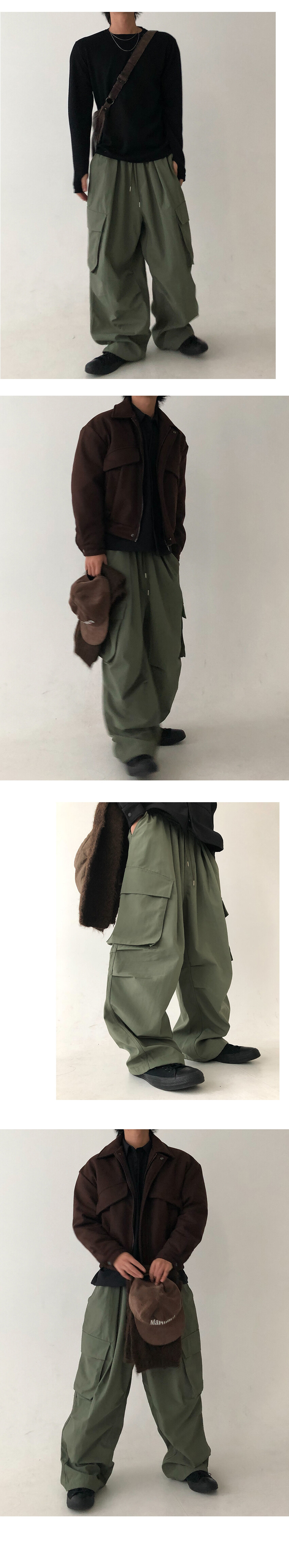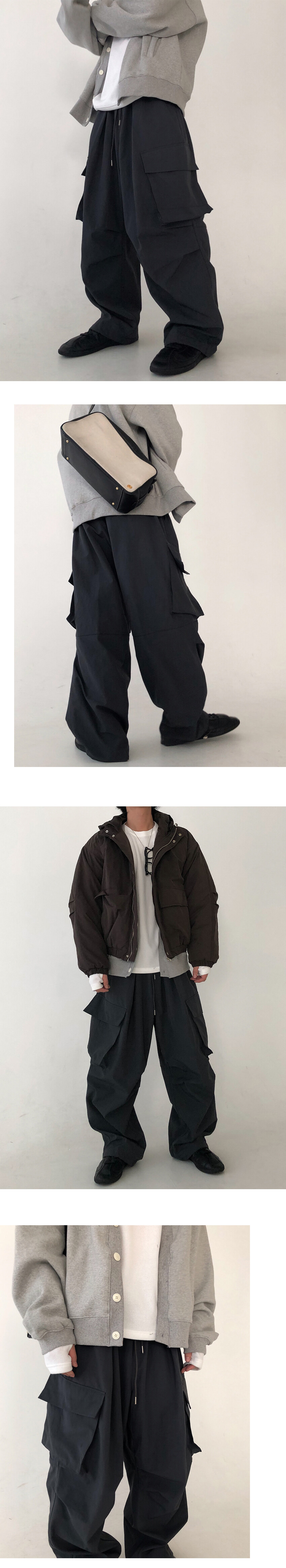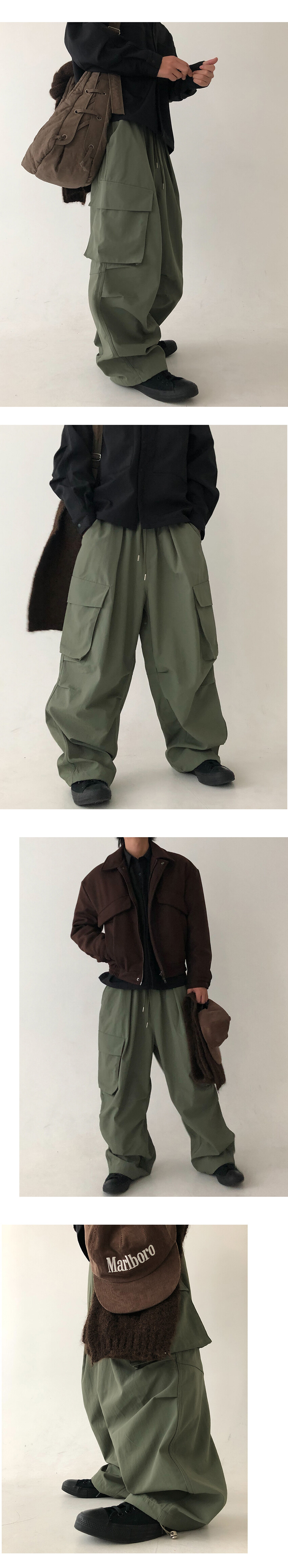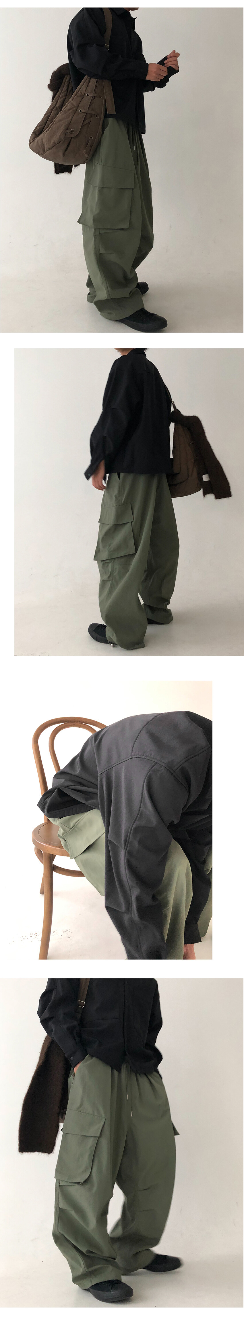 전면원턱 ,무릎턱 ,비대칭 카고 포켓 ,전체 허리 밴딩으로 편안한 착용감