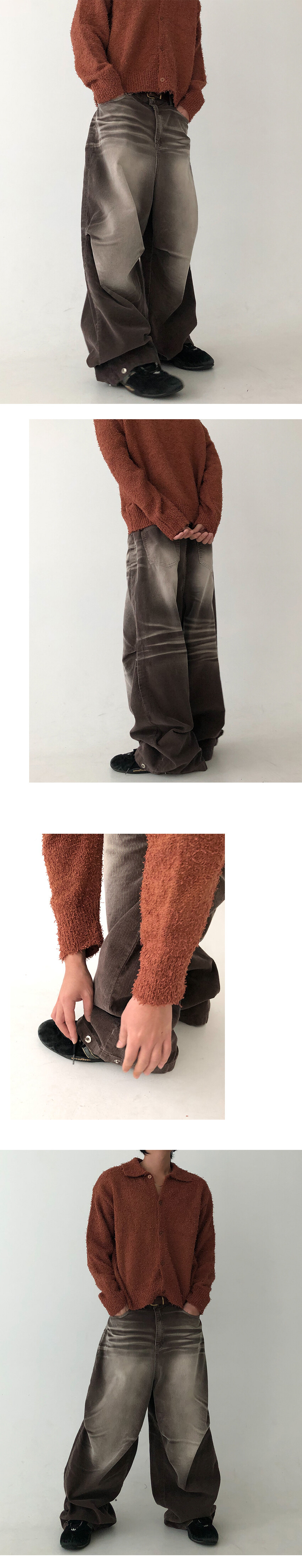 무릎턱 ,밑단 스냅, 허리 비조 디테일