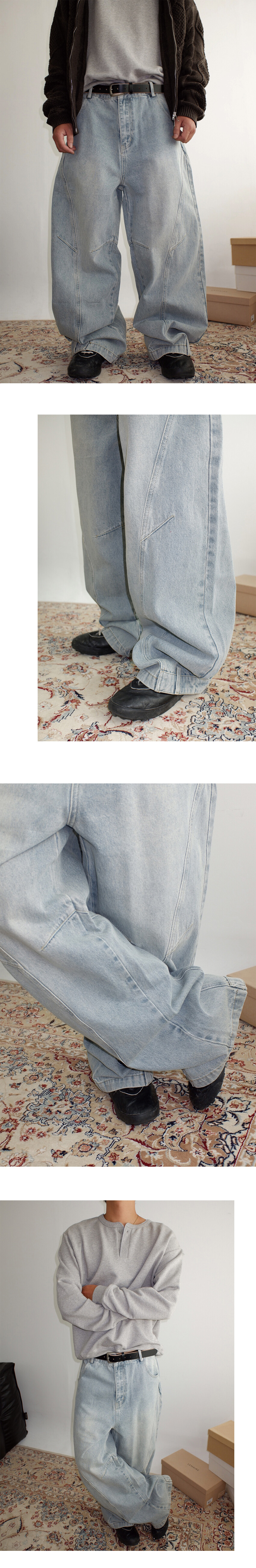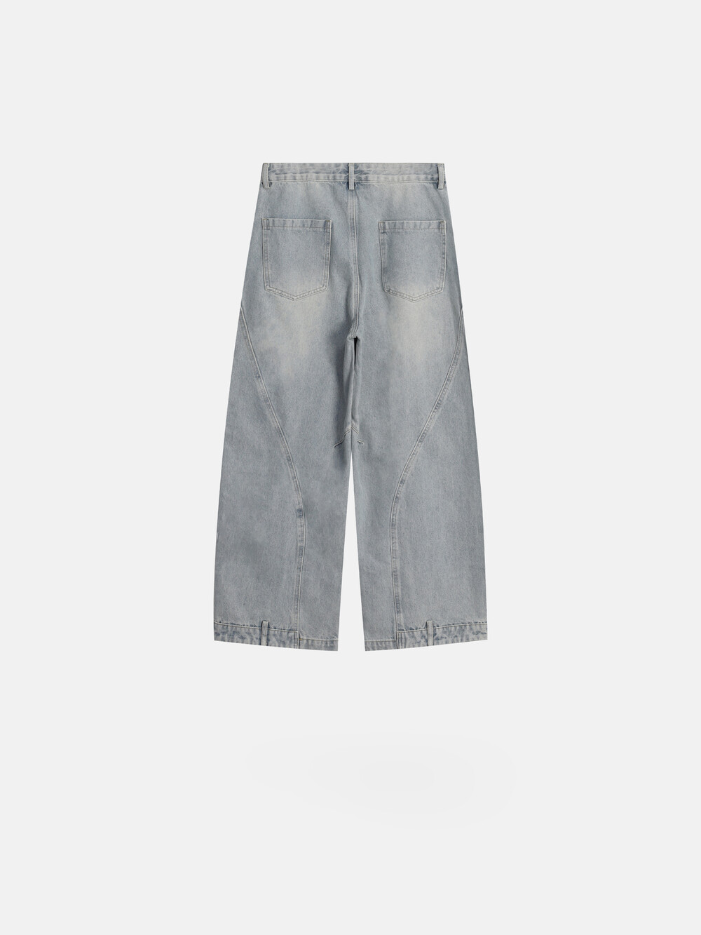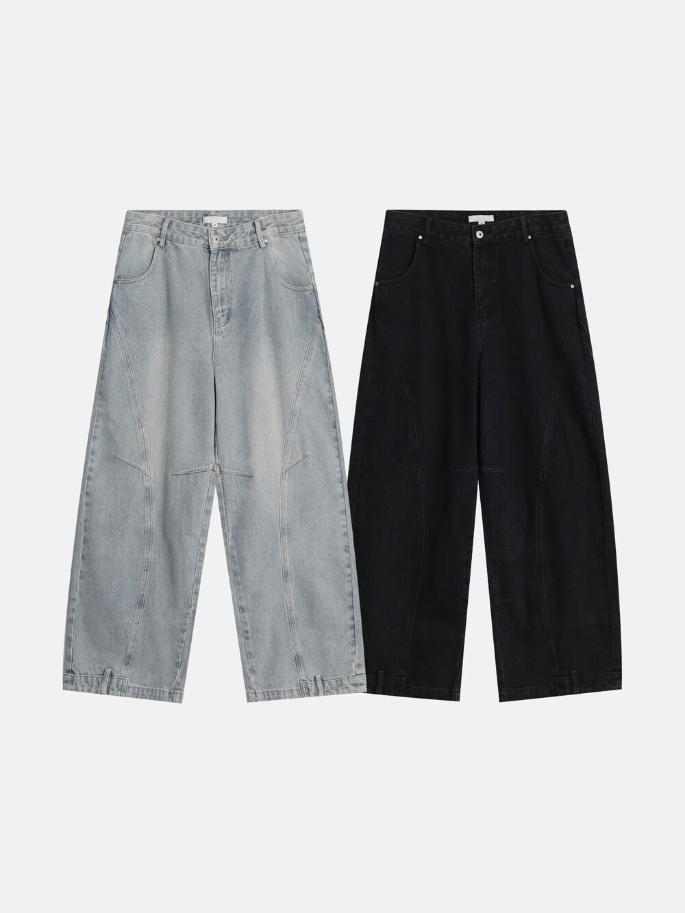 다트와 절개 디테일로 입체적인 실루엣을 완성한 데님 팬츠