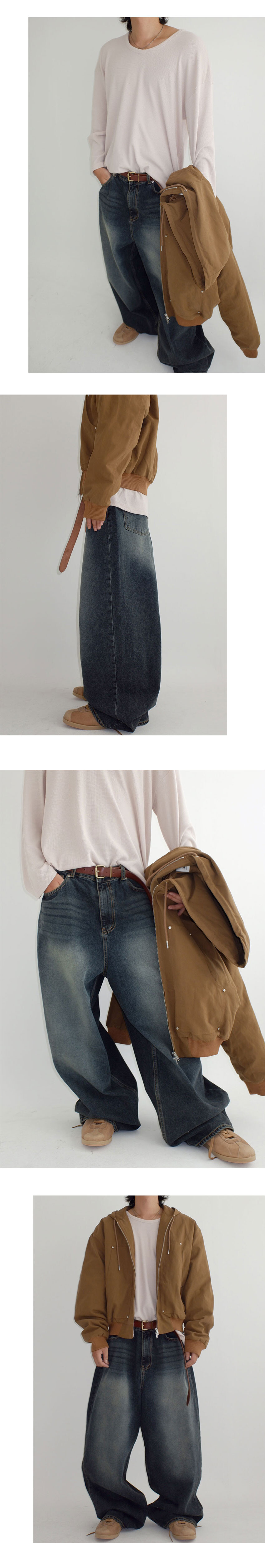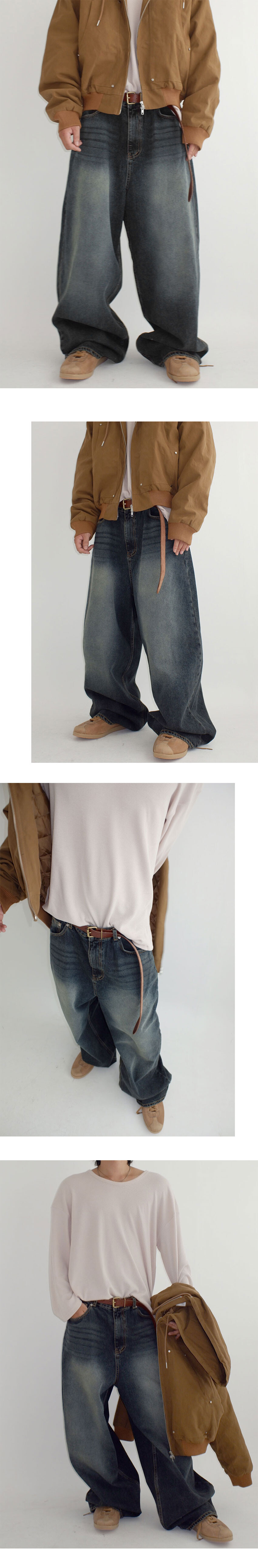 와이드한 실루엣의 데님팬츠 (원단고시감이 뛰어나 떨어지는 핏감이 정말 훌륭합니다.)
