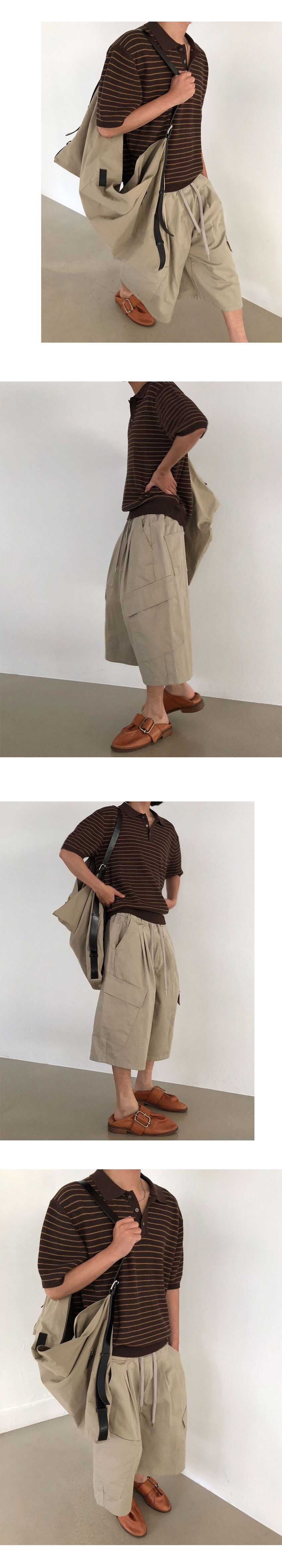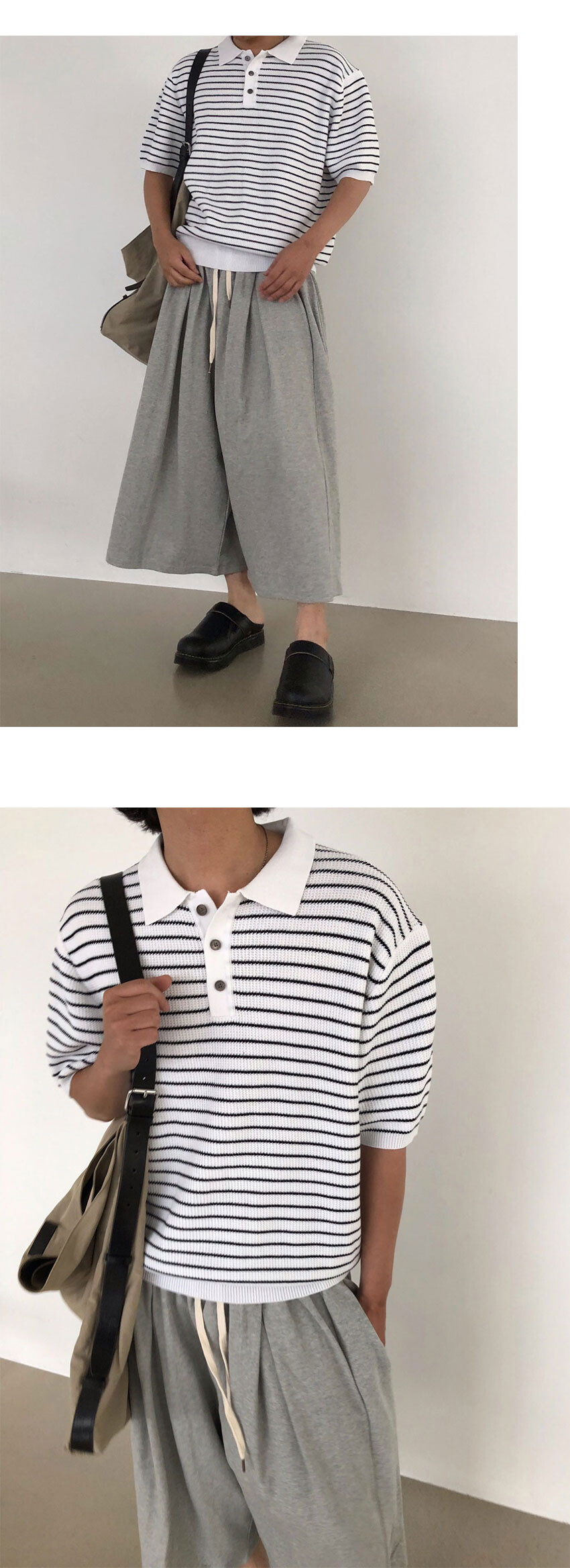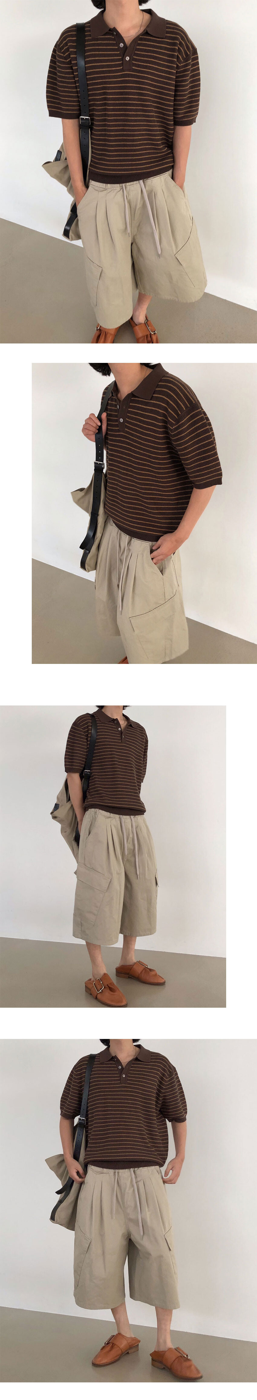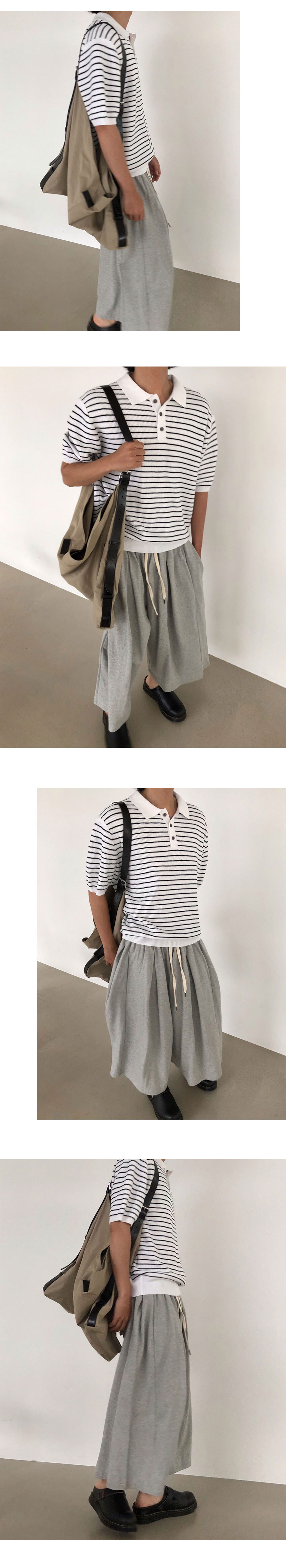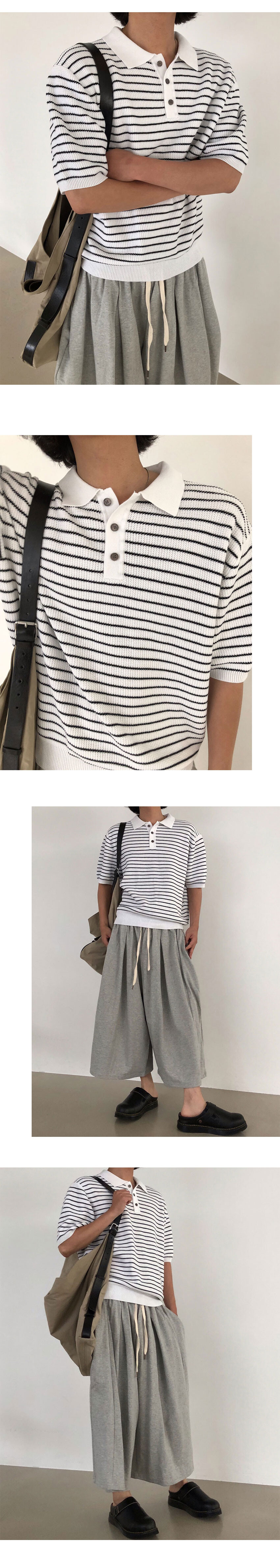 waffle stripe crop polo knit