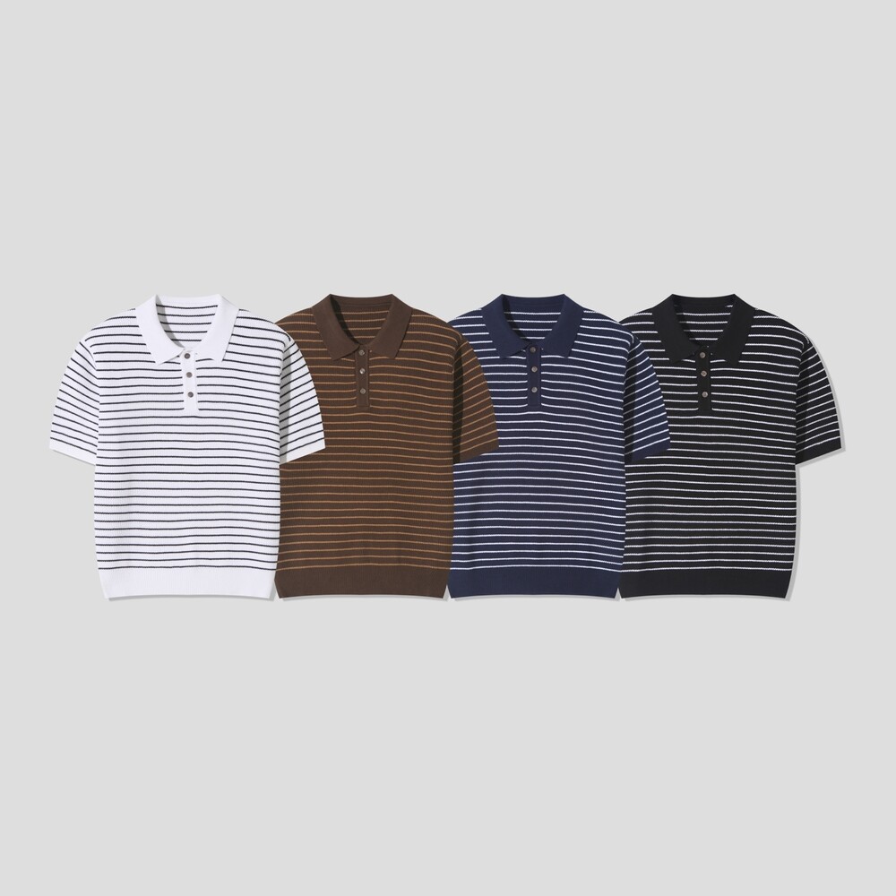 와플짜임의 스트라이프 카라 니트