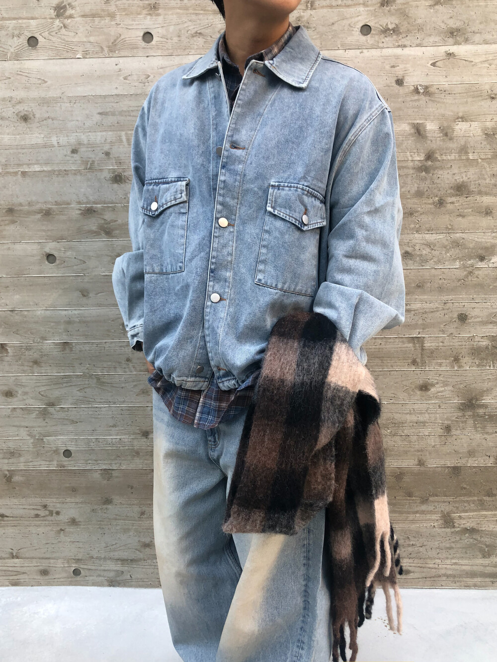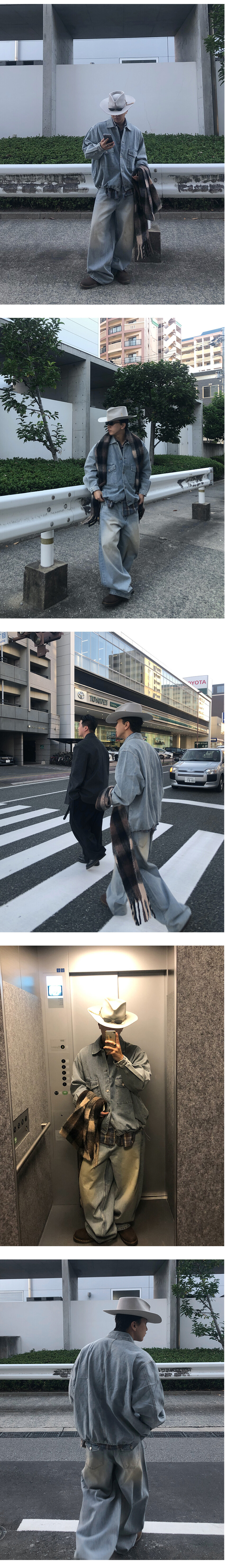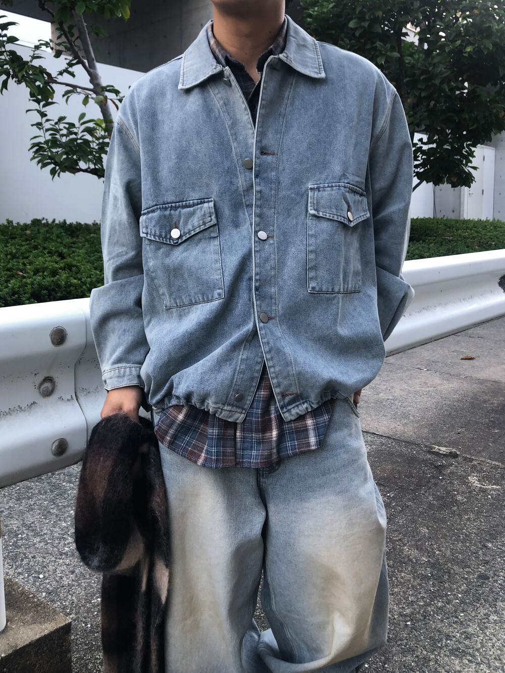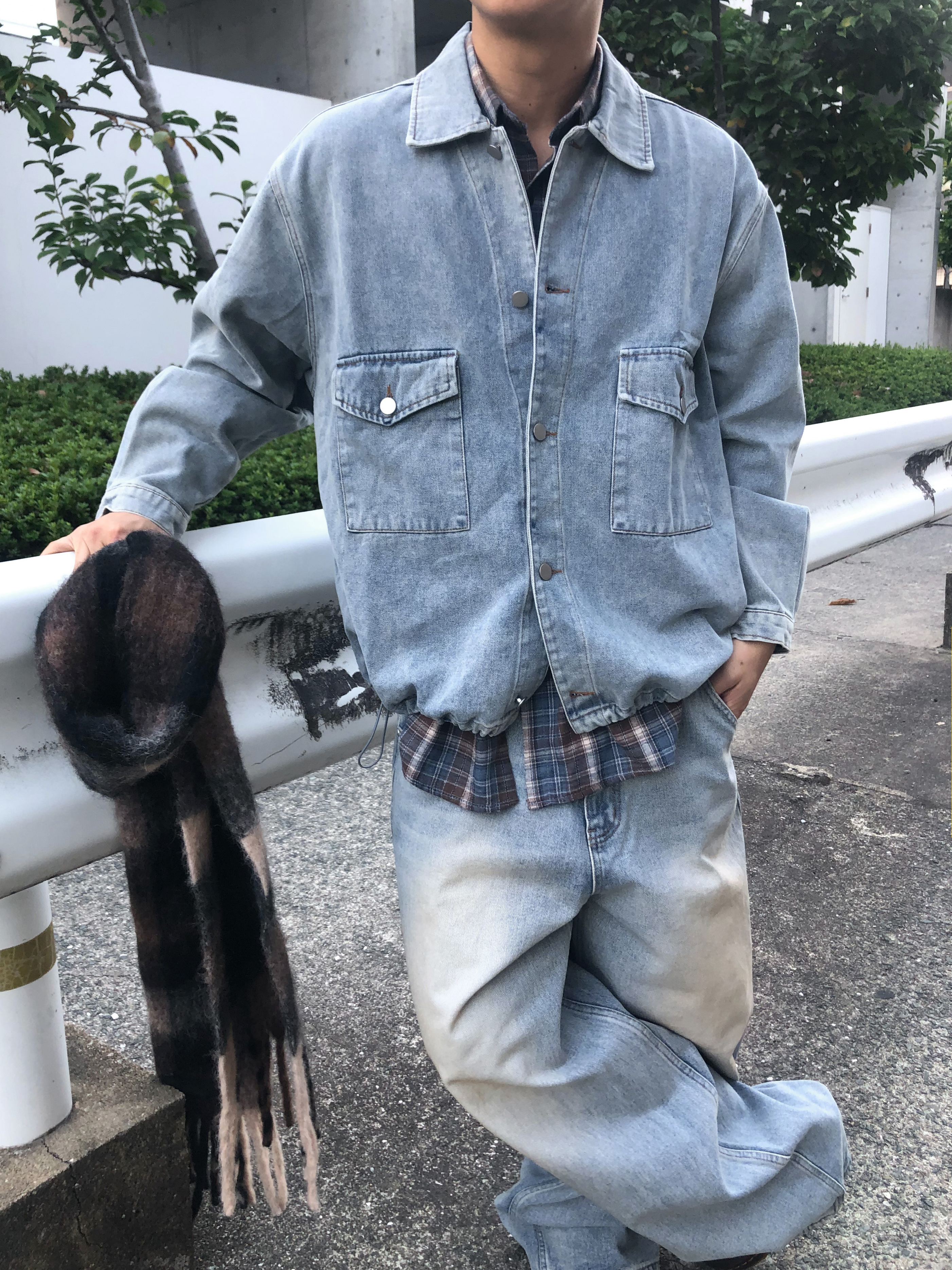 데님 원단으로 제작되어 형태감이 안정적으로 잡히며,입을수록 자연스럽게 생기는 에이징이 멋스럽게 살아나는 제품입니다.