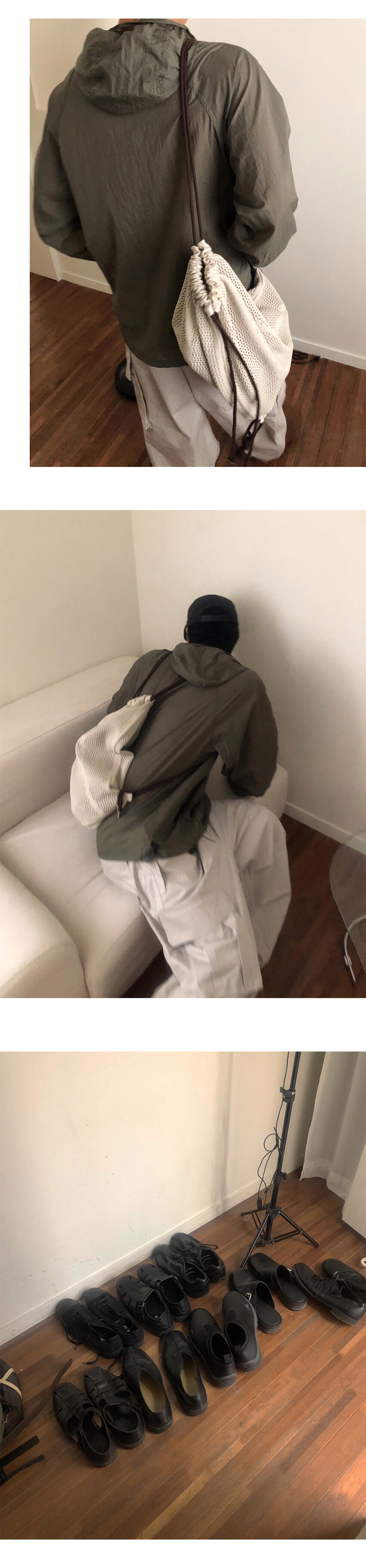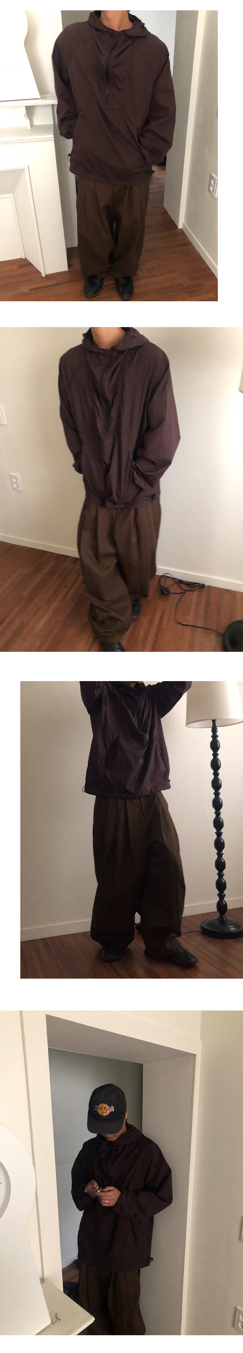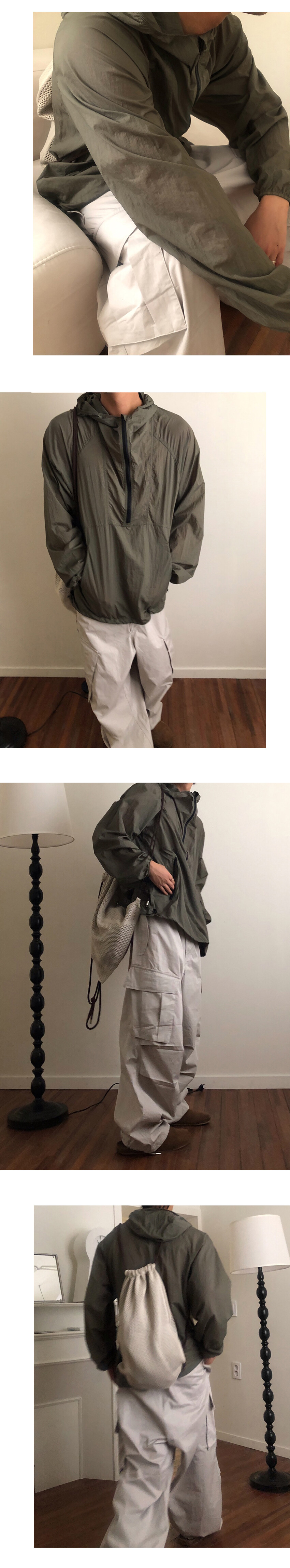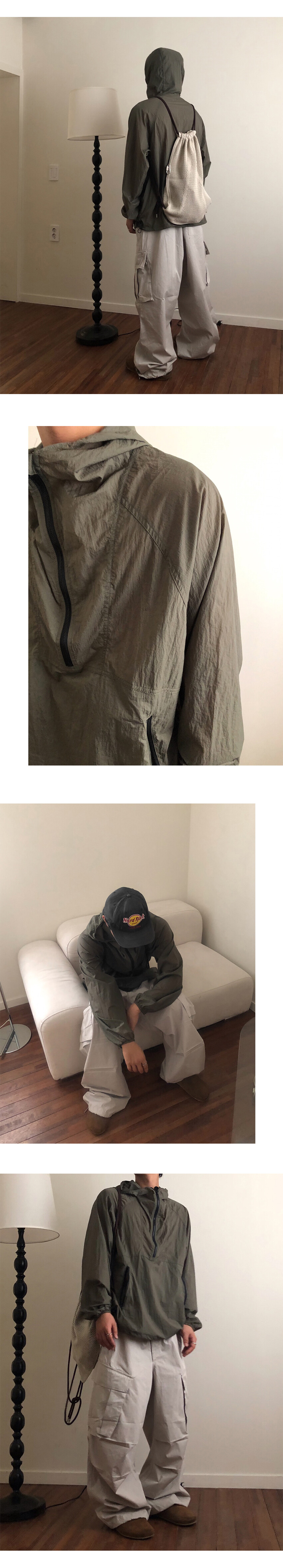 여행이나 외출시 외투가 거추장스러울때 후드 뒤에 있는 포켓에 전체의 옷이 다 접혀져 들어가서 휴대 가능