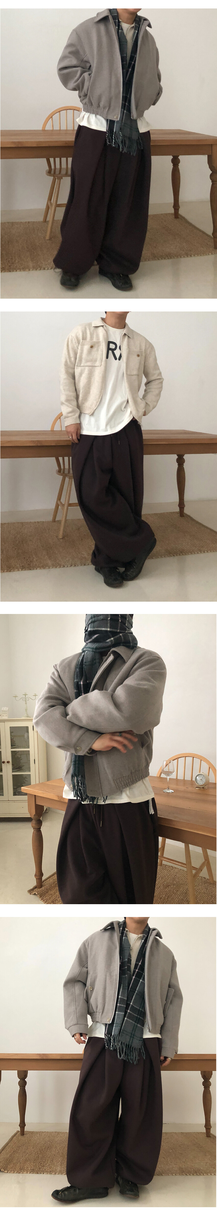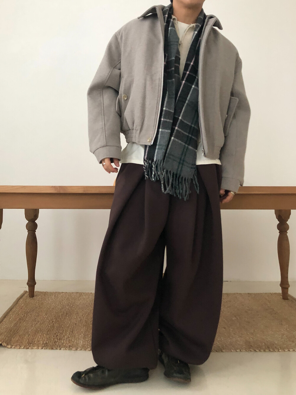 전면의 맞주름 턱 디테일은 자연스러운 볼륨감을 만들어 와이드한 실루엣을 더욱 돋보이게 합니다.