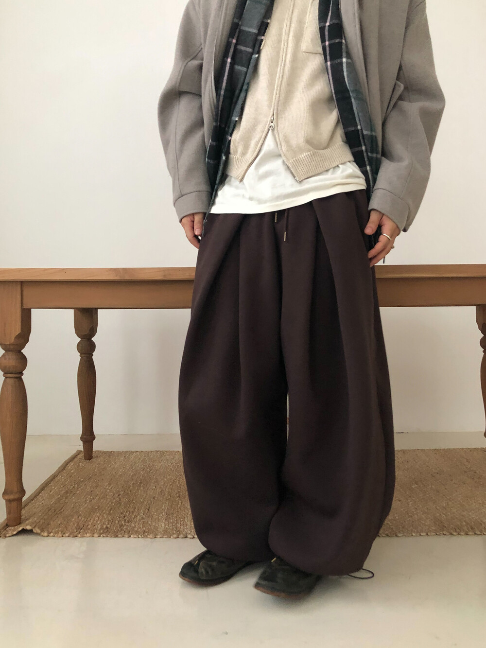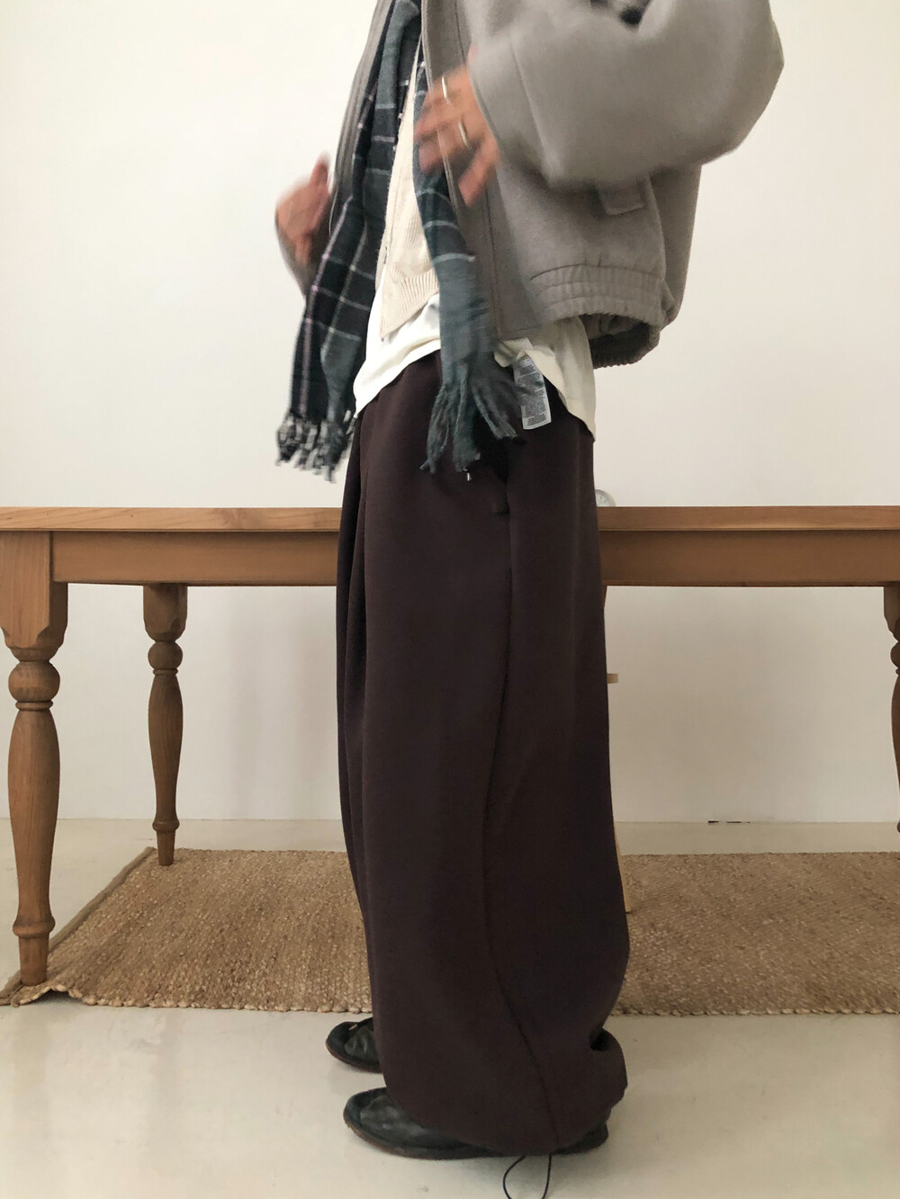 특유의 깊이 있는 핀턱 라인은 스웻팬츠임에도 세련된 라인을 유지해 데일리와 캐주얼룩 모두에 안정적으로 스타일링됩니다.