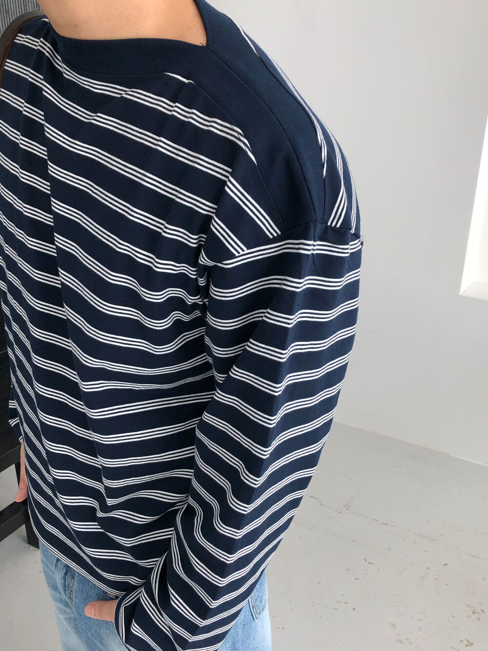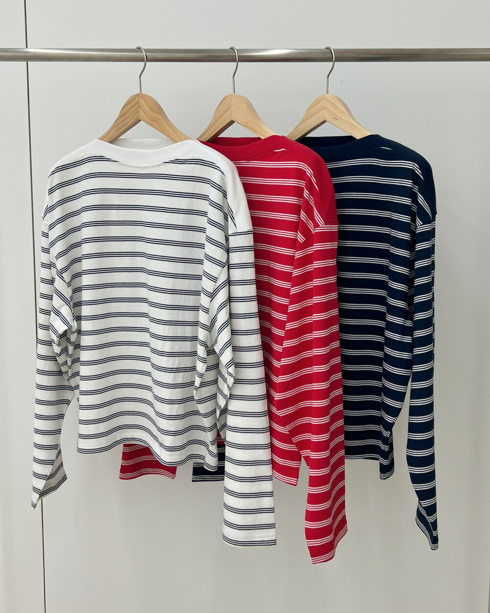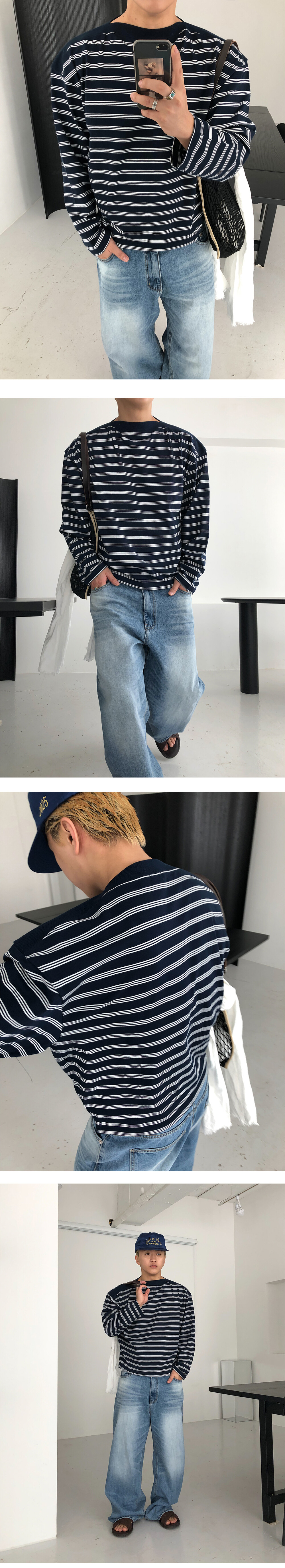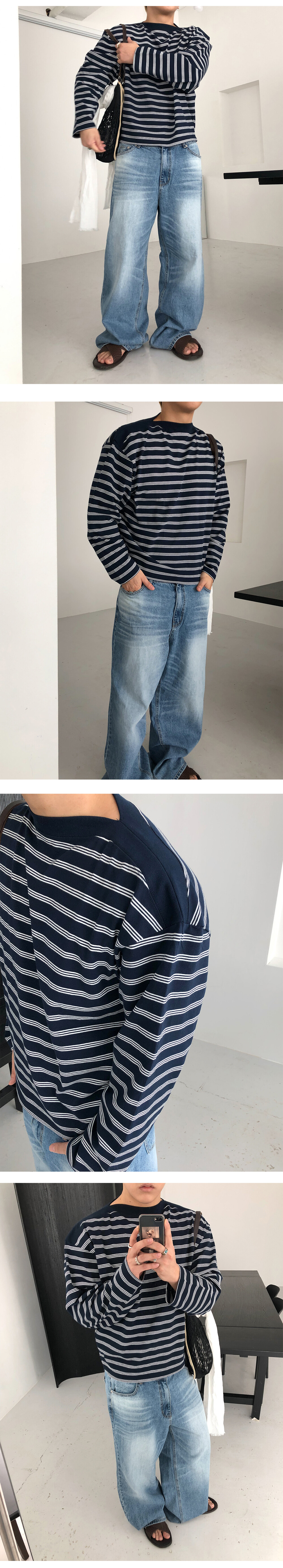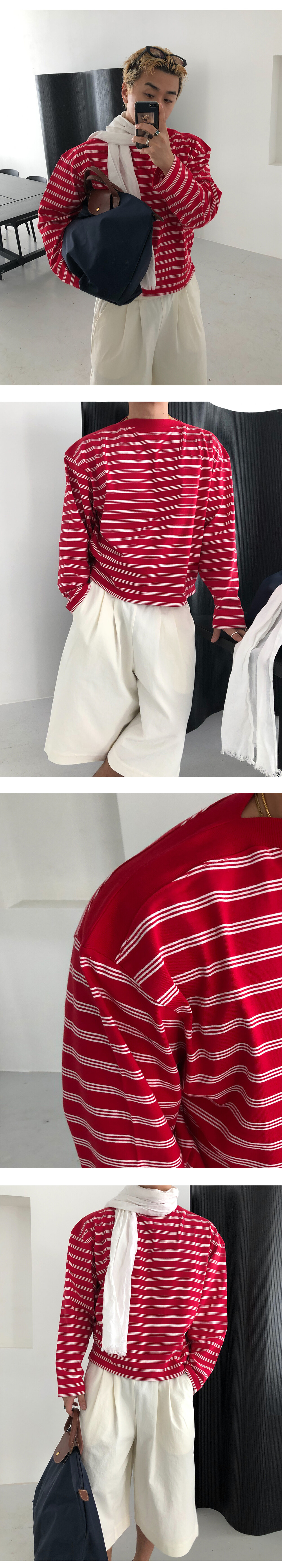 Stripe boat neck crop long sleeve