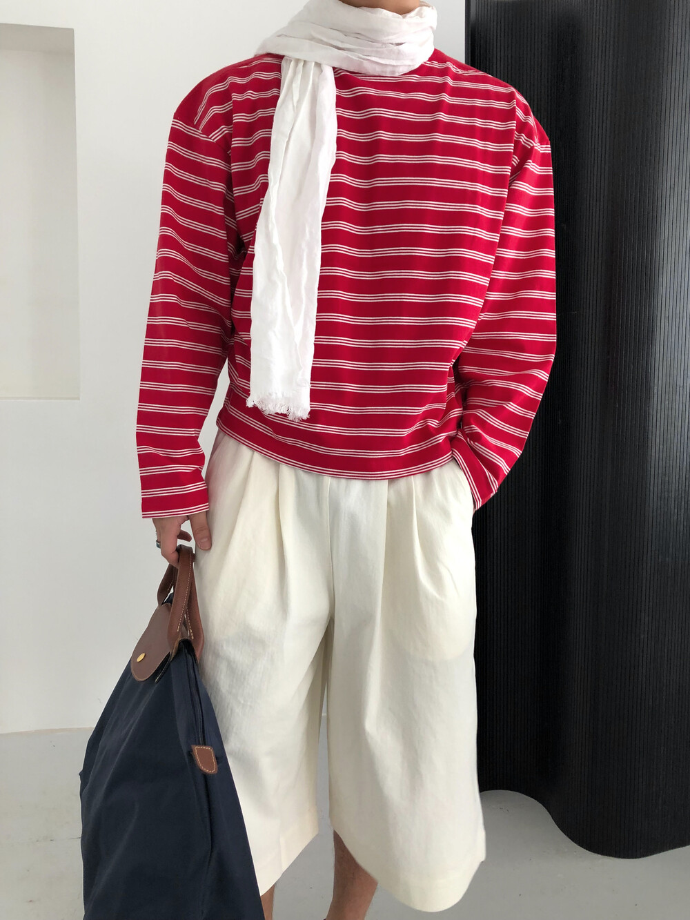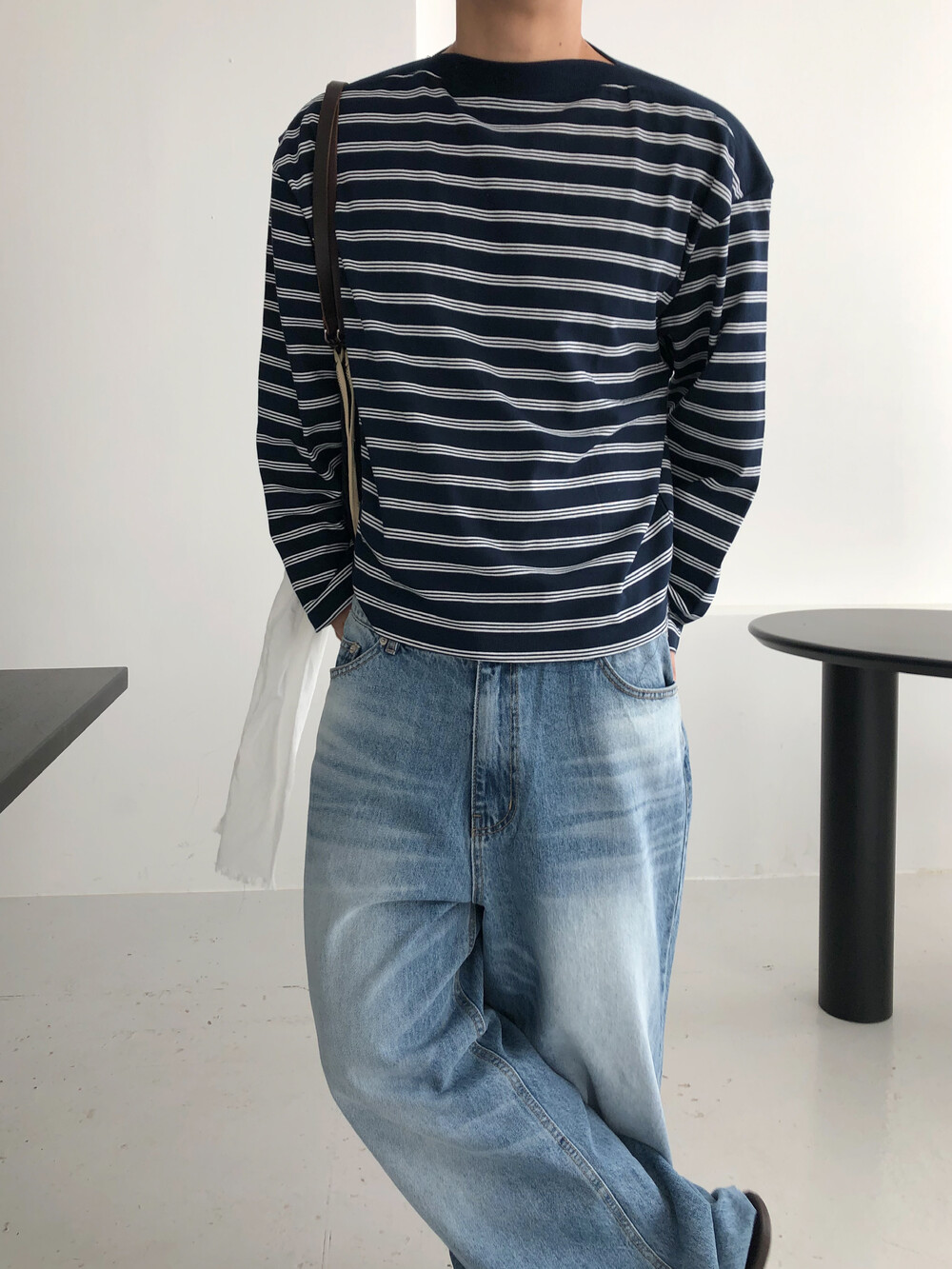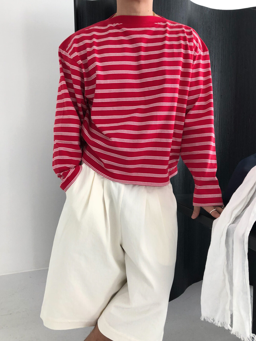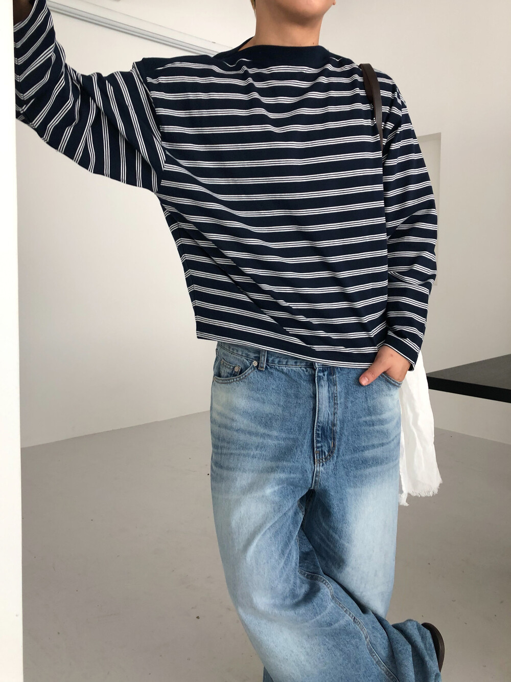 Stripe boat neck crop long sleeve