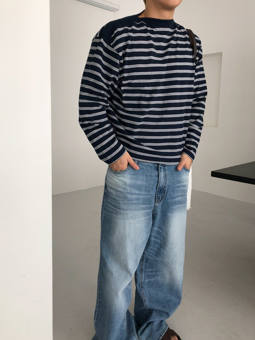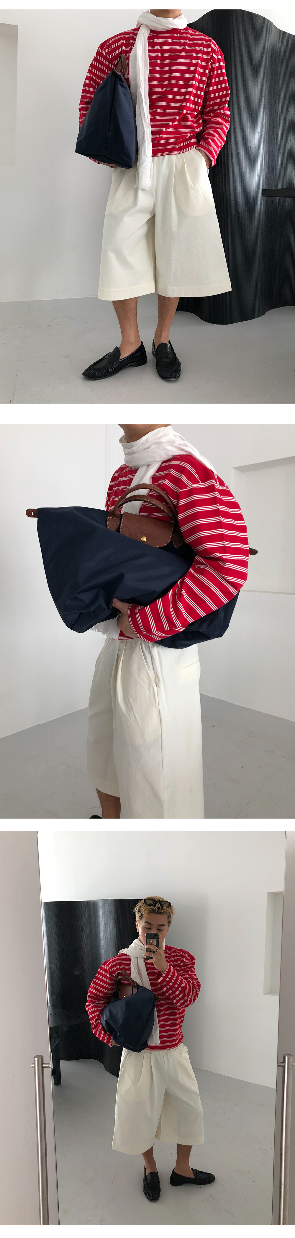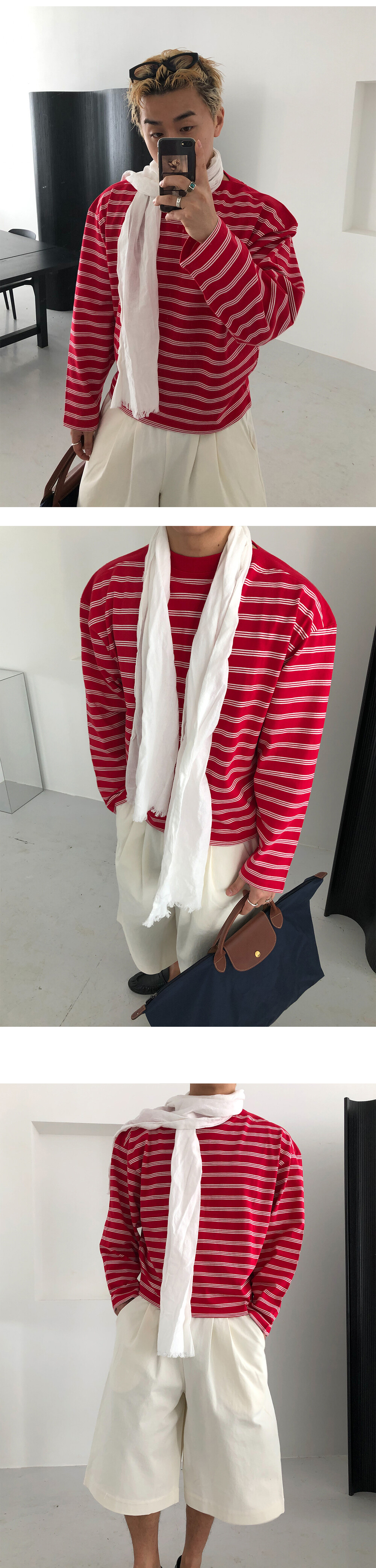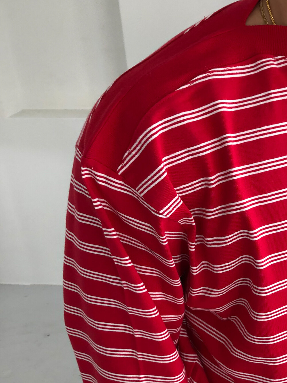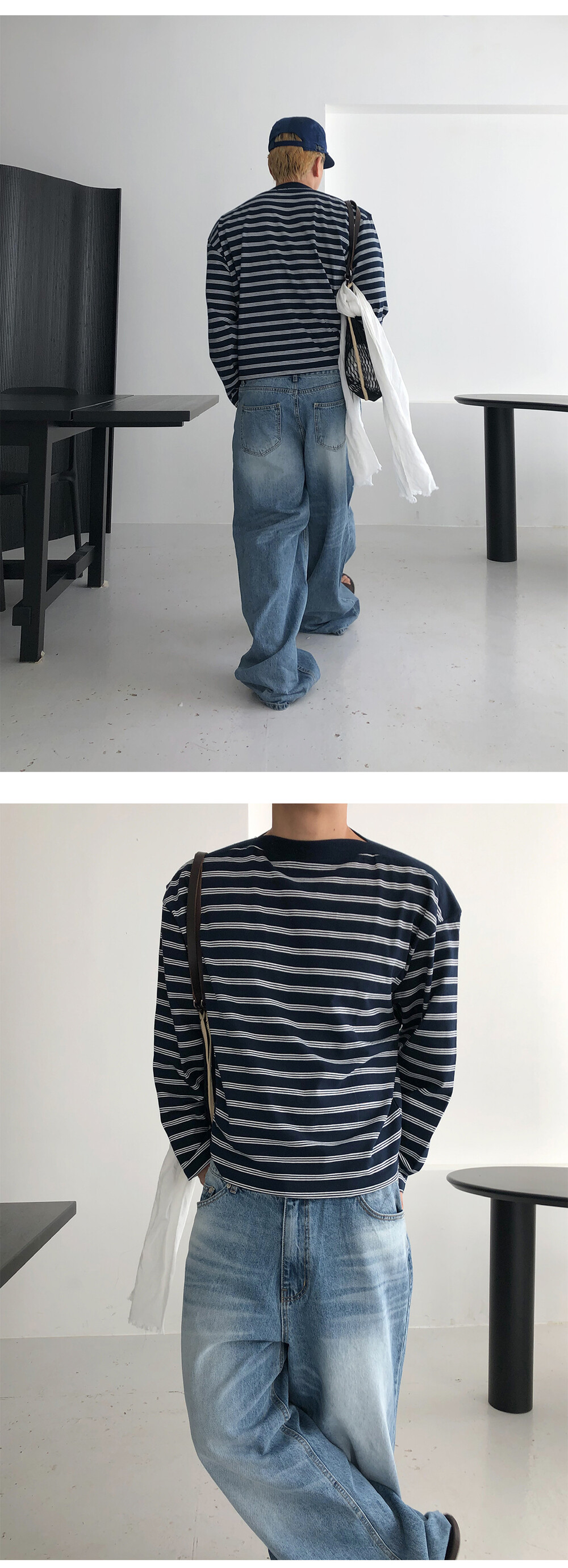 Stripe boat neck crop long sleeve