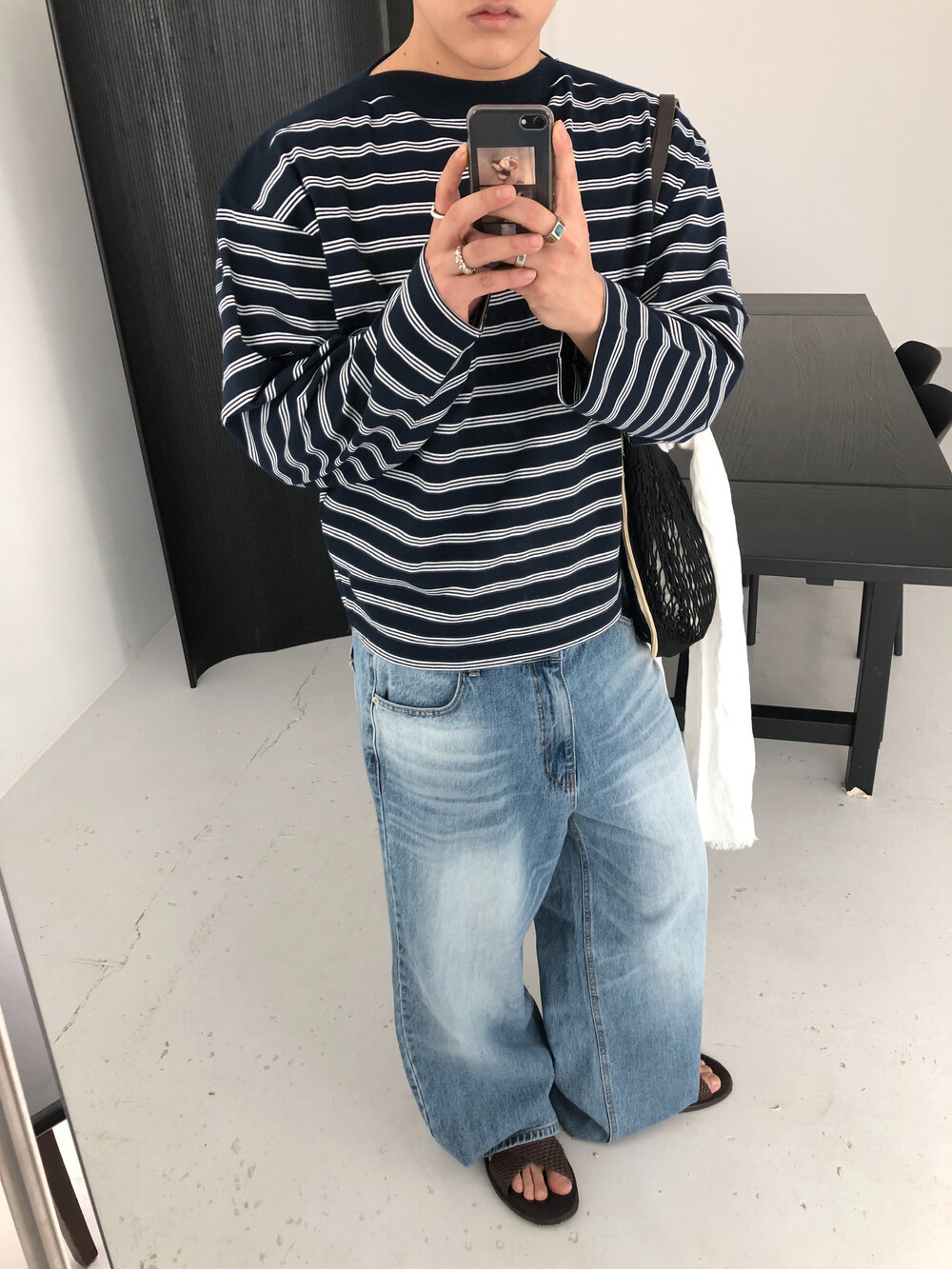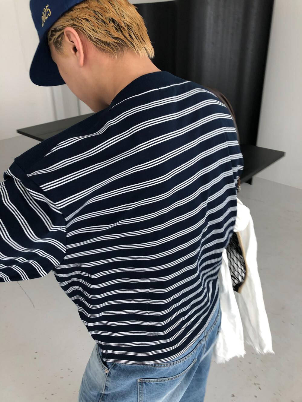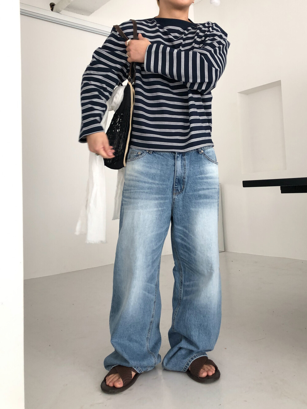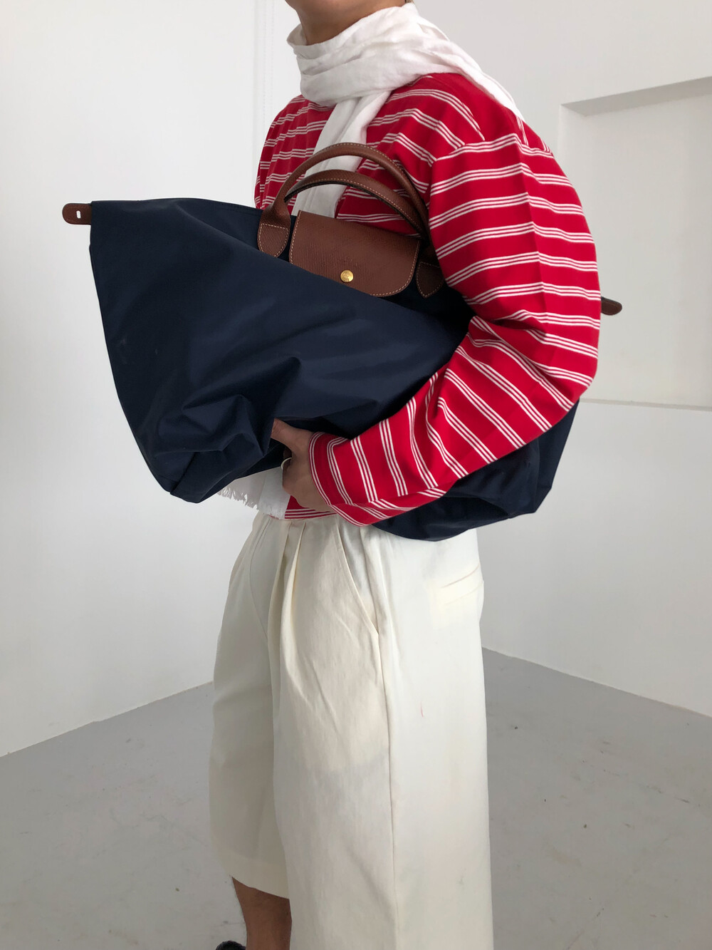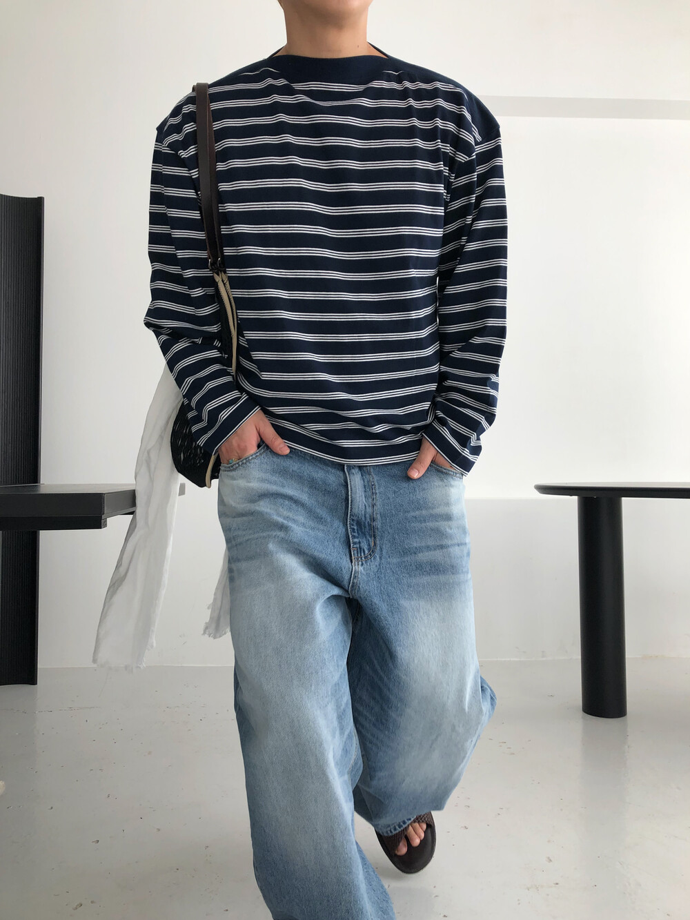 Stripe boat neck crop long sleeve