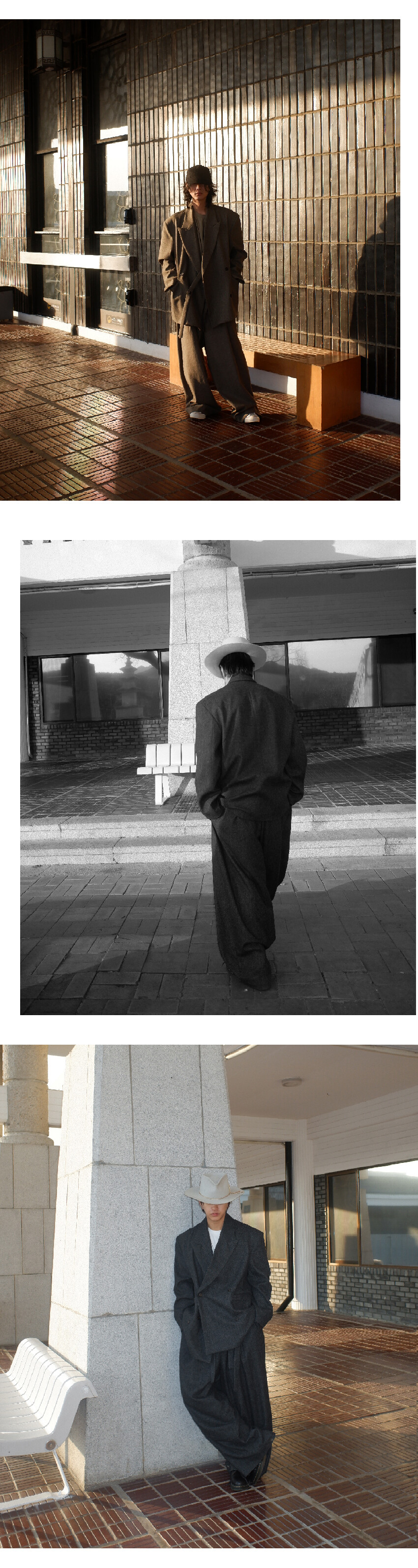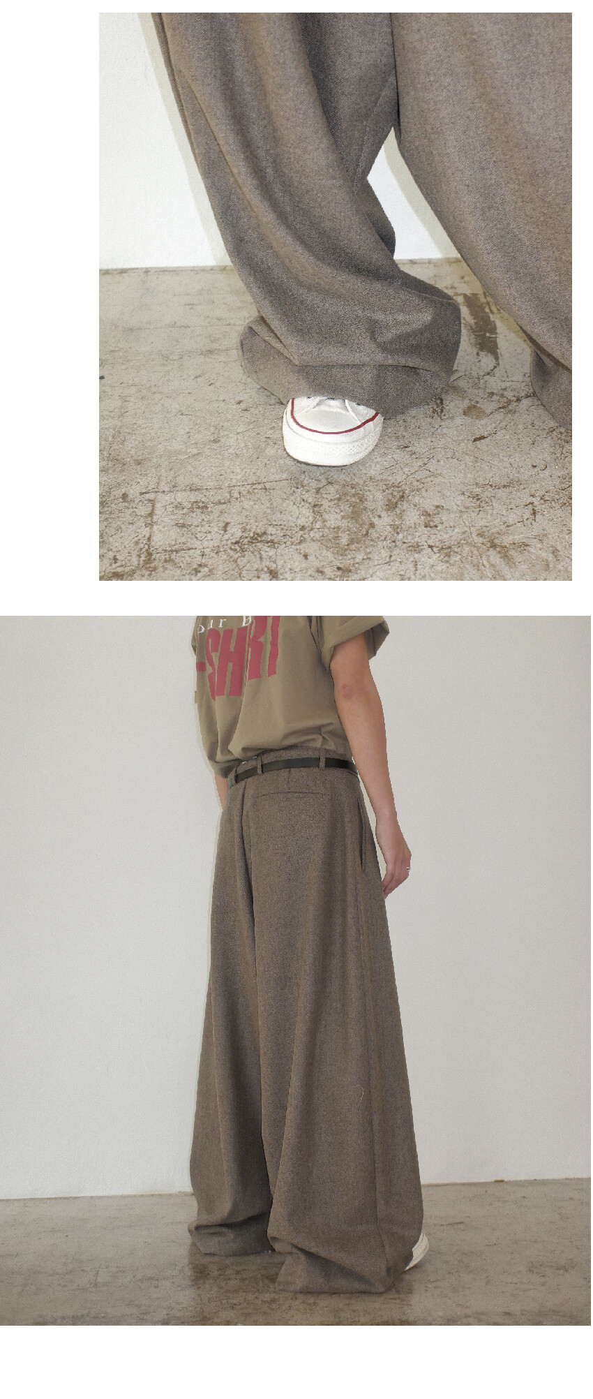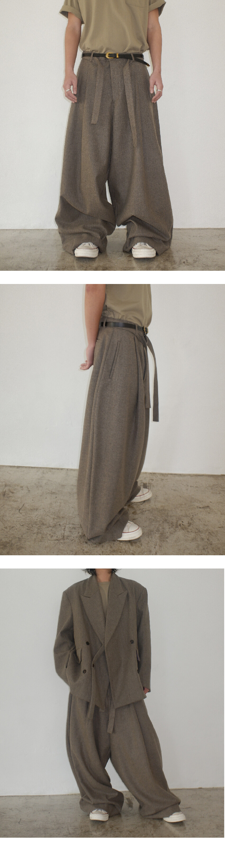슬랙스는 전면 원턱 디자인으로 와이드한 실루엣이며