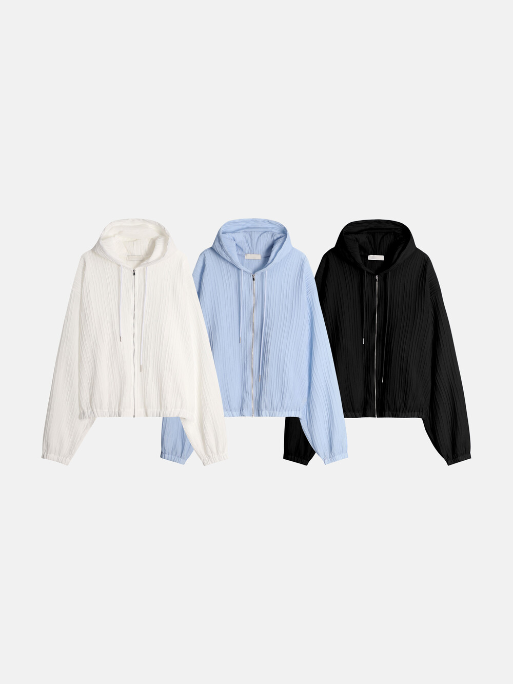 크롭한 기장감에 오버사이즈 실루엣의 후드집업