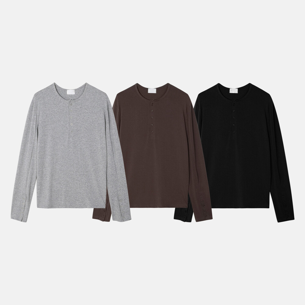 부드럽고 유연한 소재의 원단으로 제작되어 네추럴하게 흐르는 핏감