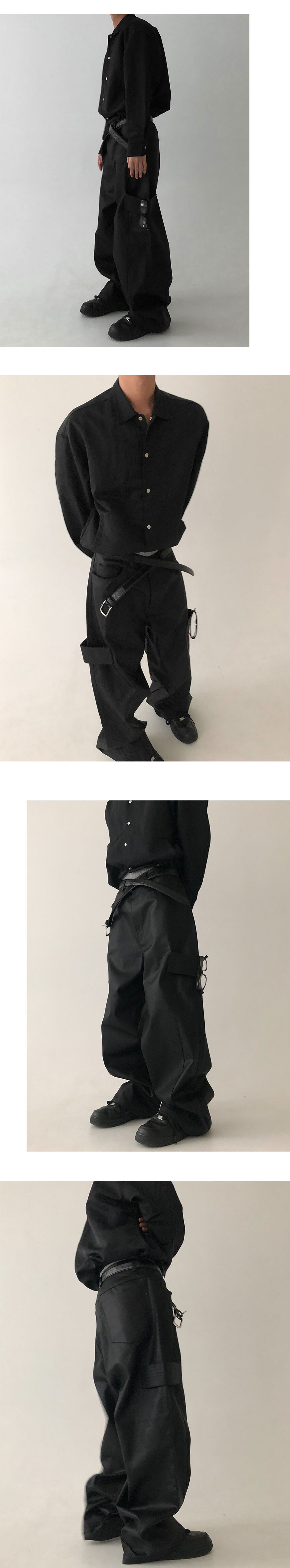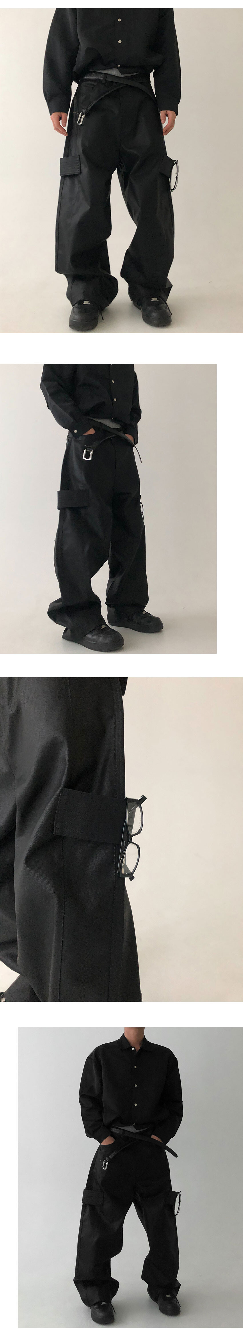 coated carpenter wide pants