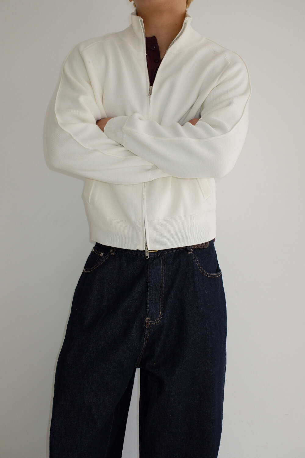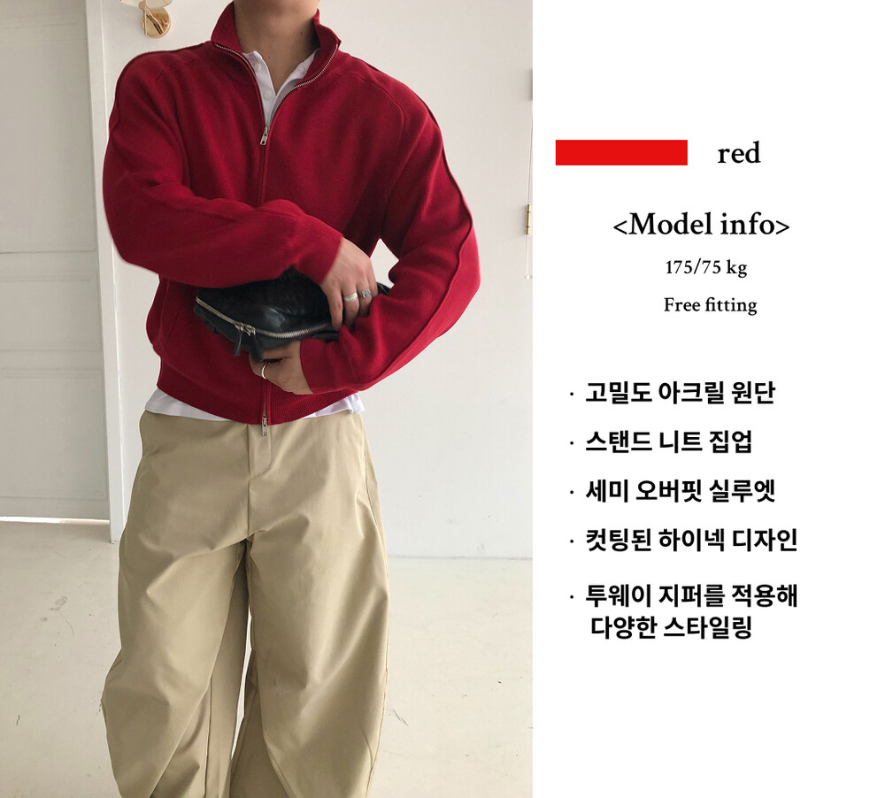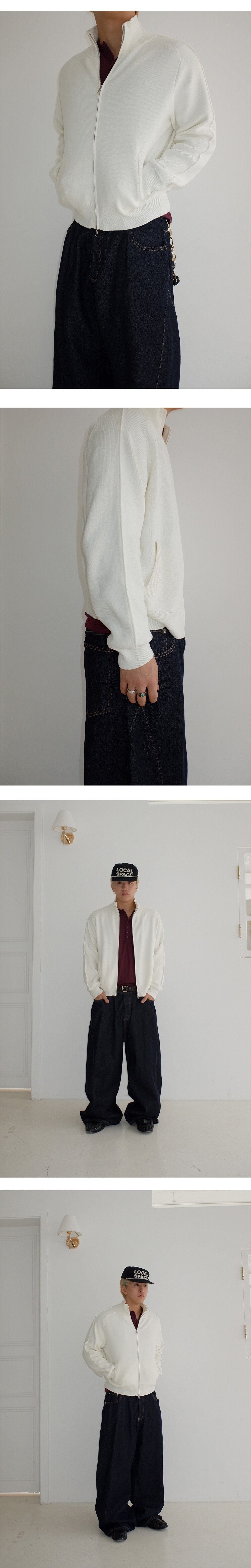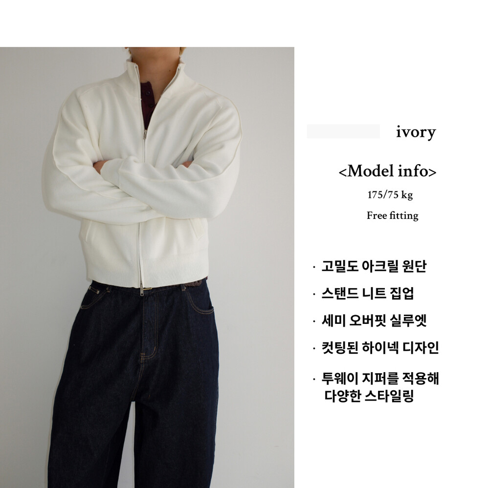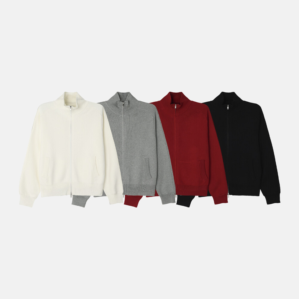 Stand knit zip up