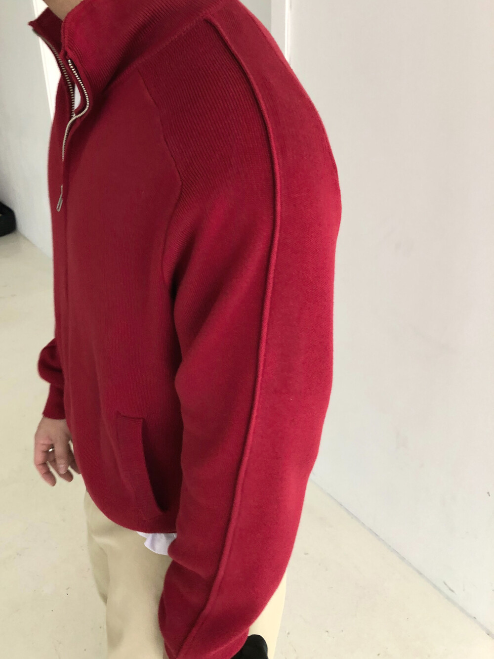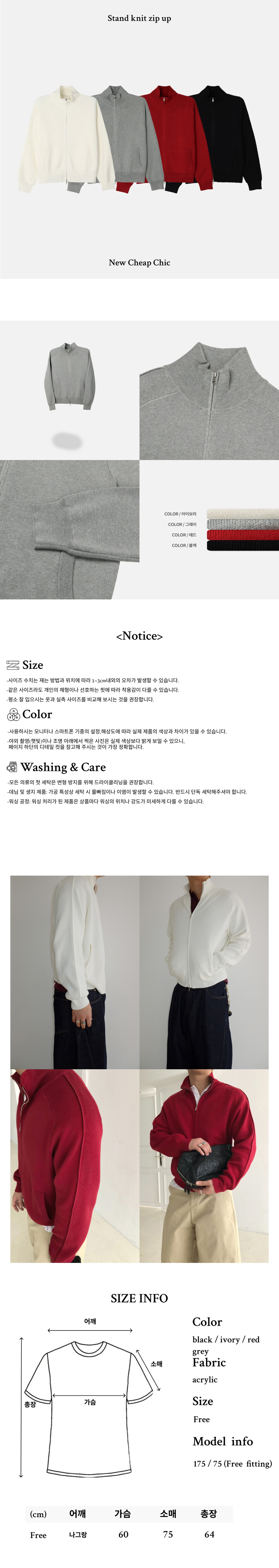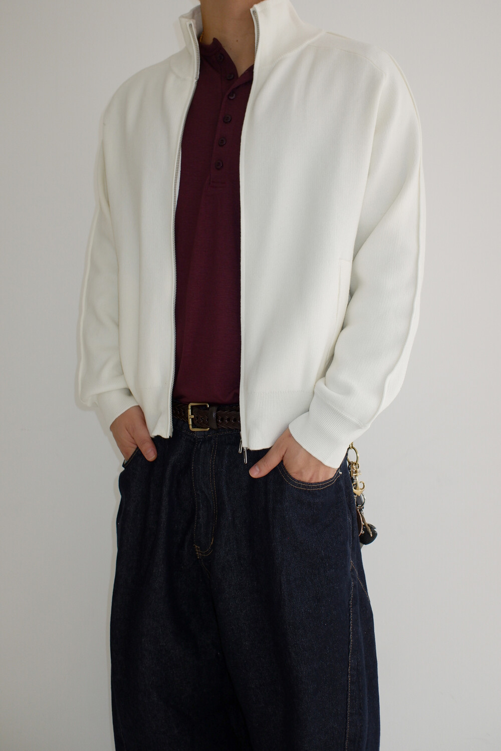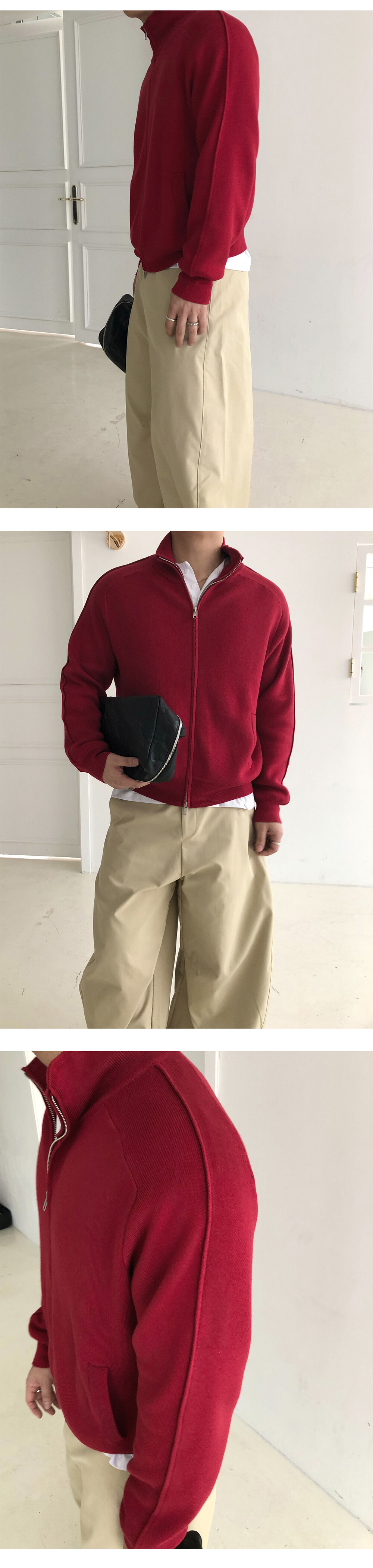 Stand knit zip up