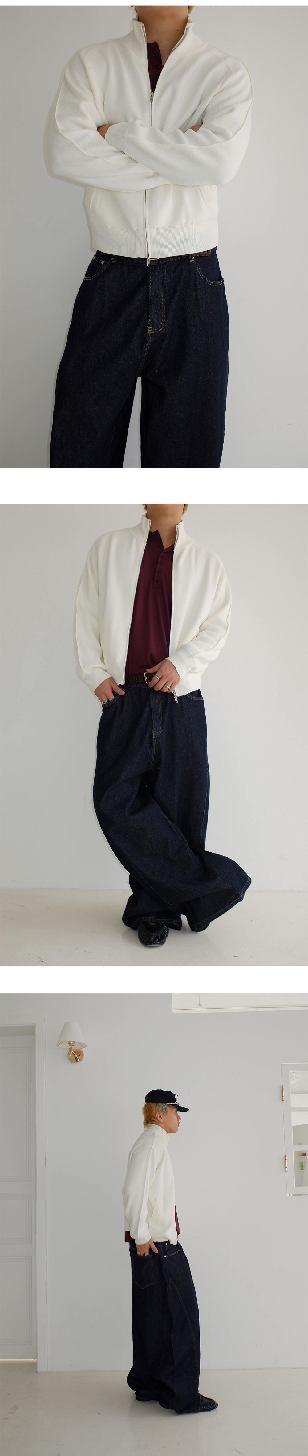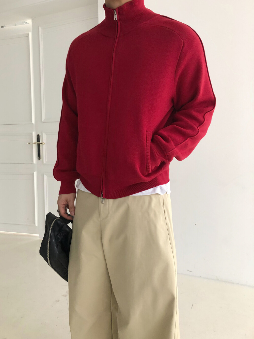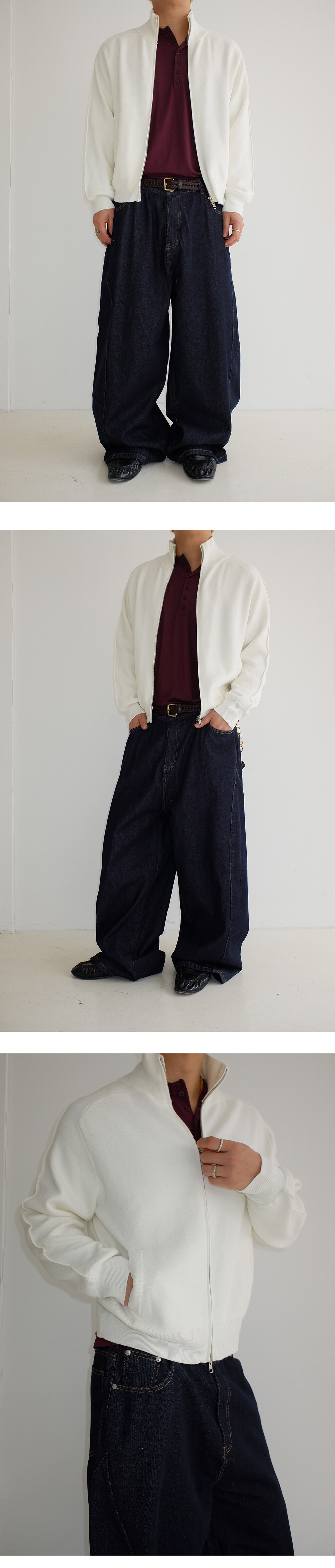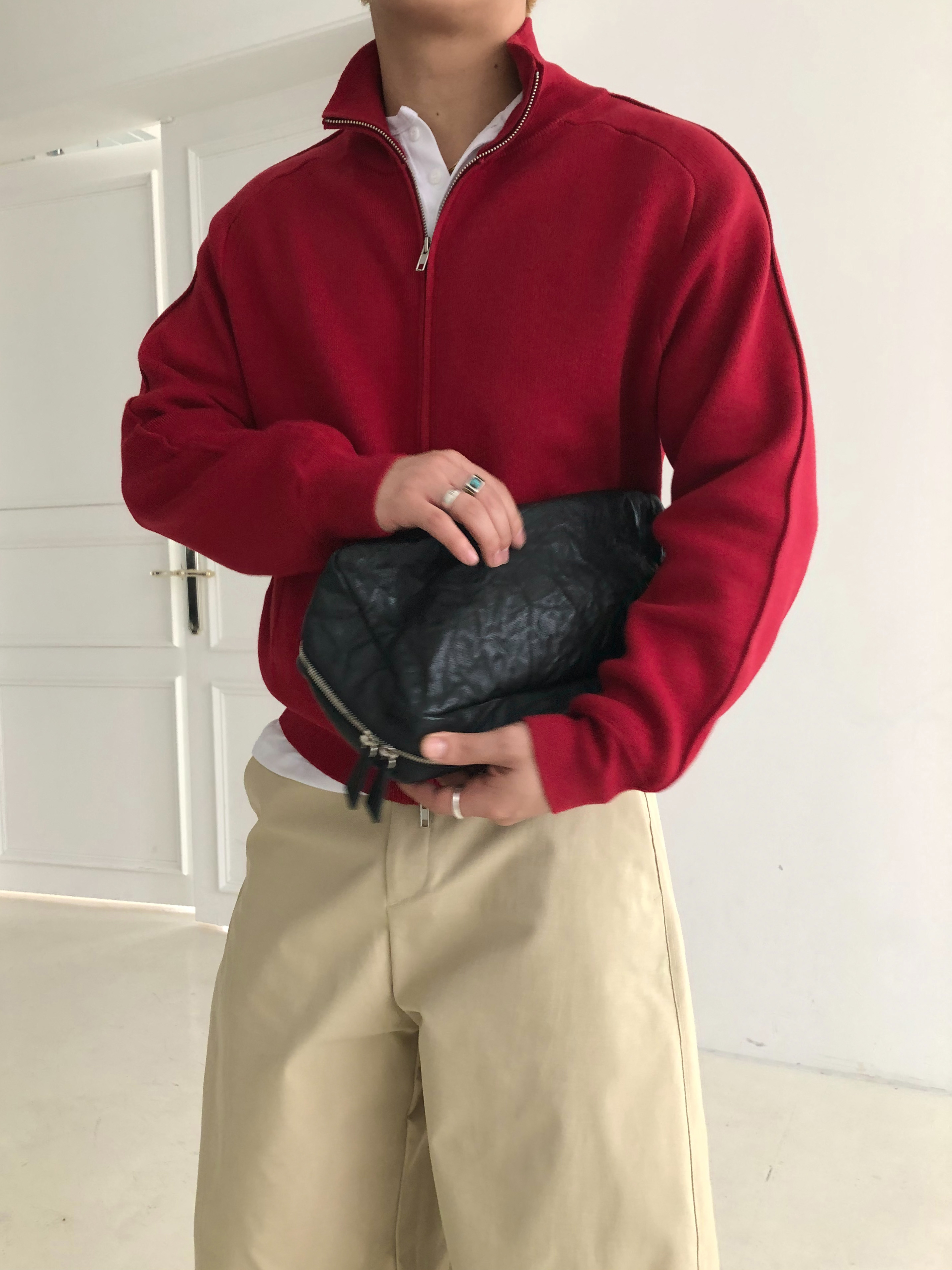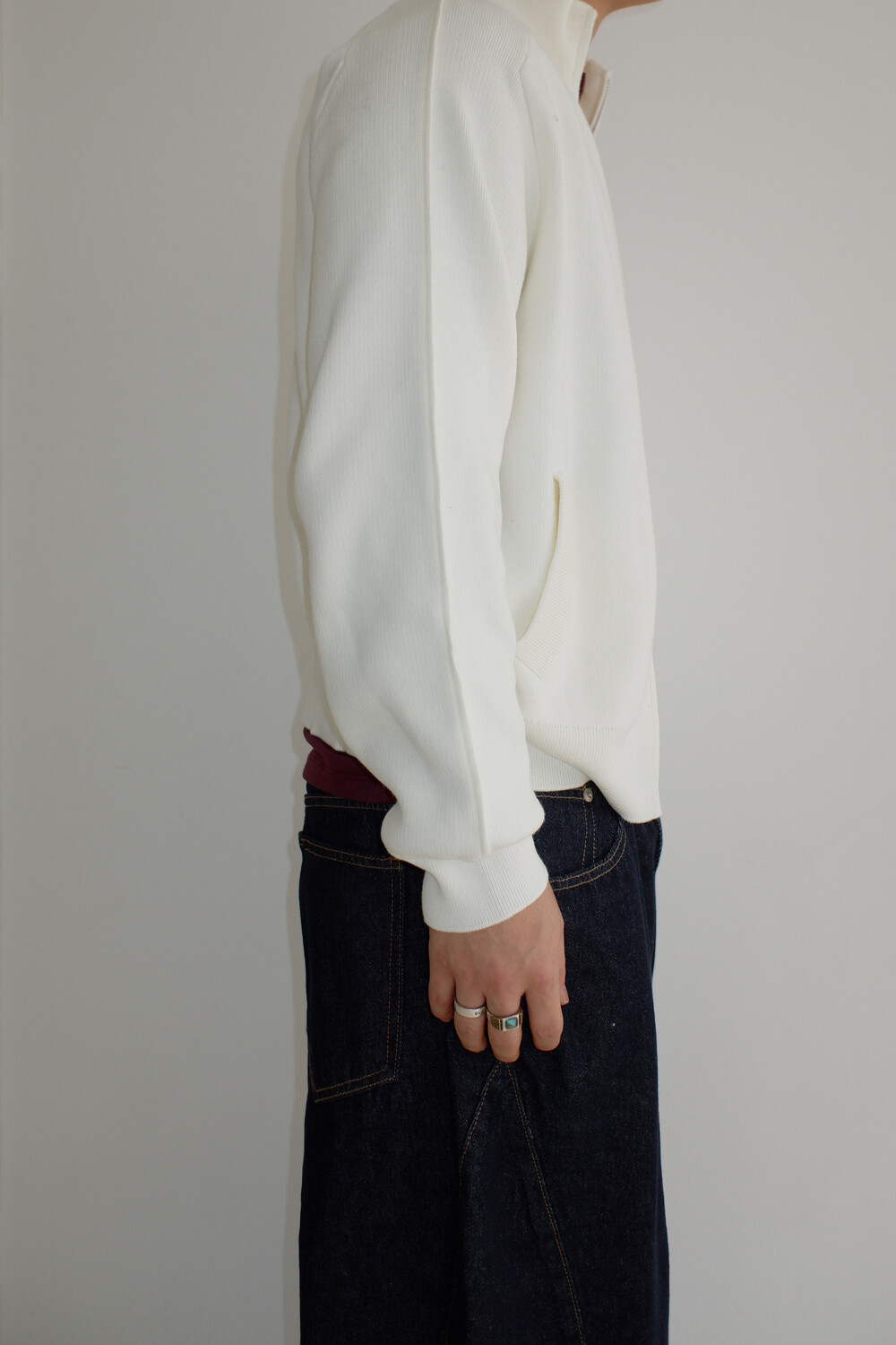 Stand knit zip up