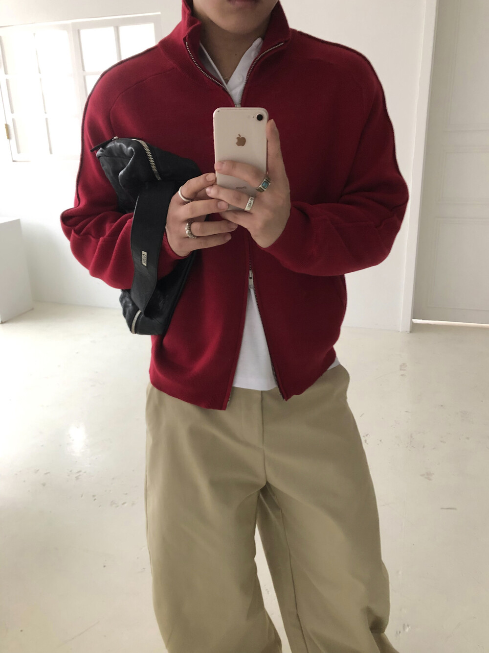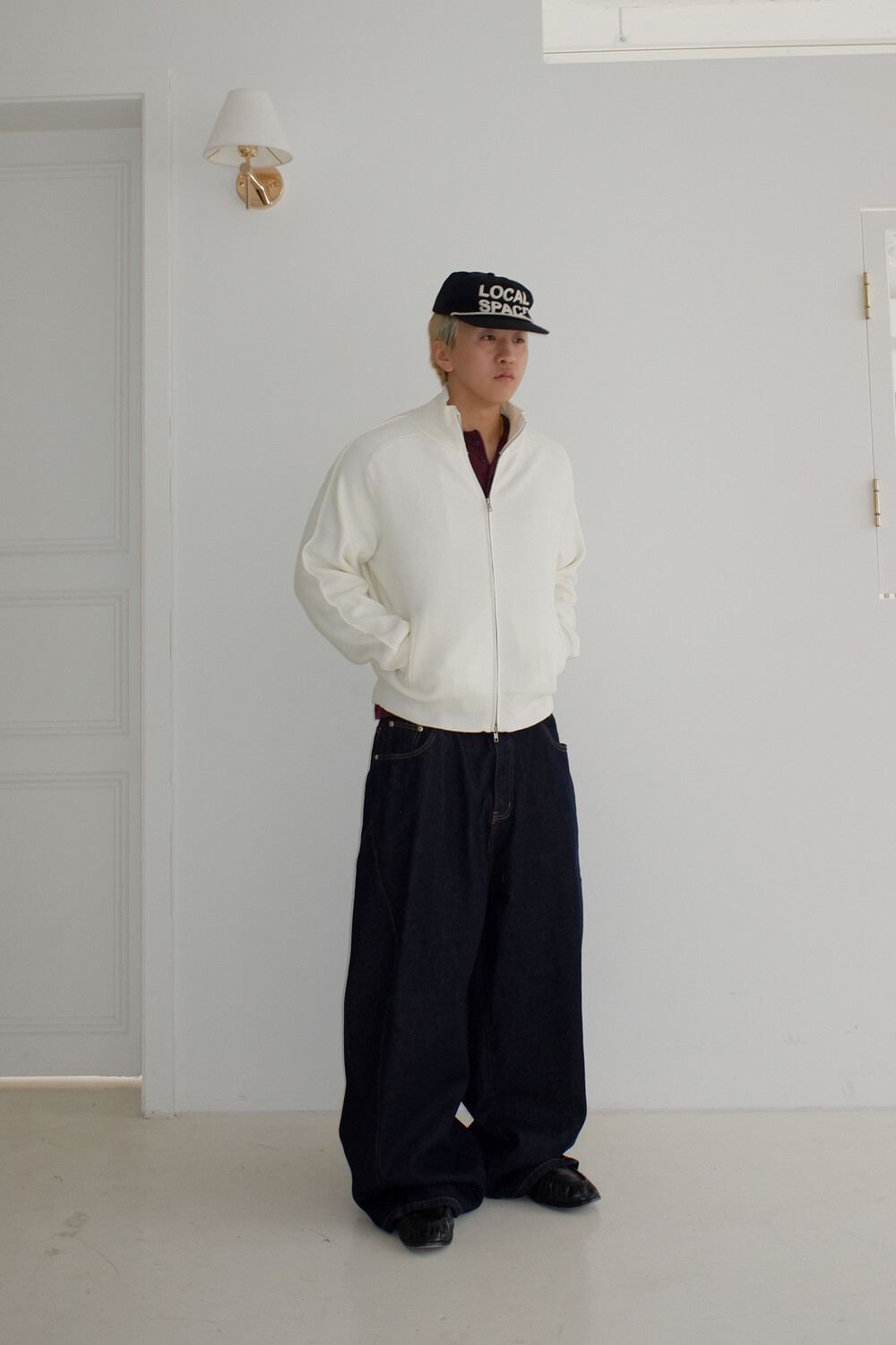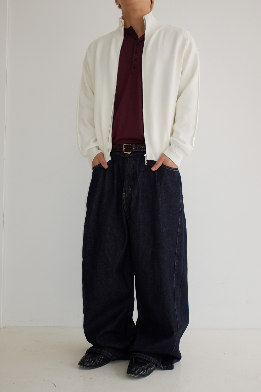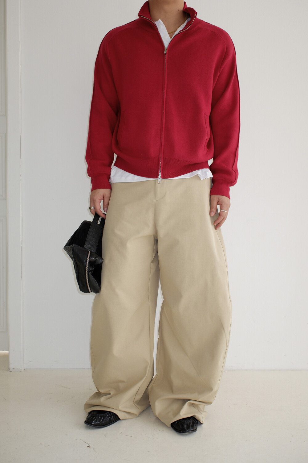 Stand knit zip up