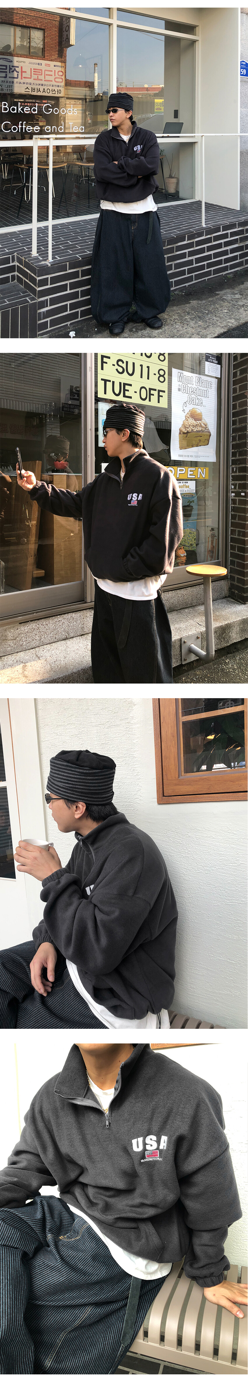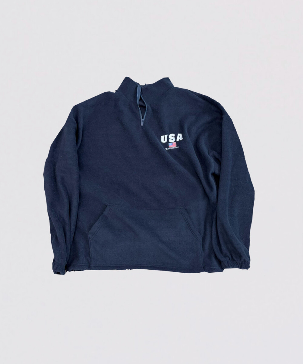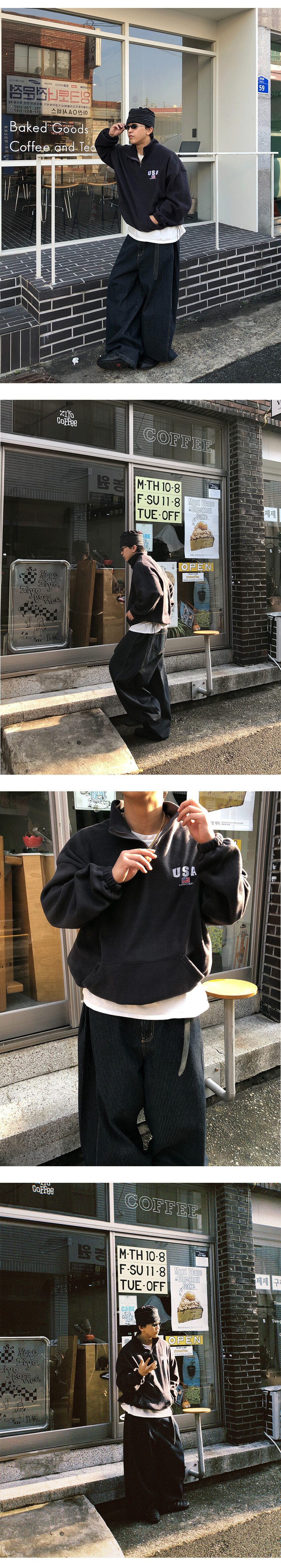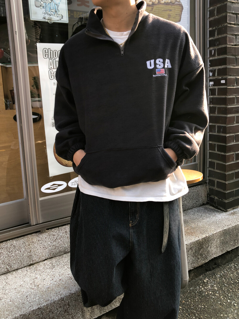 전면의 USA 자수 포인트가 캐주얼한 무드를 더해주는 플리스 반집업 아노락입니다.