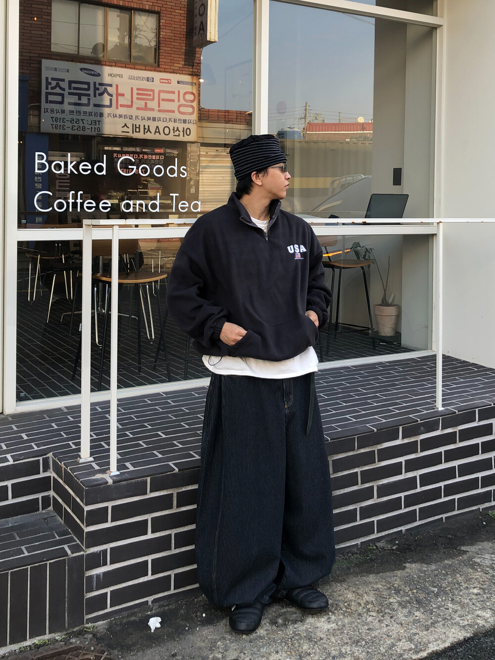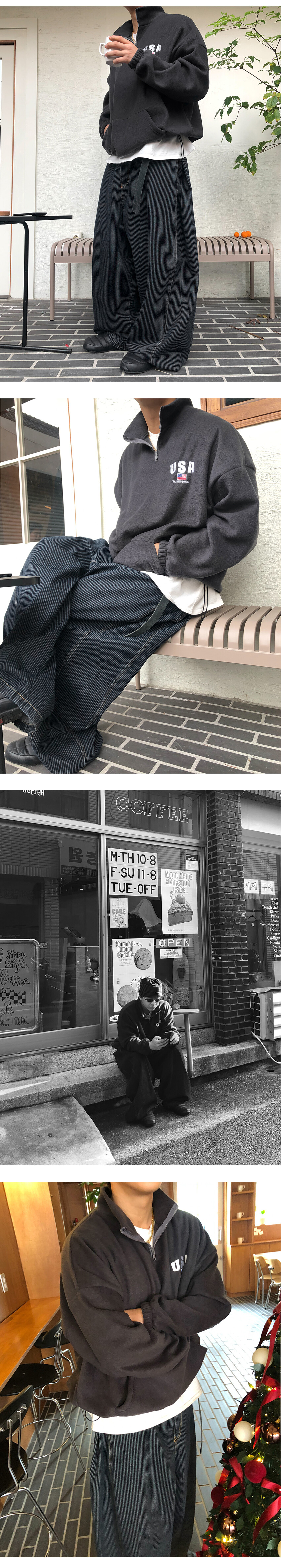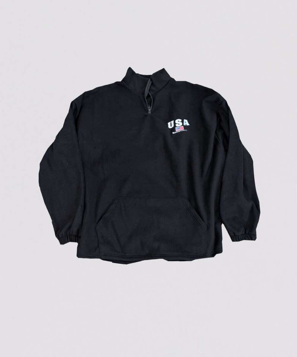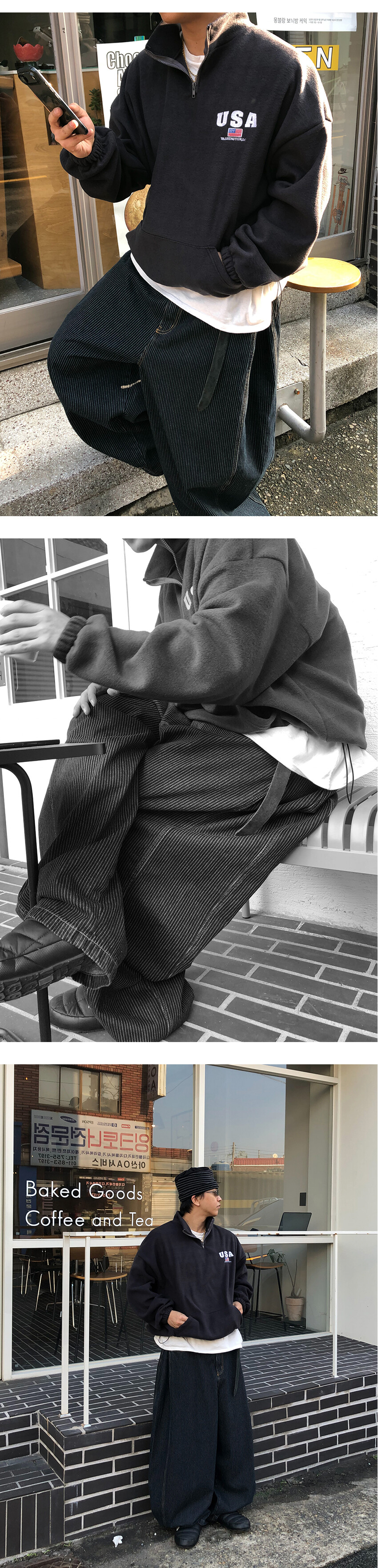 전면의 USA 자수 포인트가 캐주얼한 무드를 더해주는 플리스 반집업 아노락입니다.