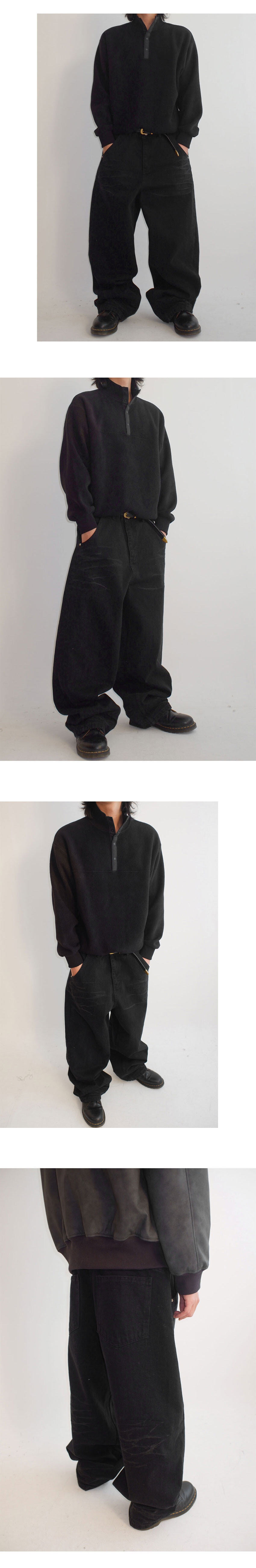 wavy embossing black denim
