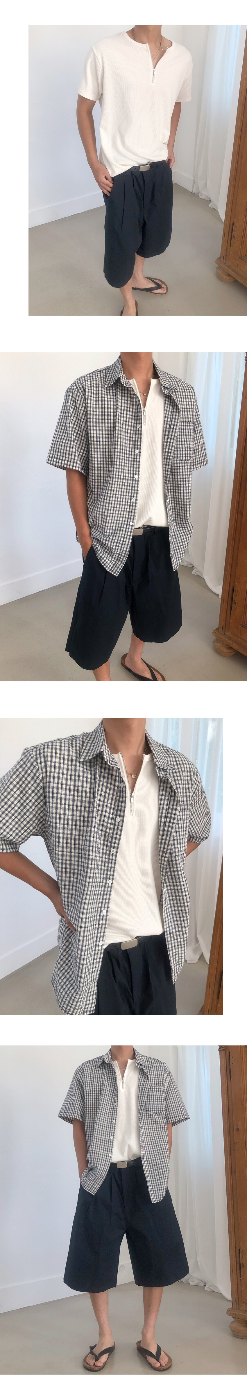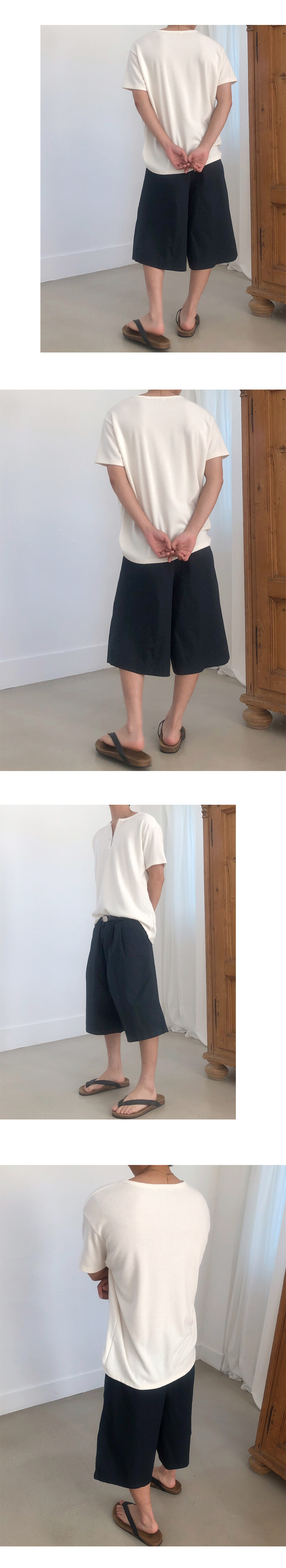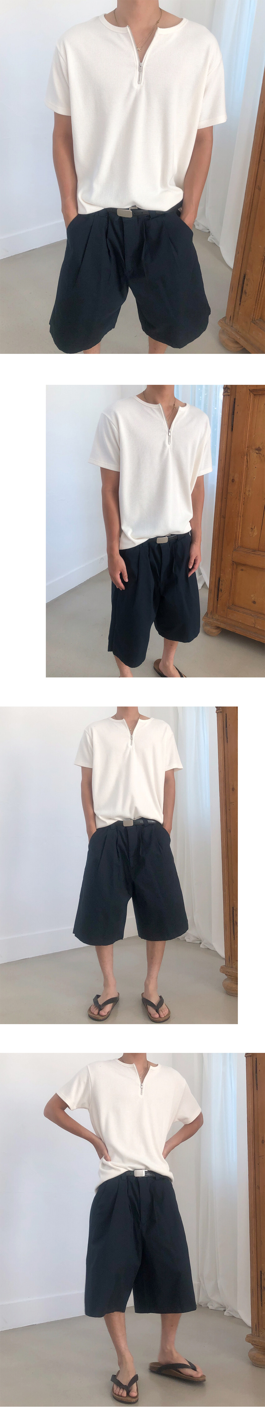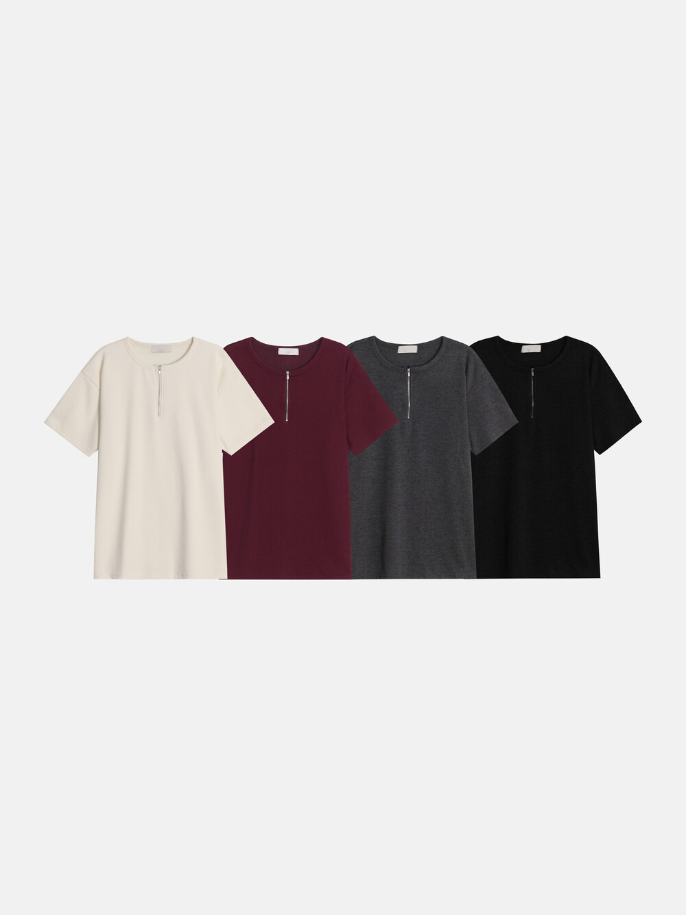 헨리넥 형태의 리브드 저스트핏 하프집업 티셔츠