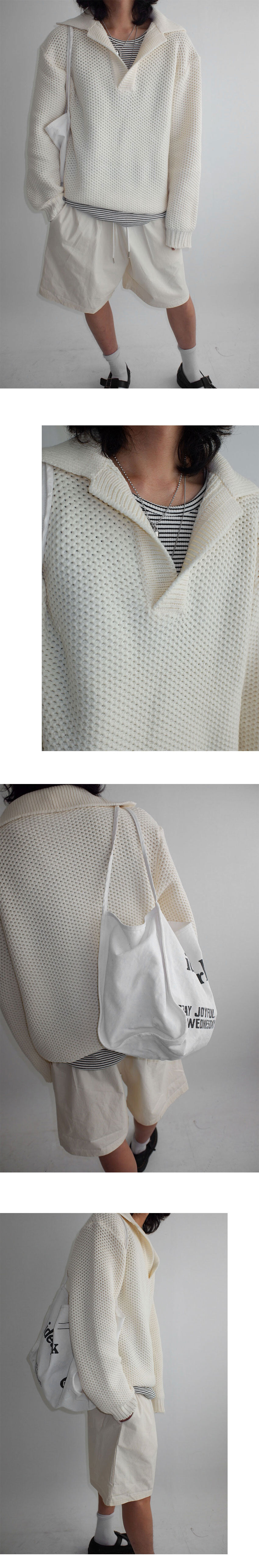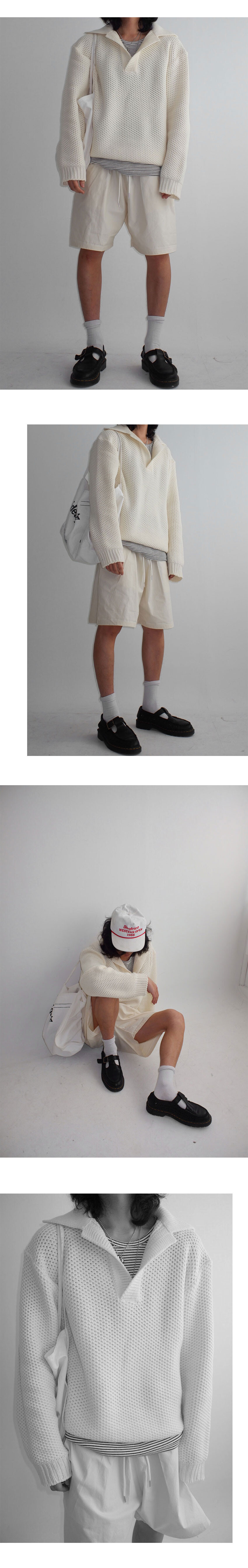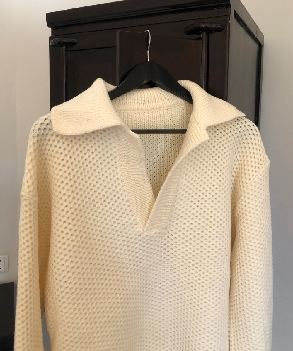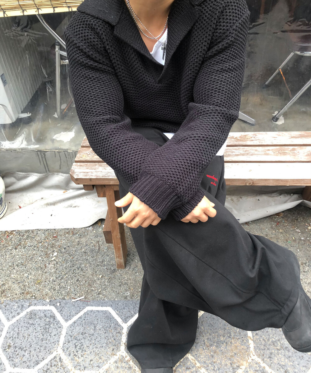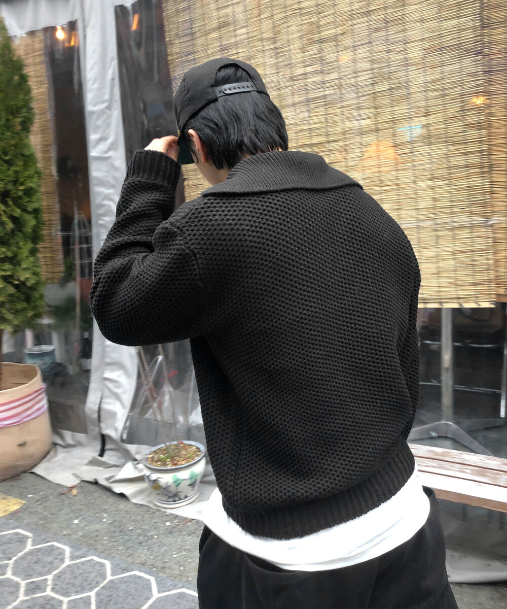 heavy waffle open collar knit