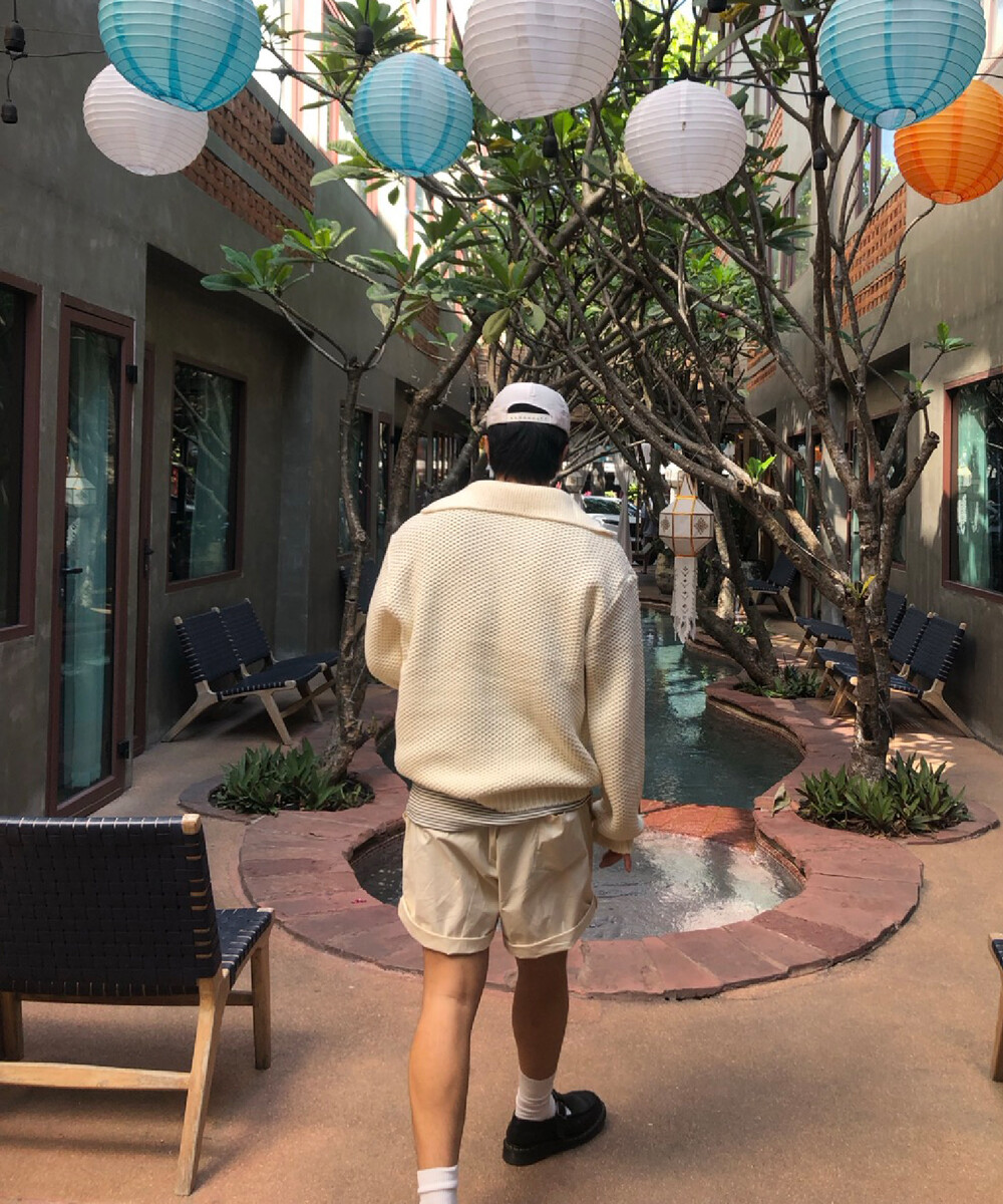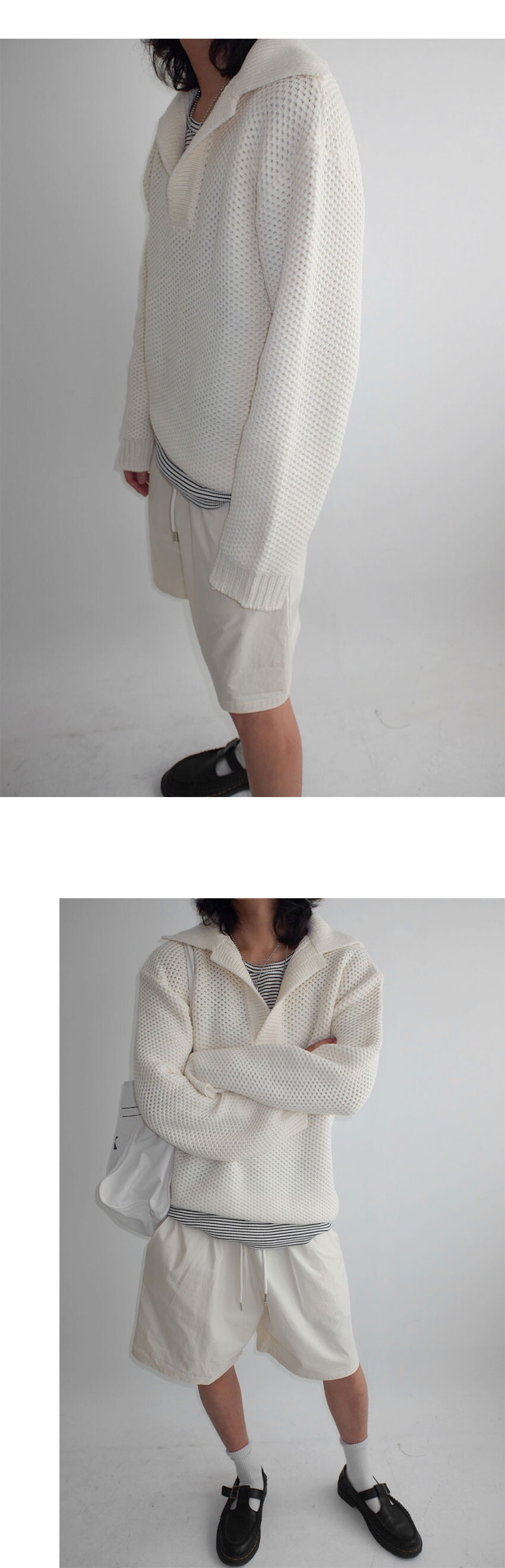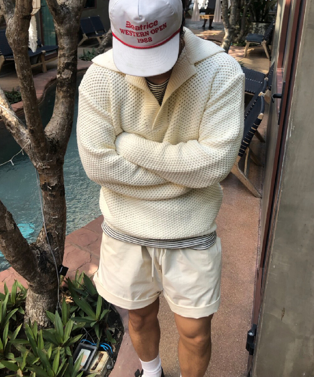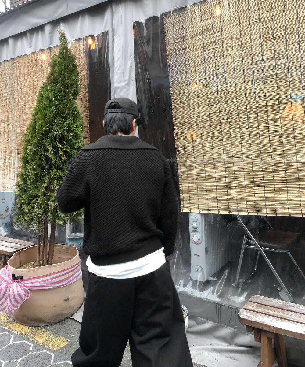 와플짜임의 중량감 있는 니트 소재